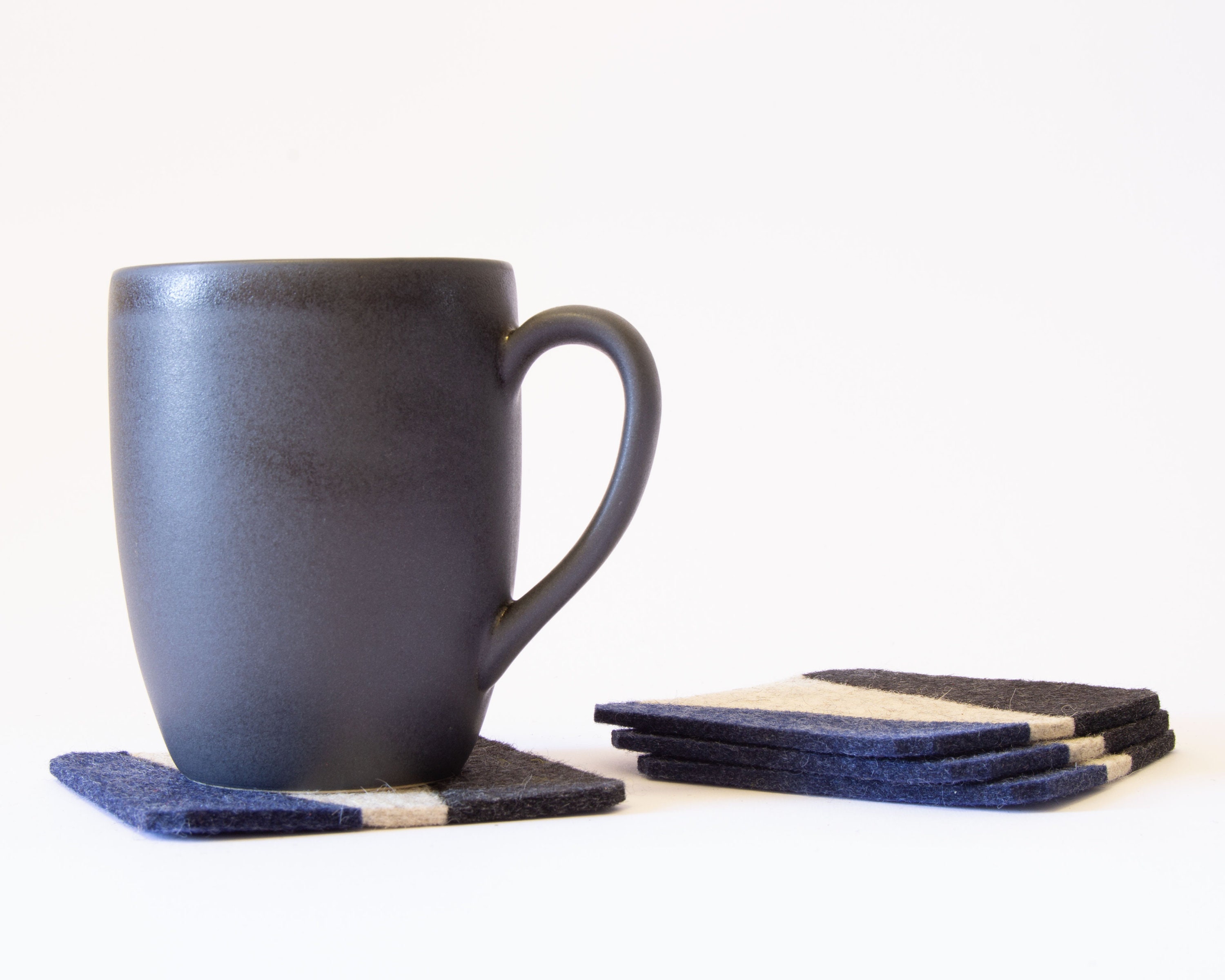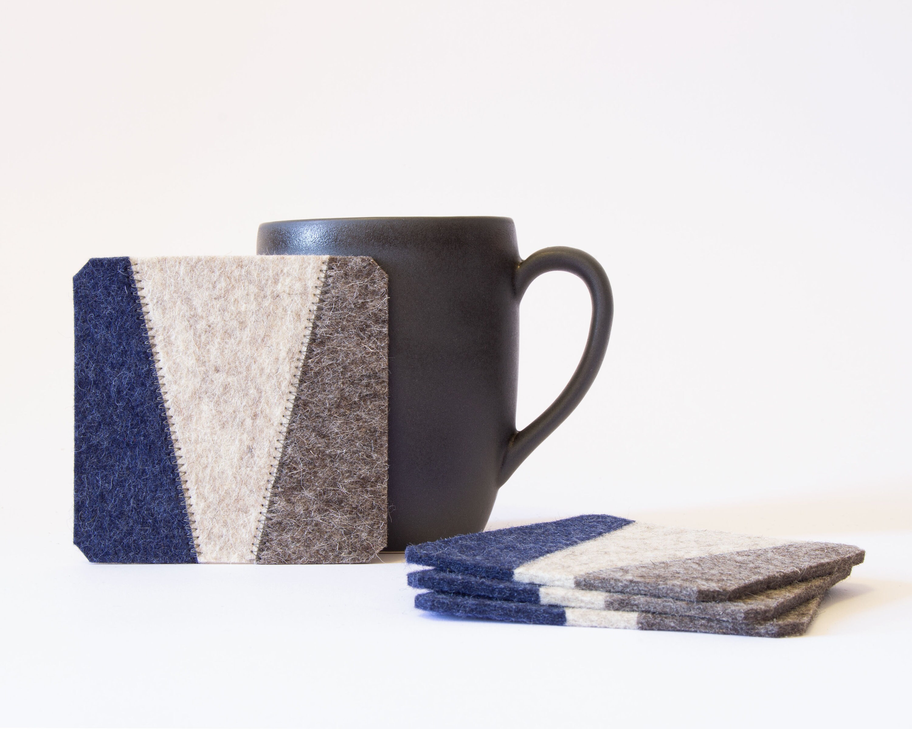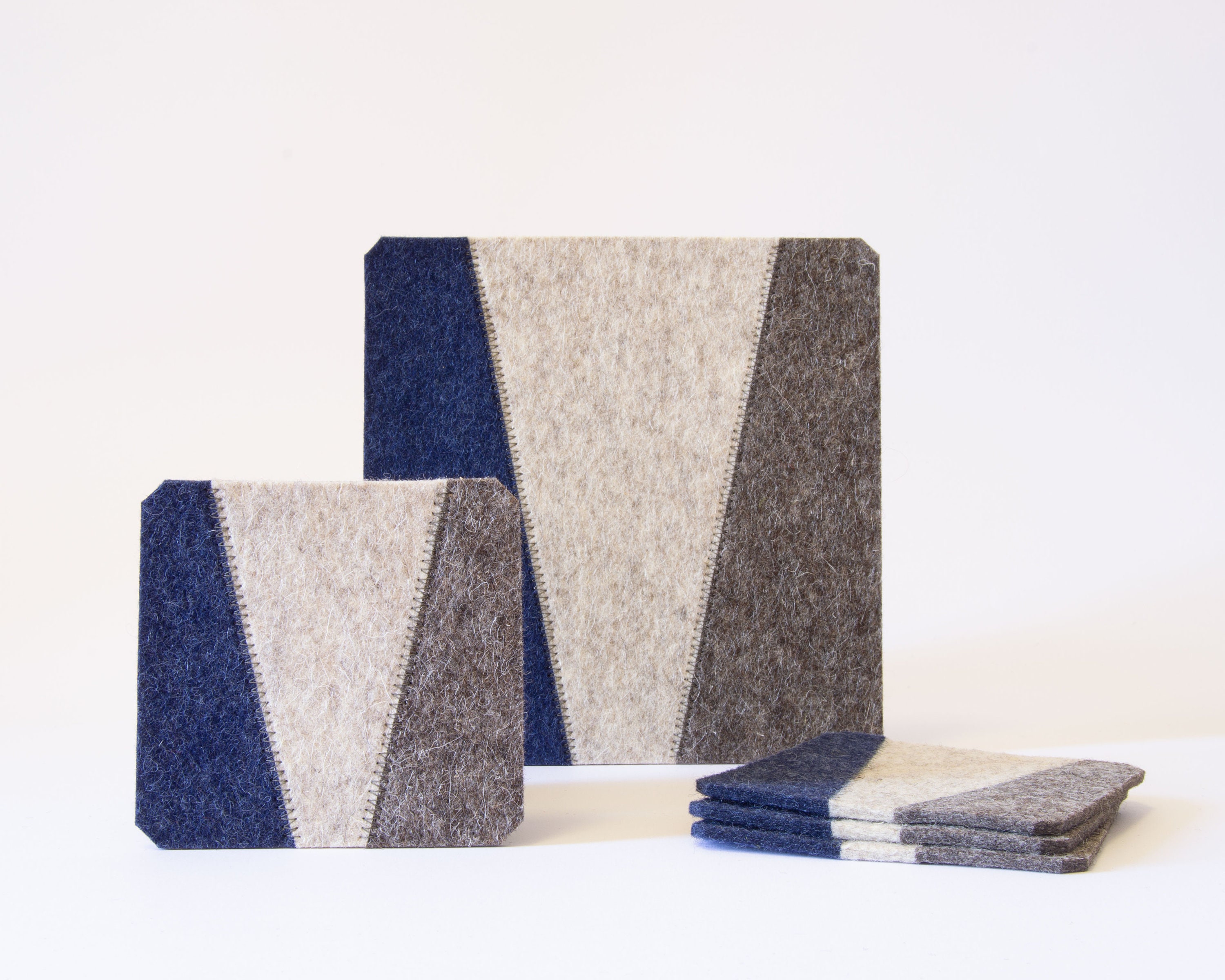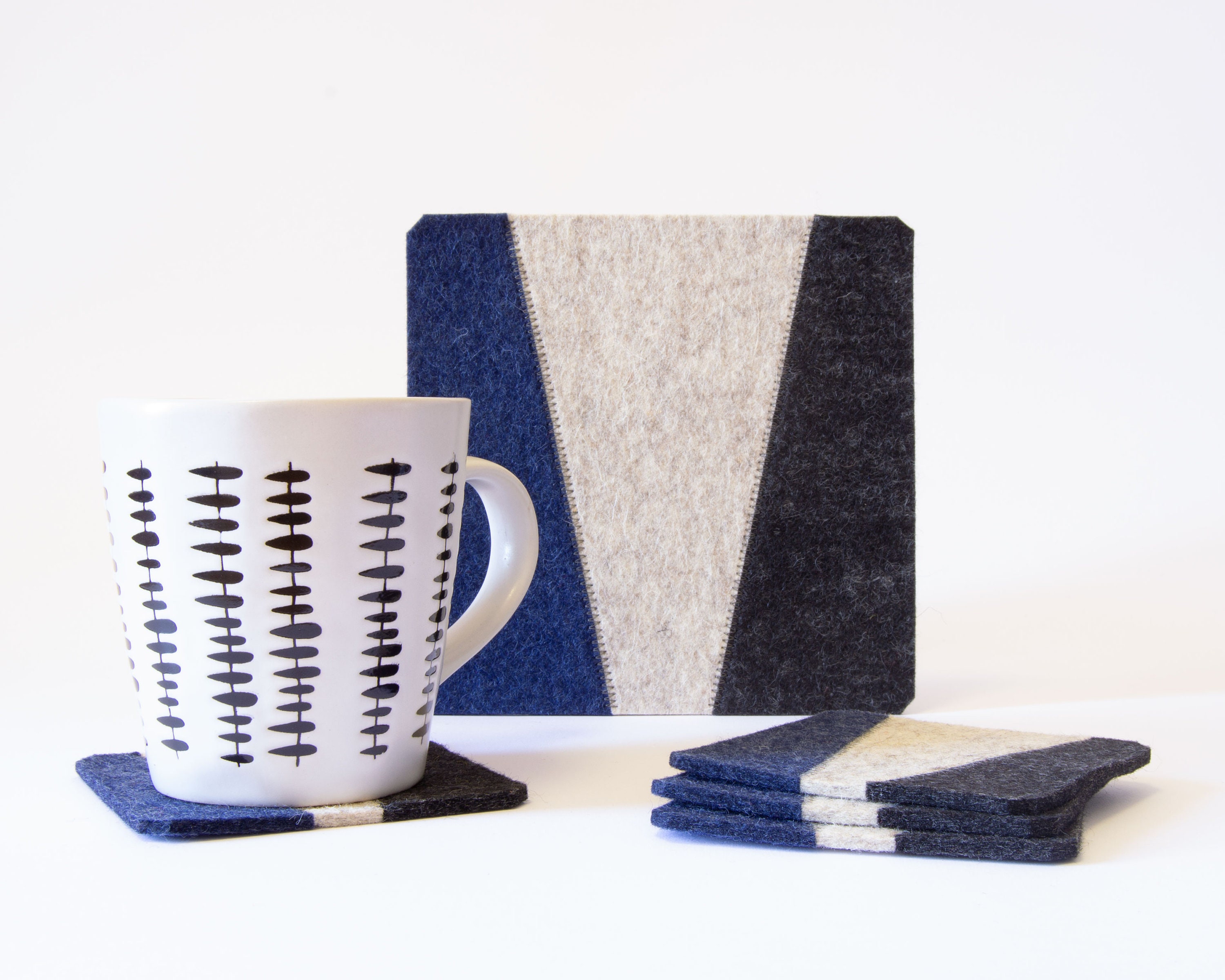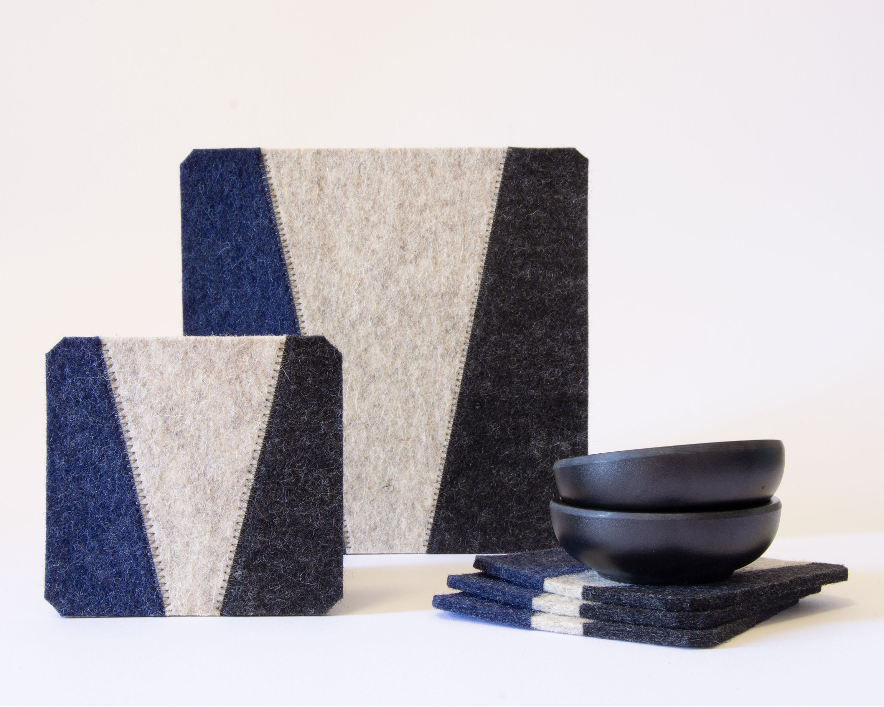 Protect your furniture in style with this set of felt coasters! They are made of 100% wool felt and have a minimalist and eye-catching design. You can add the trivet for your teapot or decanter.