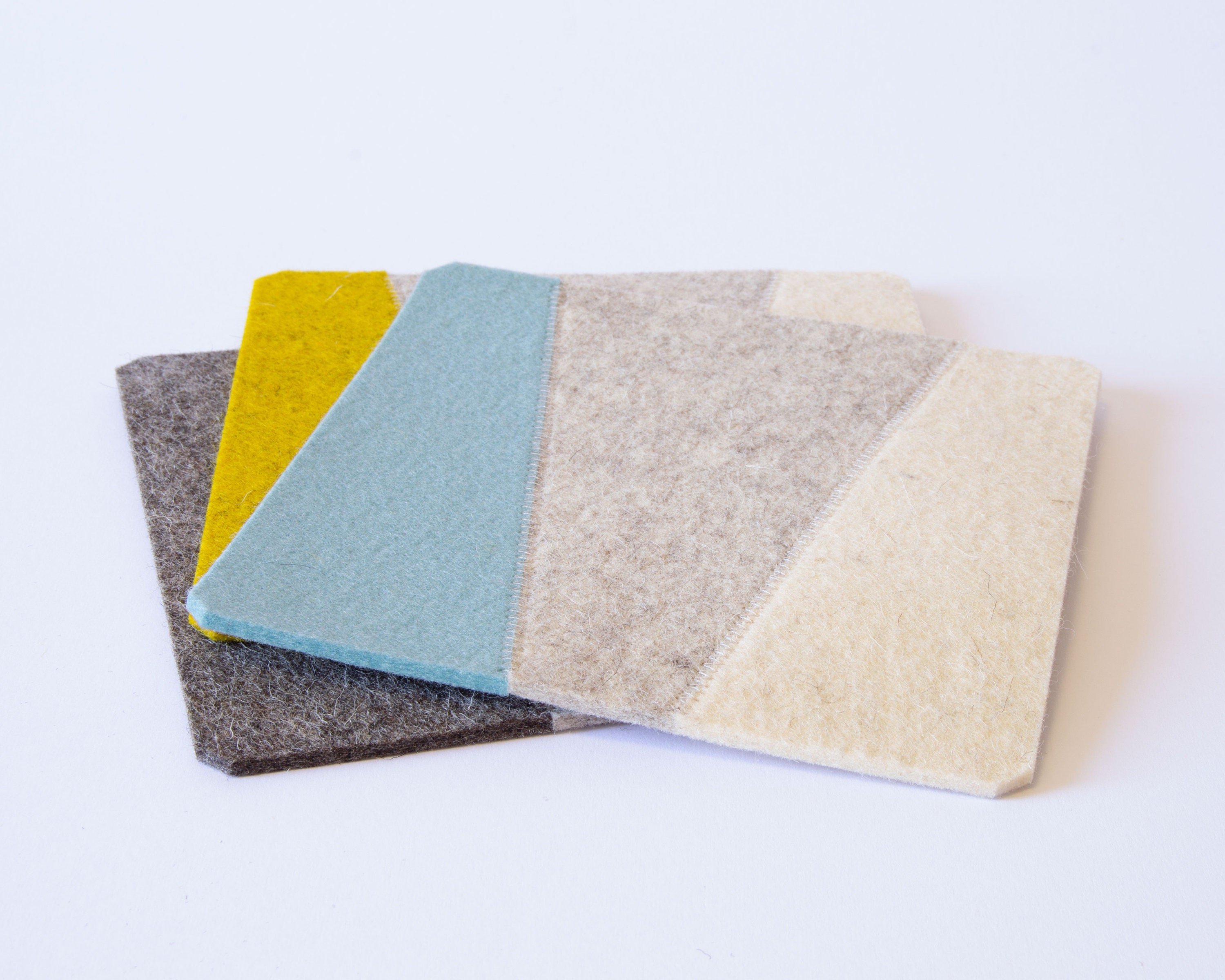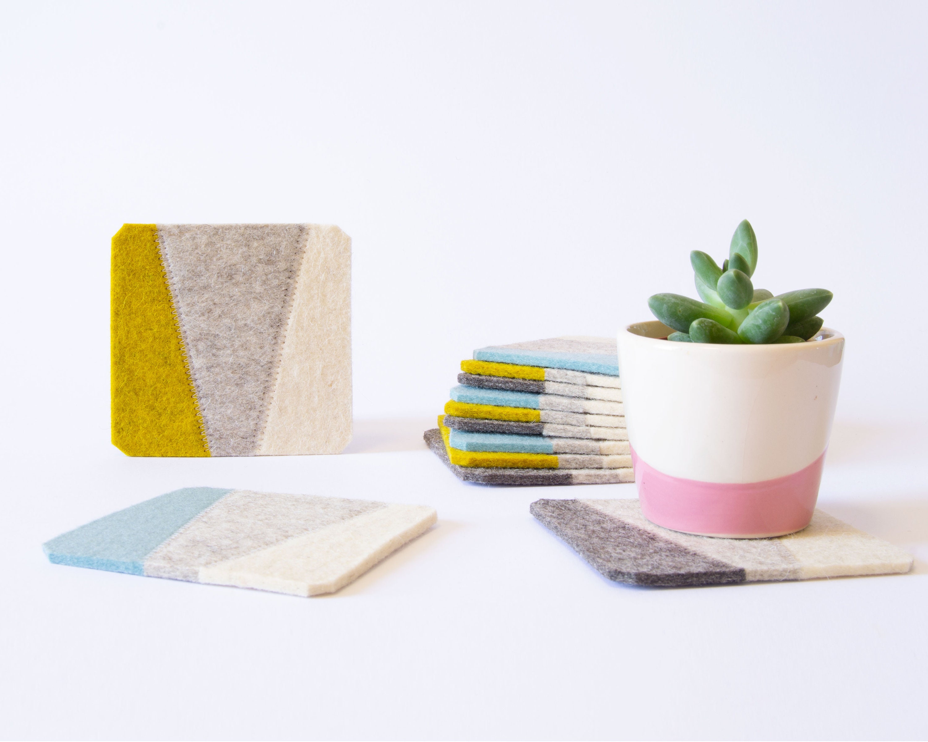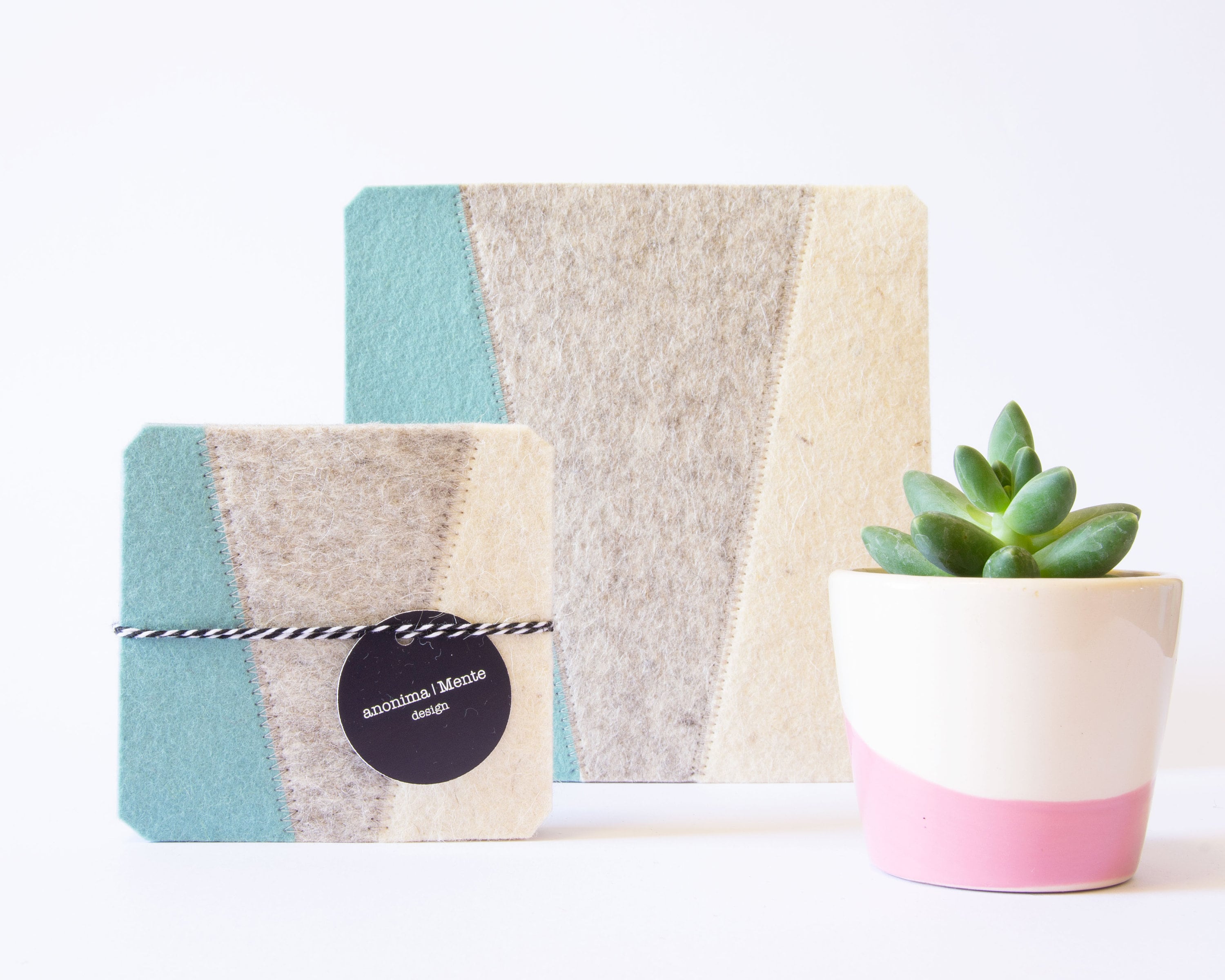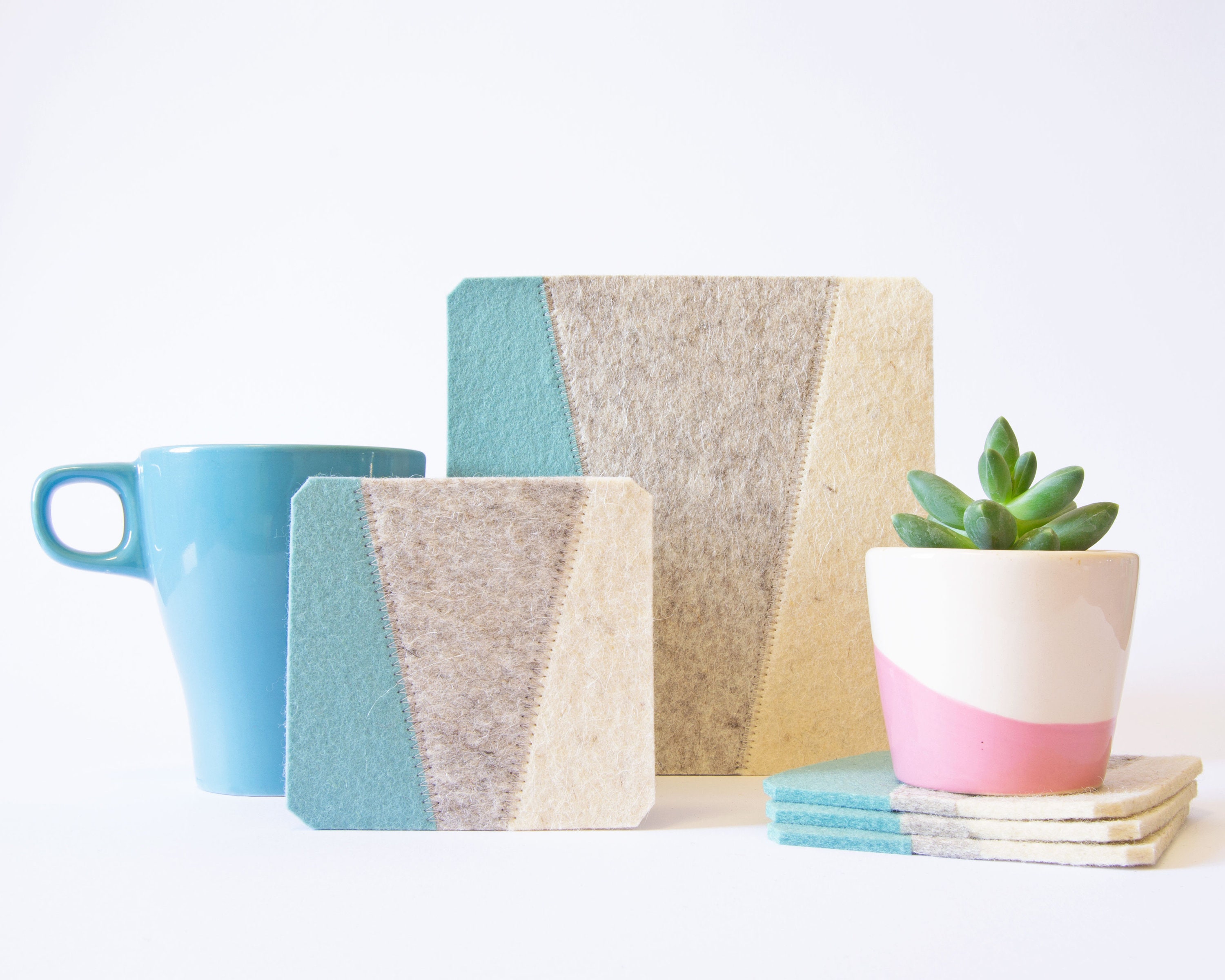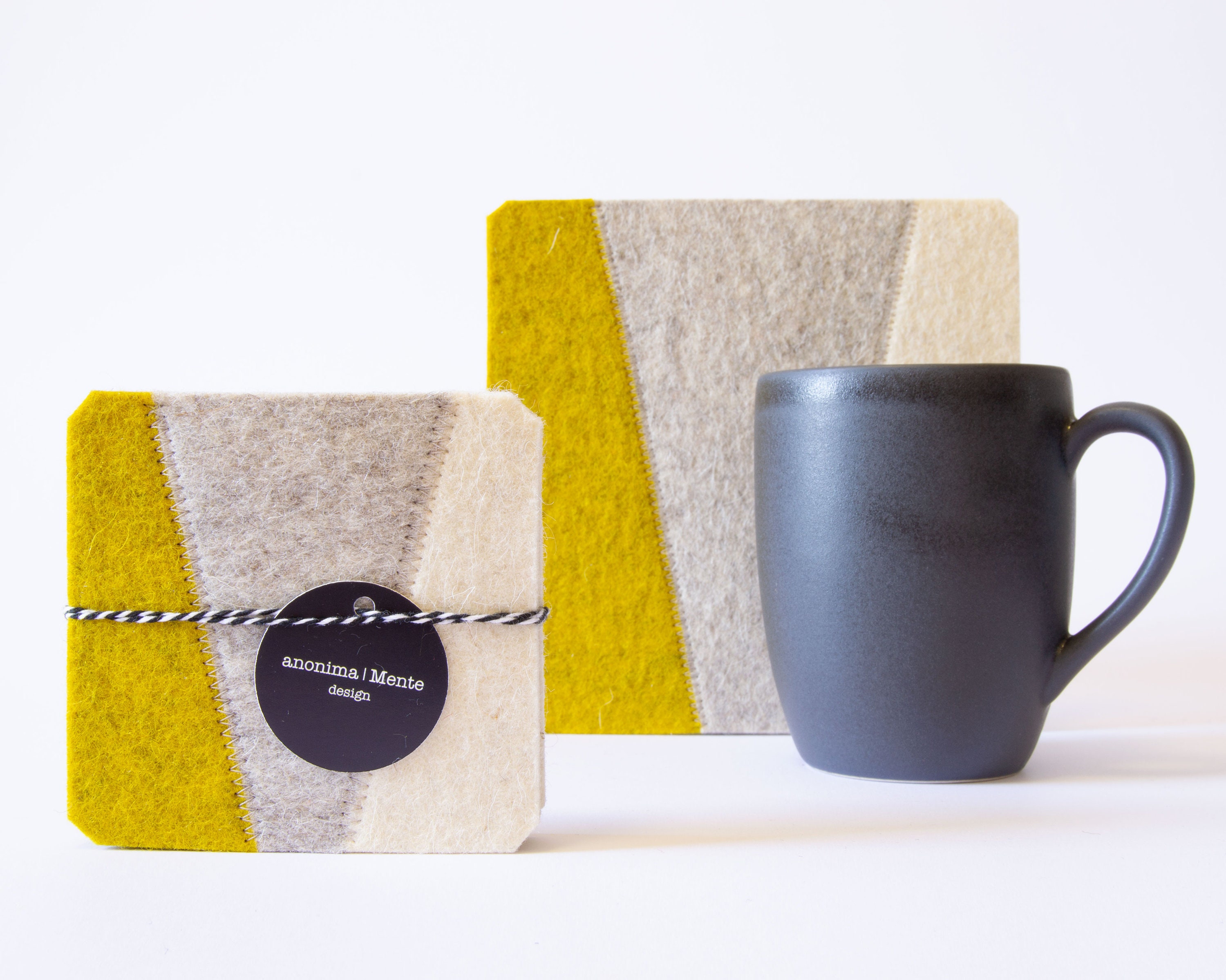 Protect your furniture in style with this set of felt coasters! They are made of 100% wool felt and have a minimalist and eye-catching design. You can add the trivet for your teapot or decanter. Completely handcut and handmade.
