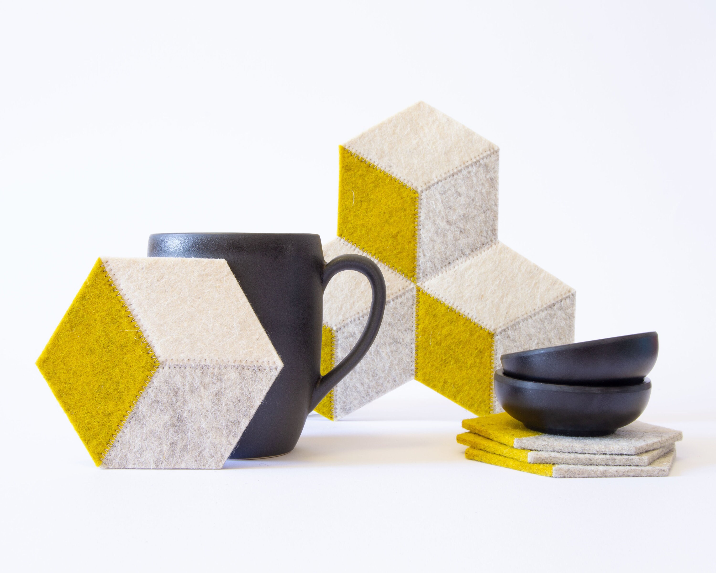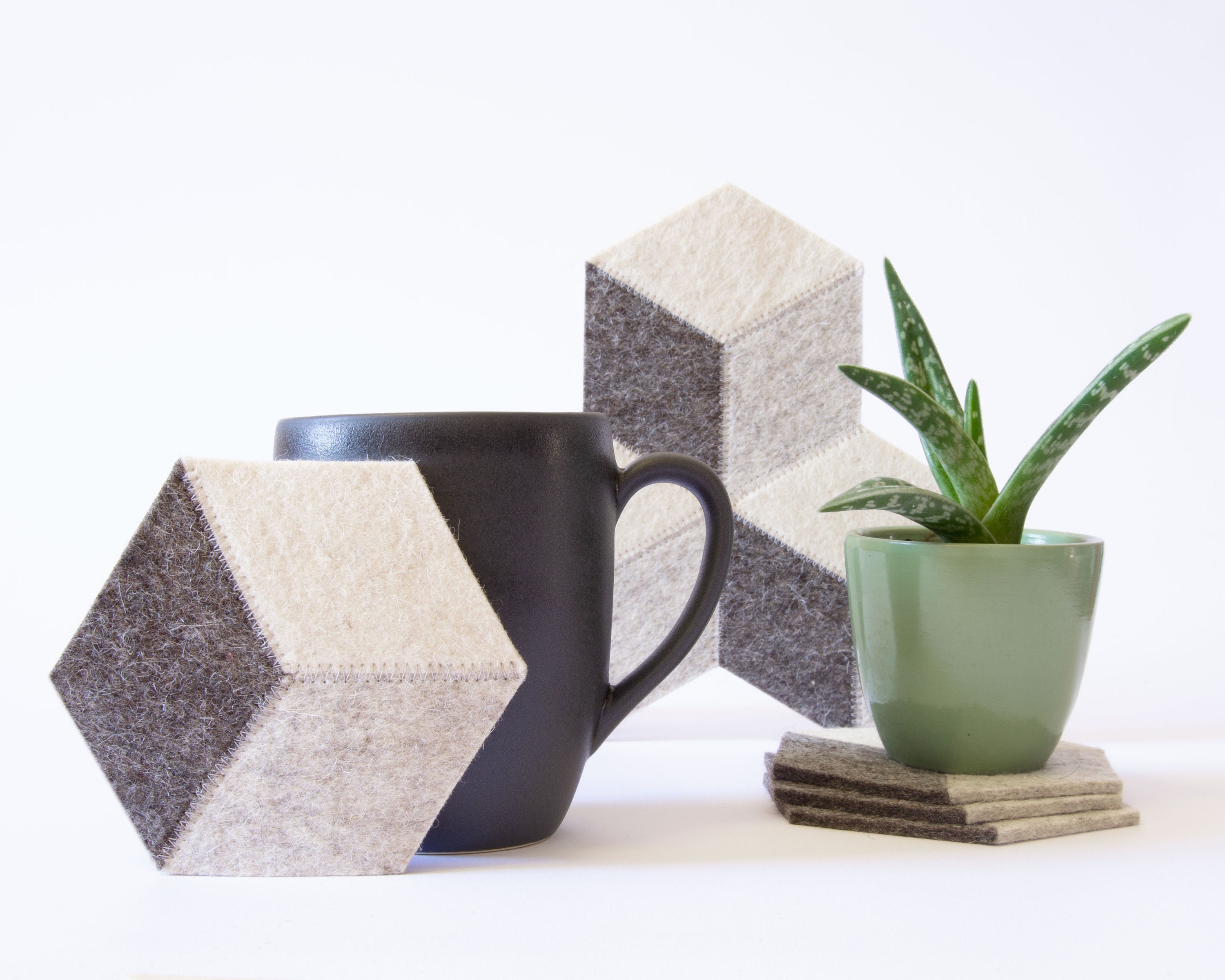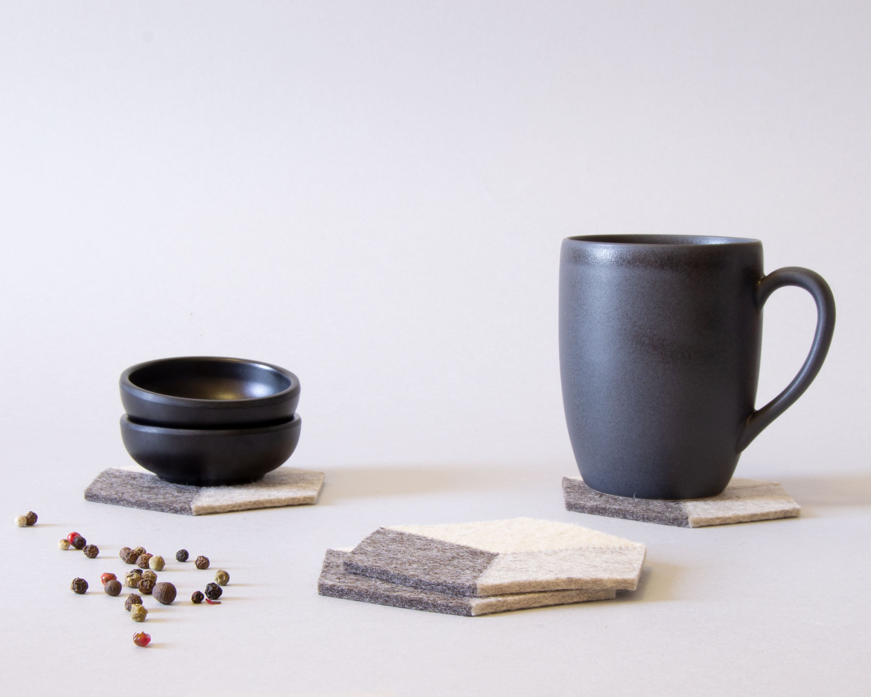 Protect your furniture in style with this set of felt coasters! They are made of 100% wool felt and have a minimalist and eye-catching design. You can add the trivet for your teapot or decanter.