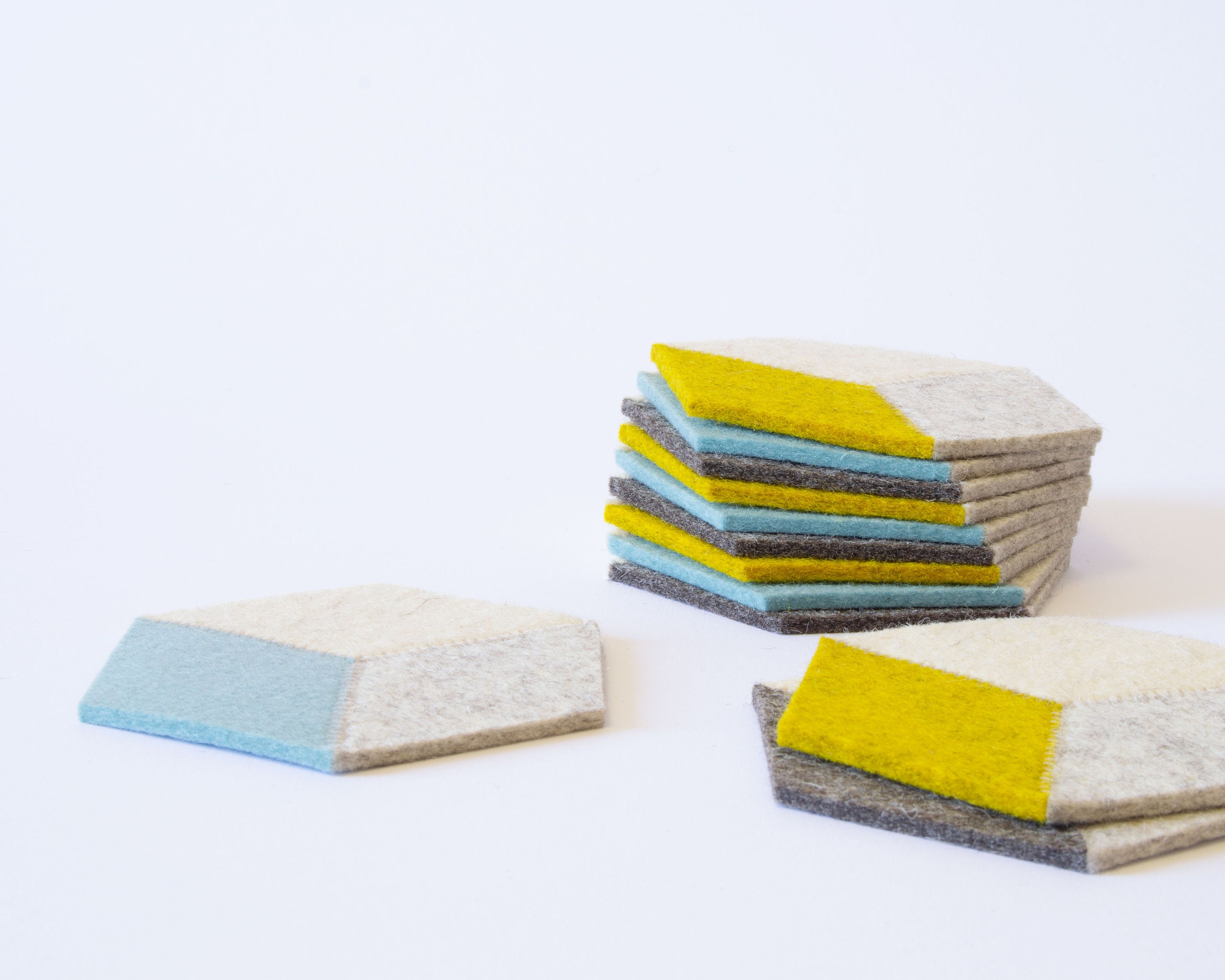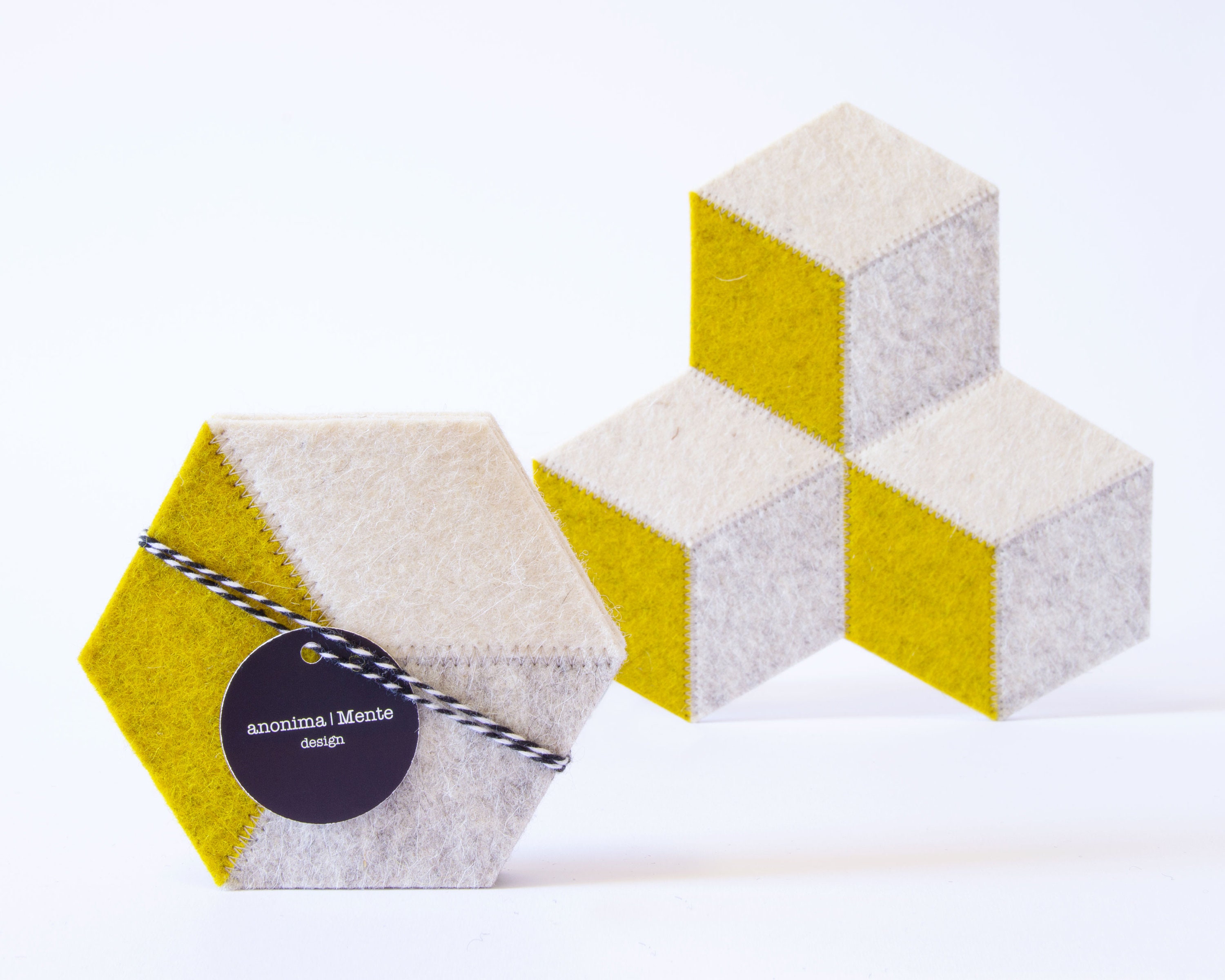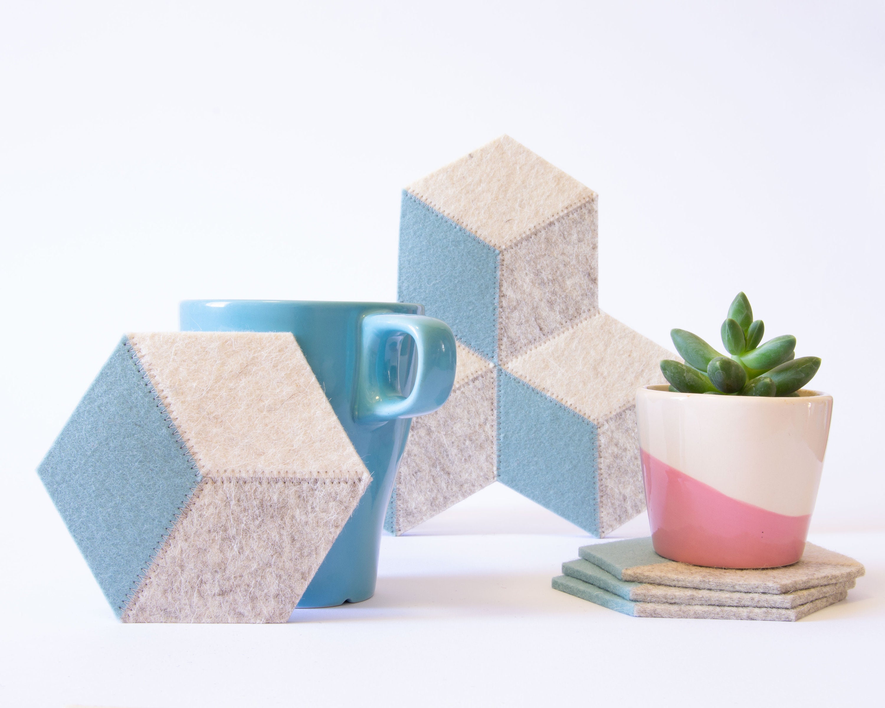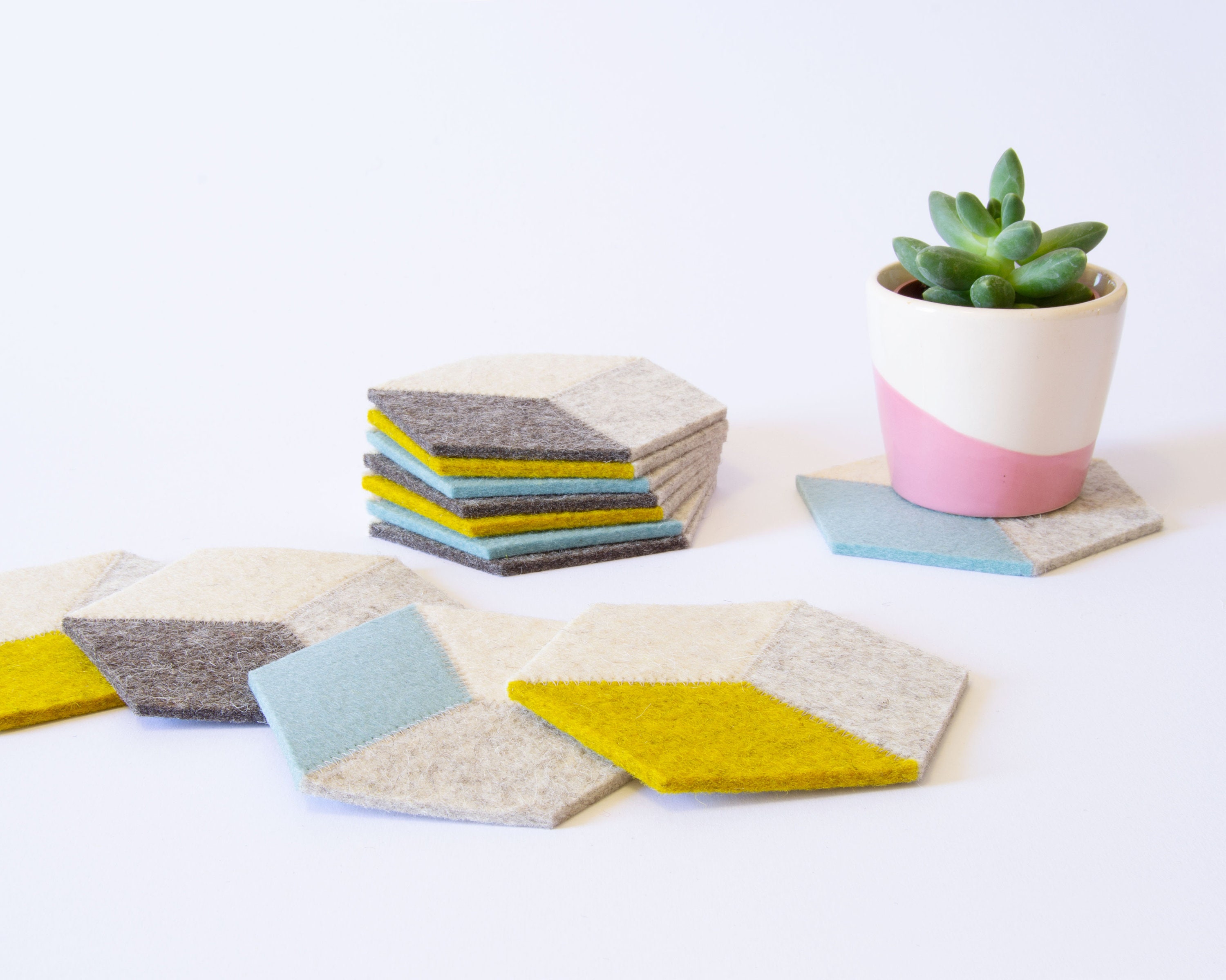 Protect your furniture in style with this set of felt coasters! They are made of 100% wool felt and have a minimalist and eye-catching design. You can add the trivet for your teapot or decanter.