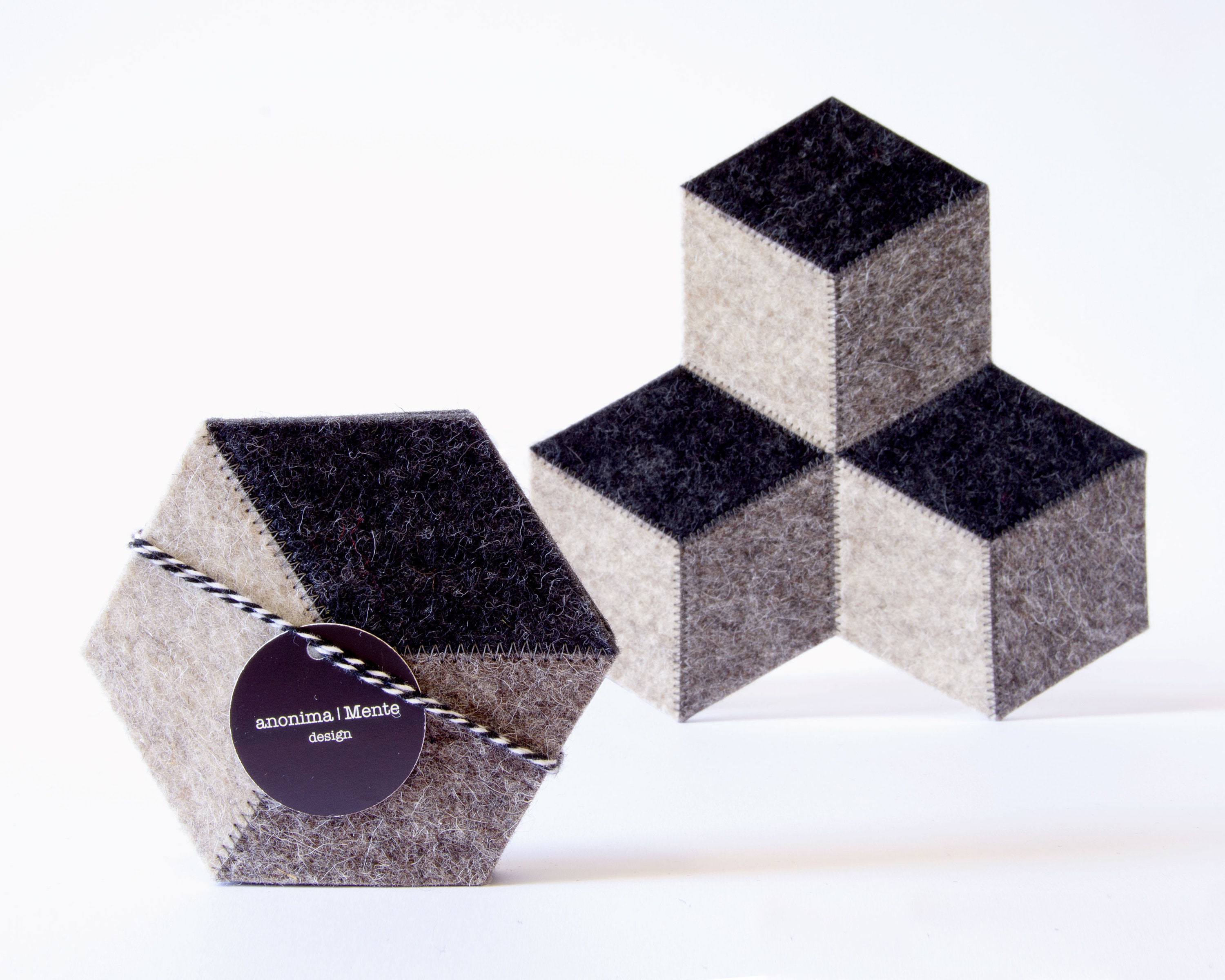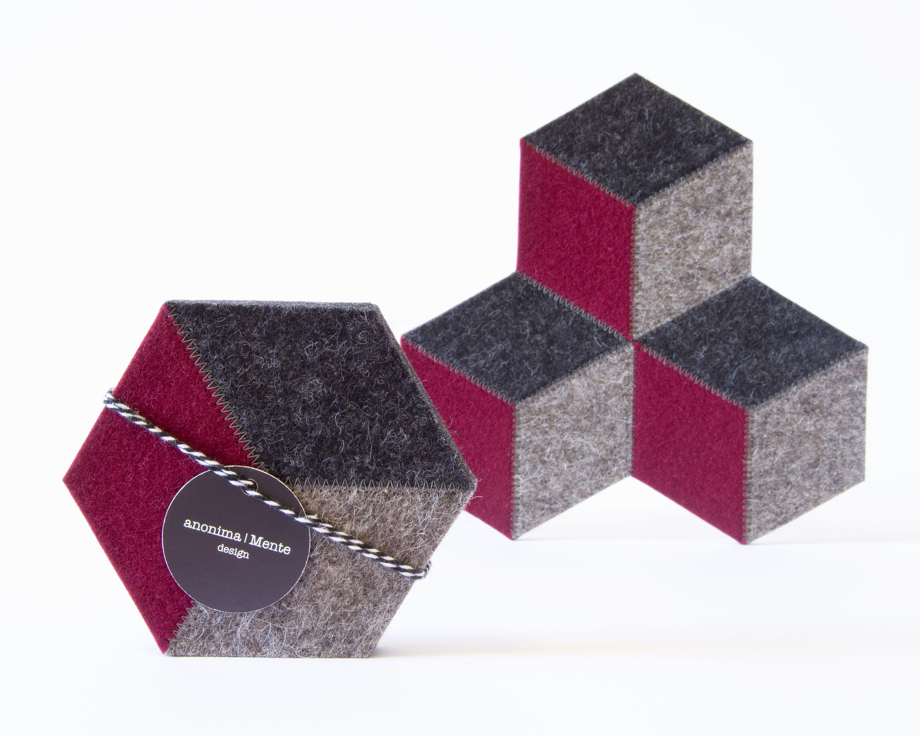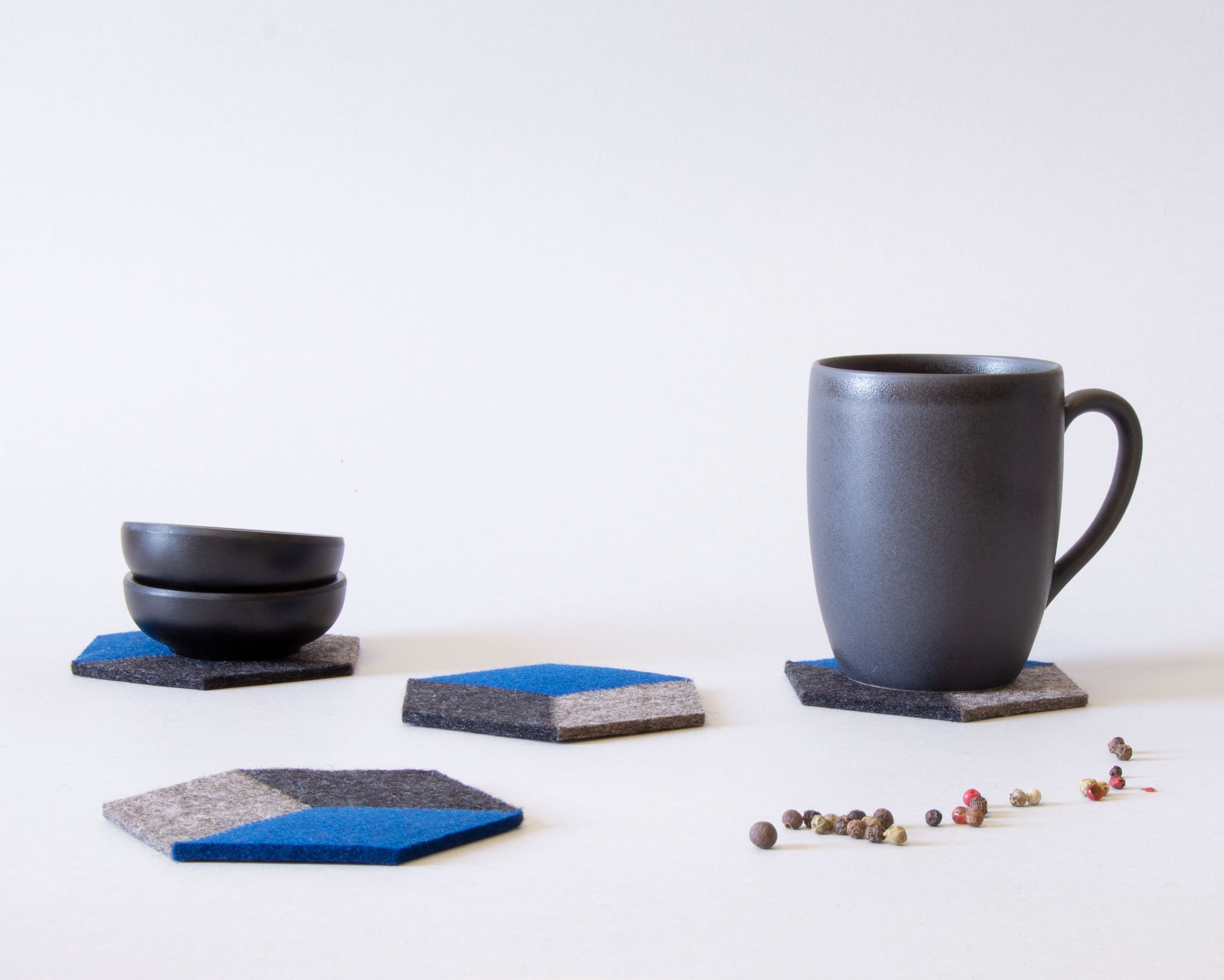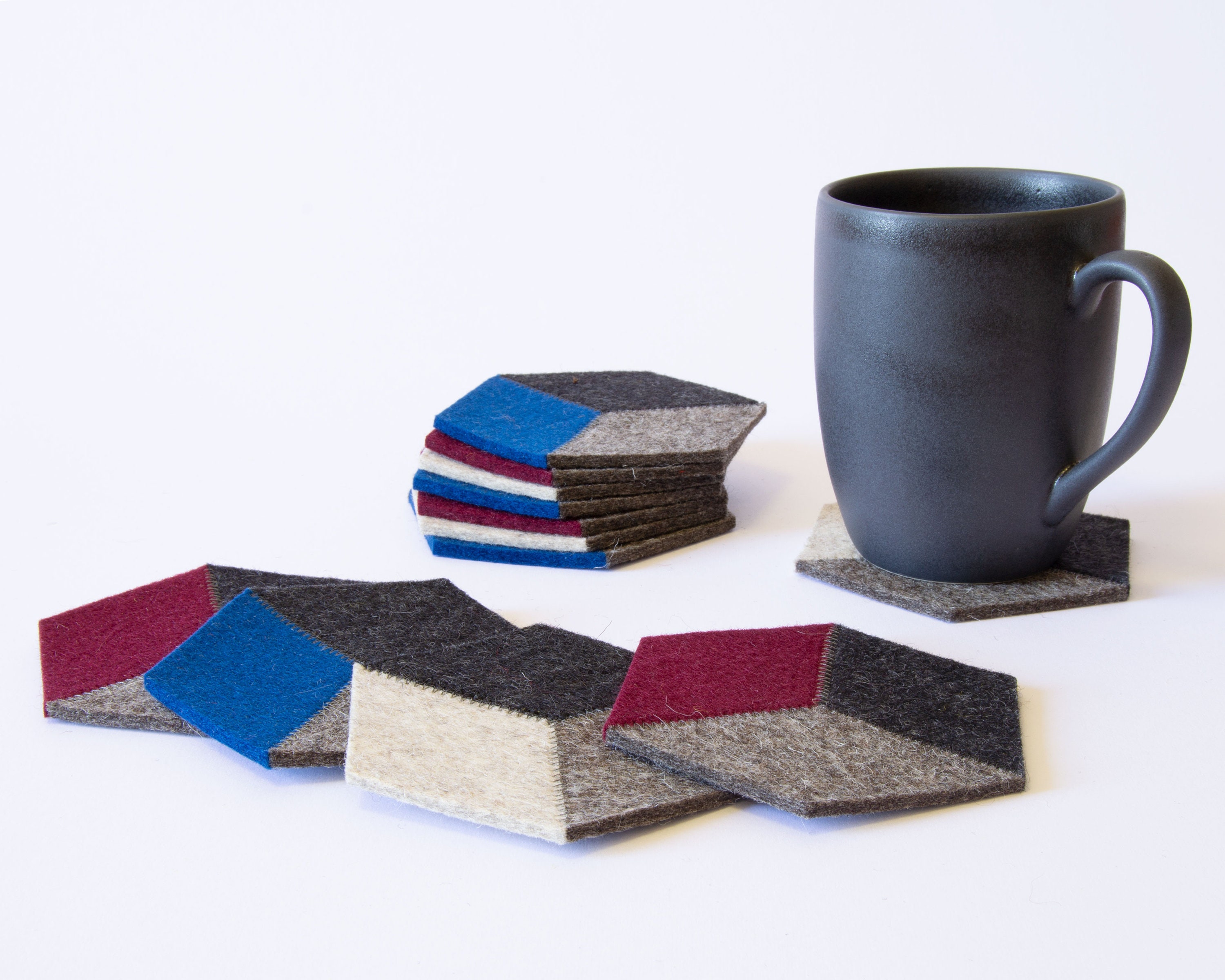 Protect your furniture in style with this set of felt coasters! They are made of 100% wool felt and have a minimalist and eye-catching design. You can add the trivet for your teapot or decanter.