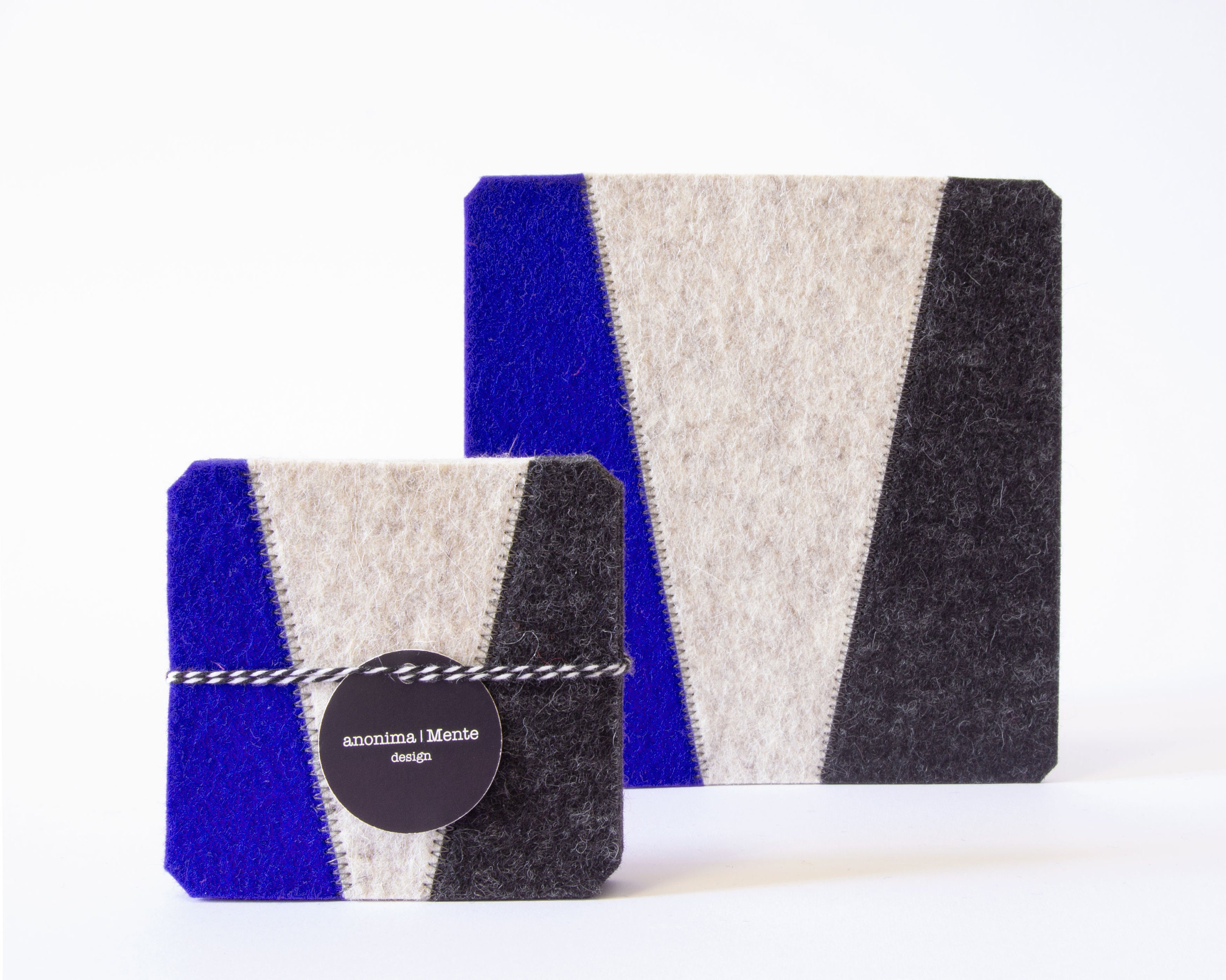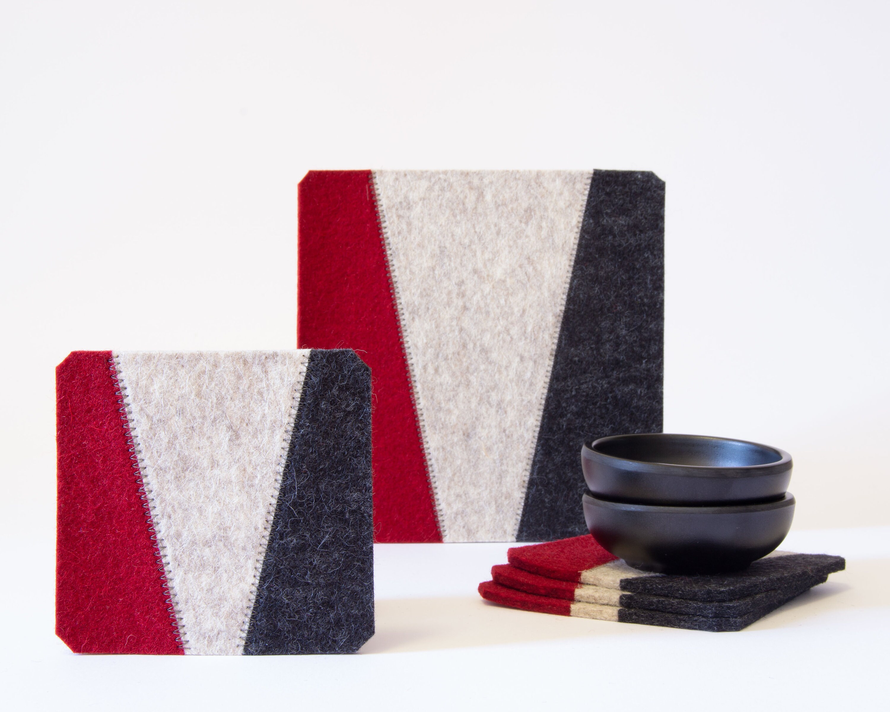 Protect your furniture in style with this set of felt coasters! They are made of 100% wool felt and have a minimalist and eye-catching design. You can add the trivet for your teapot or decanter.