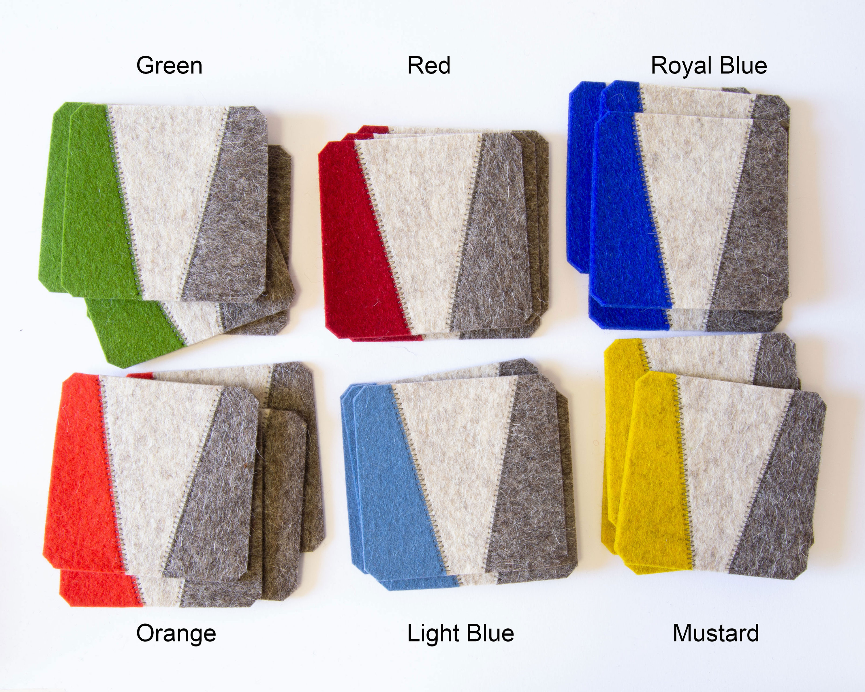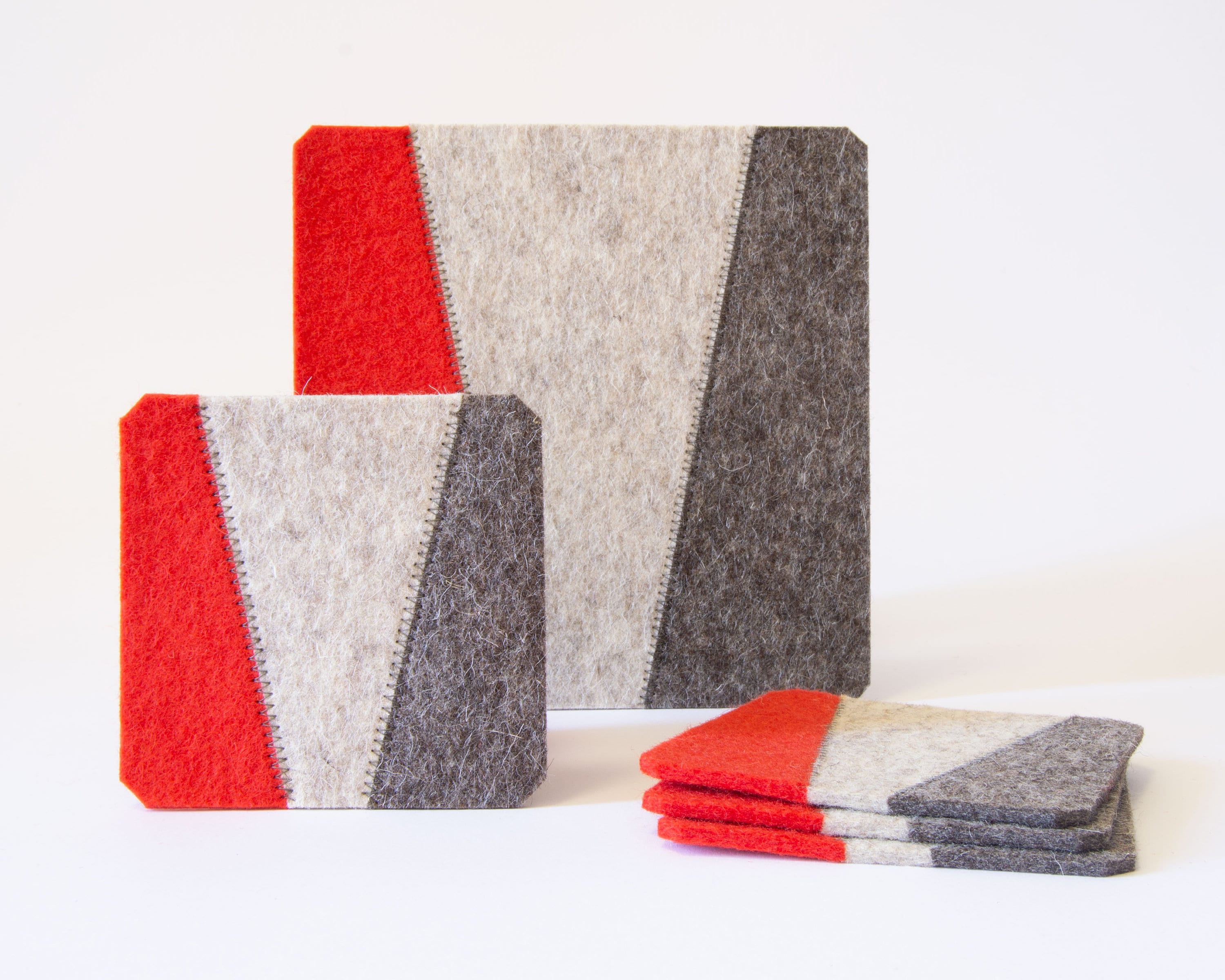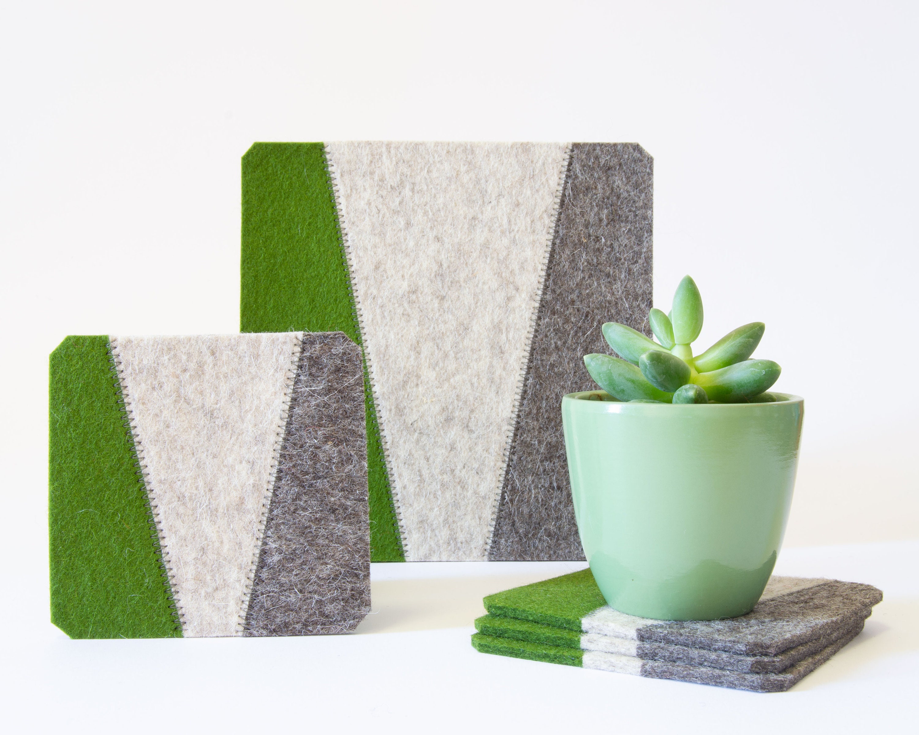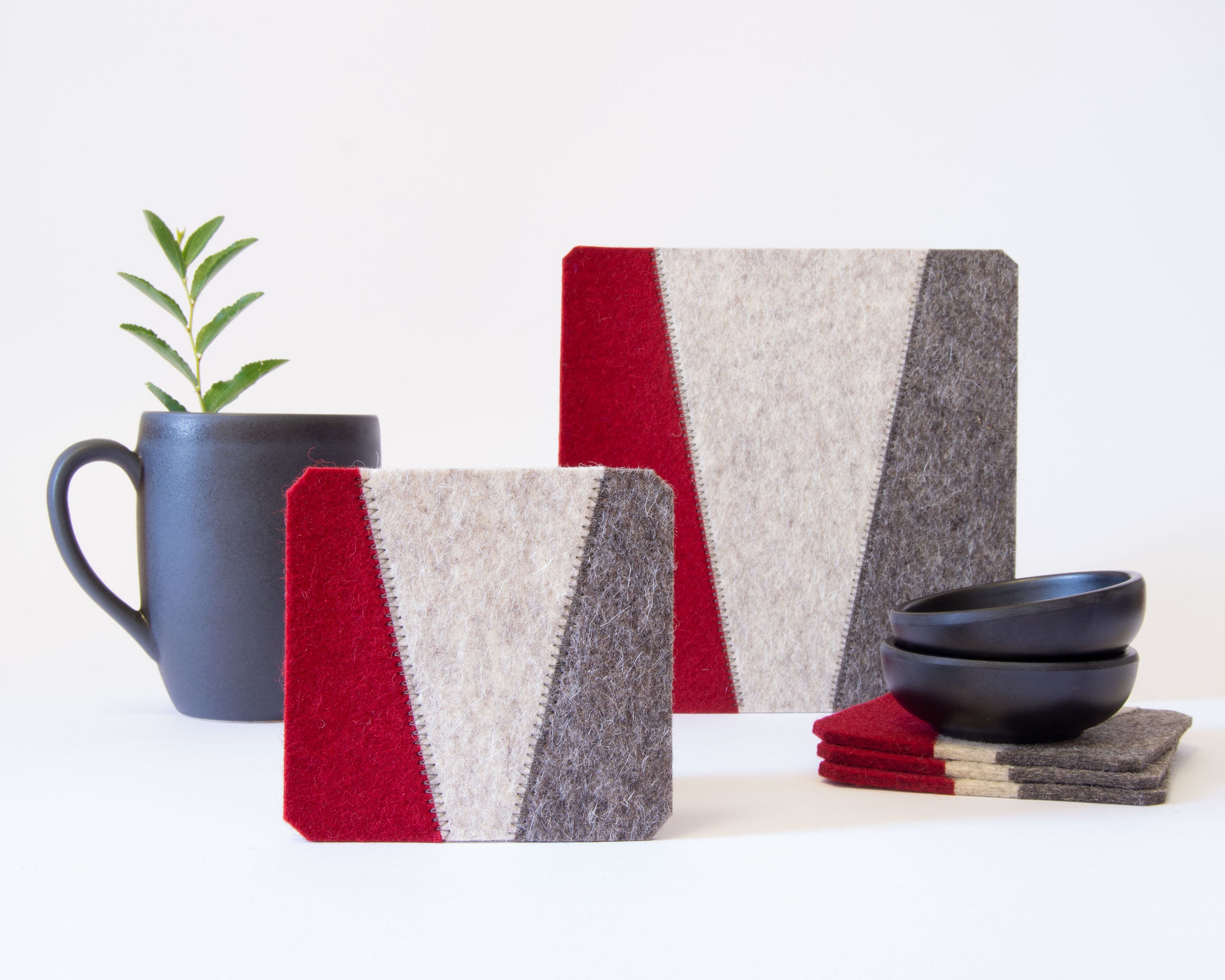 Protect your furniture in style with this set of felt coasters! They are made of 100% wool felt and have a minimalist and eye-catching design. You can add the trivet for your teapot or decanter. Completely handcut and handmade.