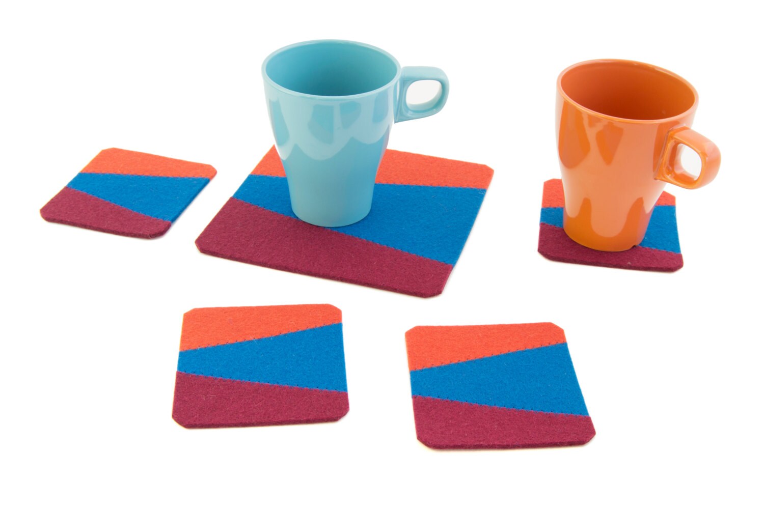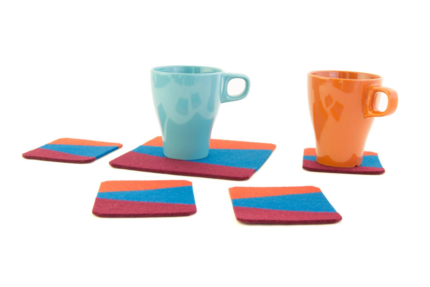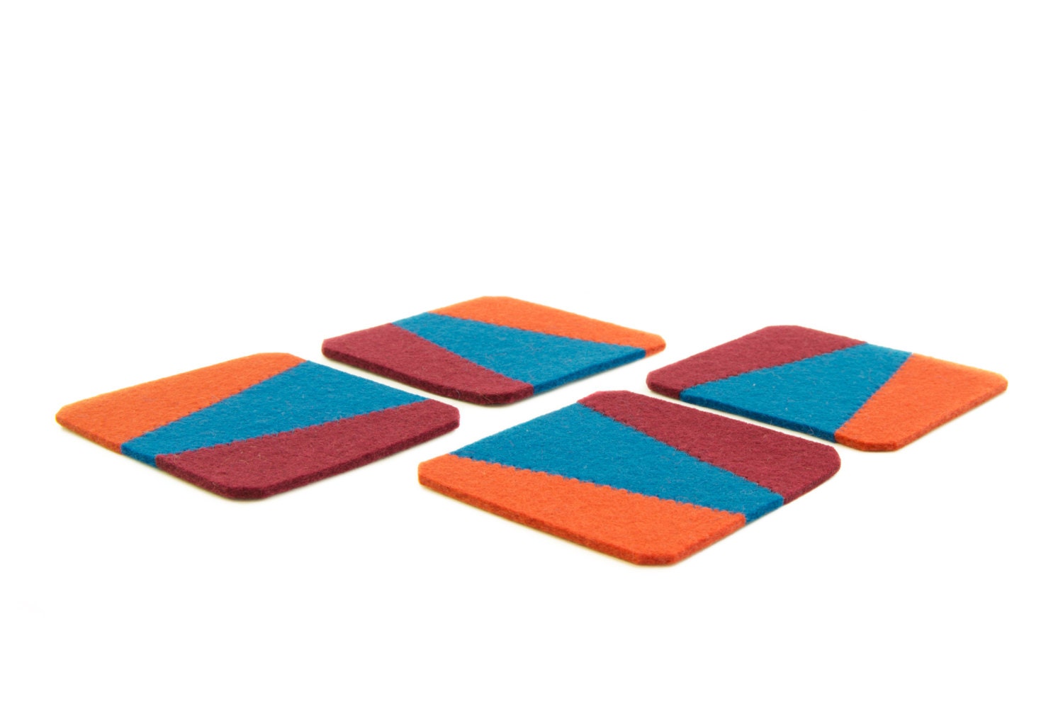 Set of felt coasters - blue/orange/burgundy - square coasters - made in Italy