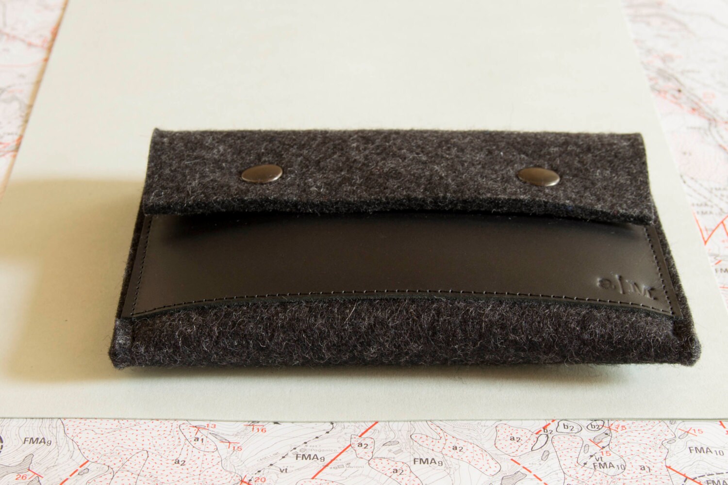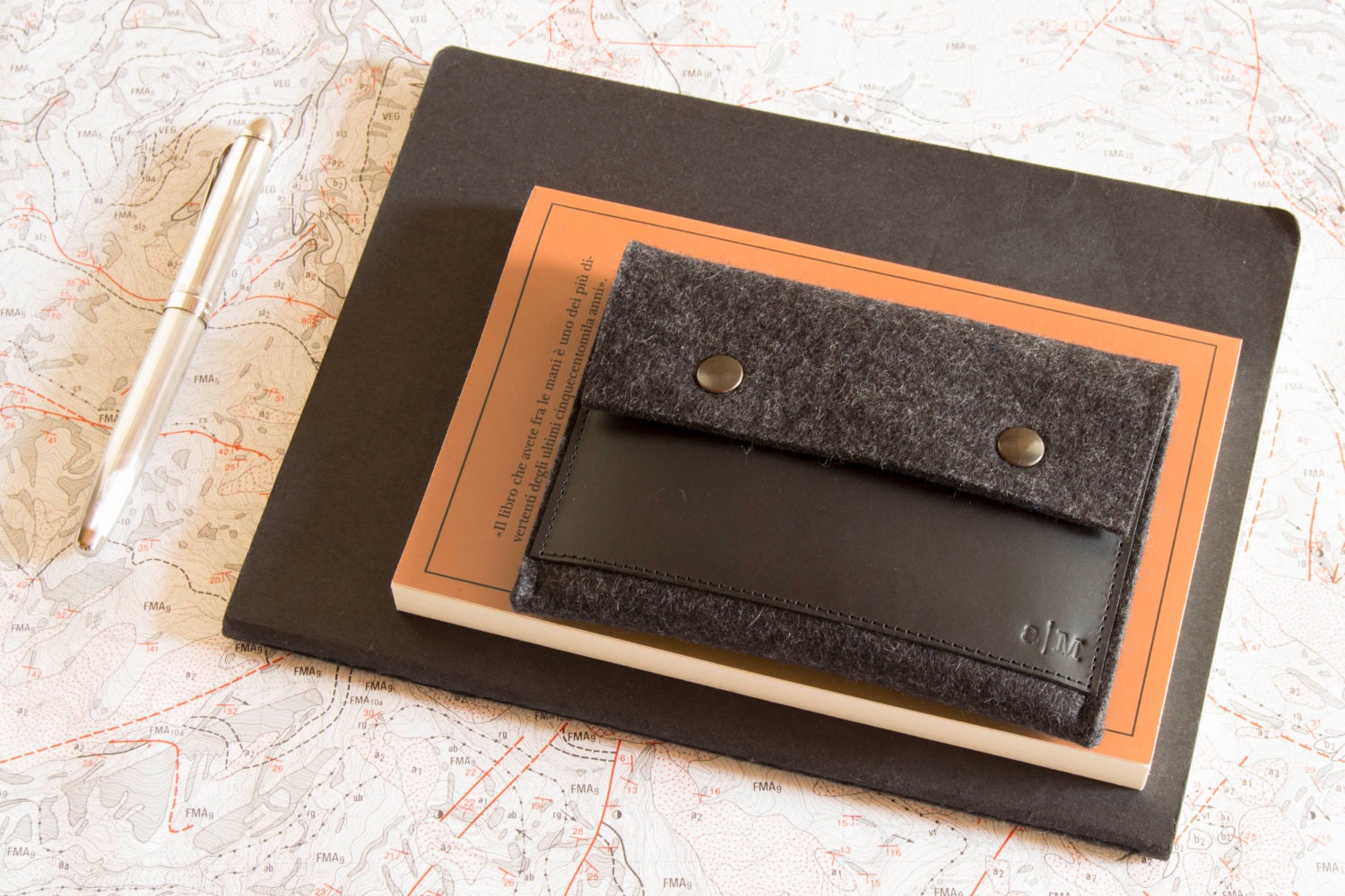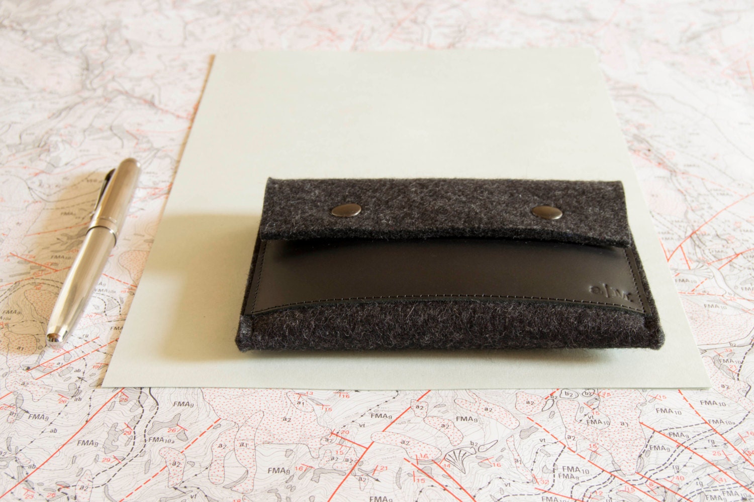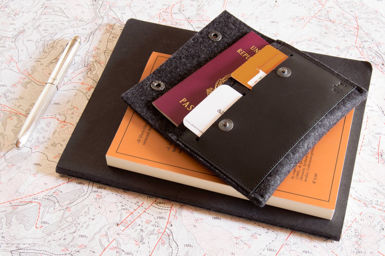 Travel in style! With this felt and leather wallet you can securely carry your passport, credit cards, and documents.