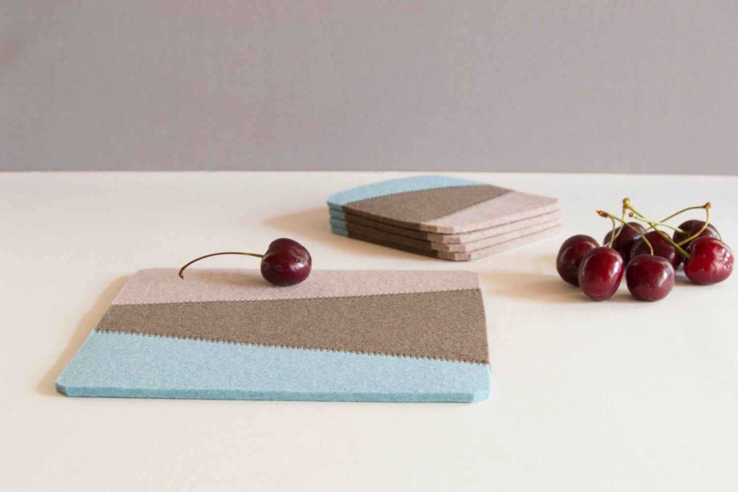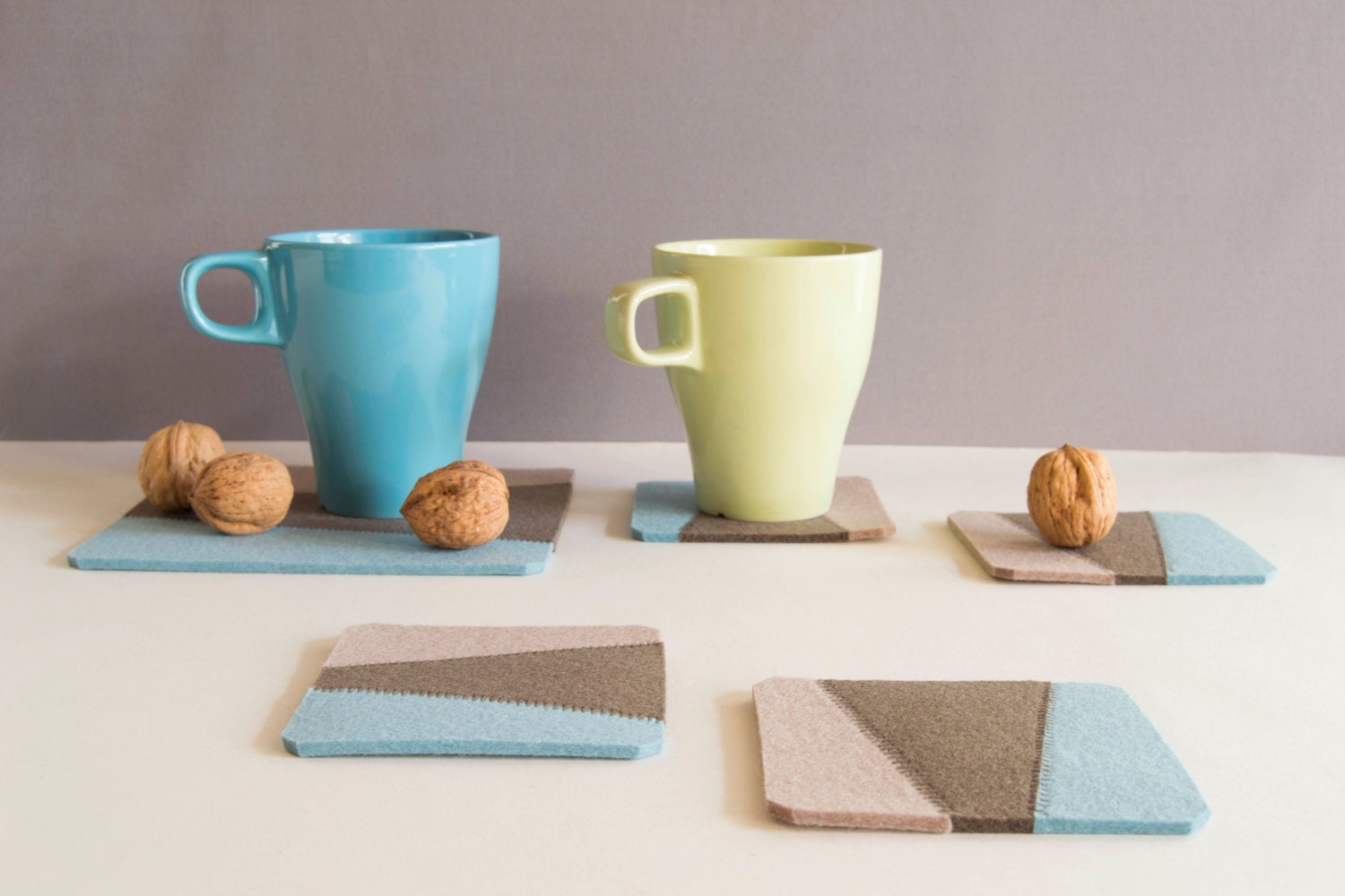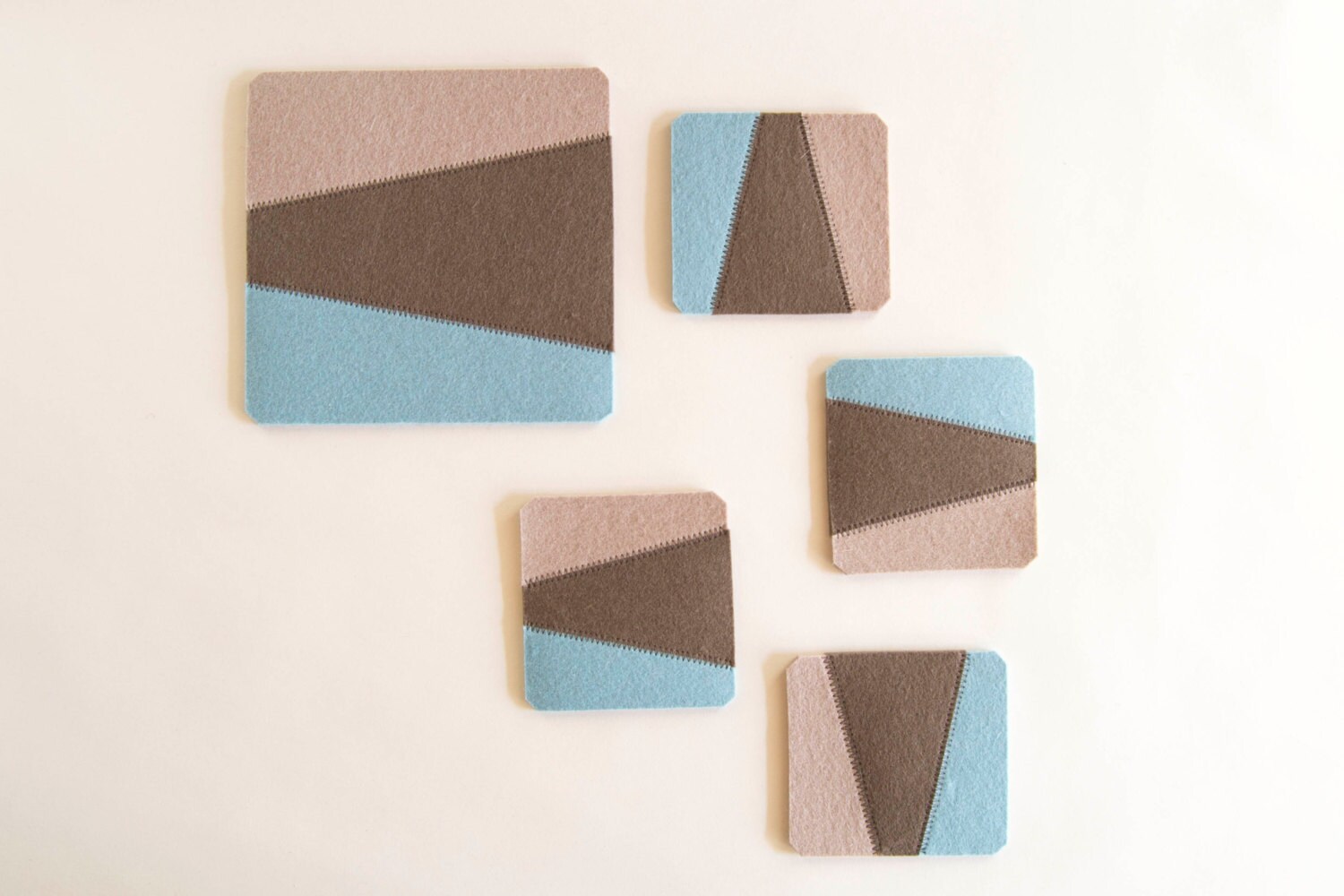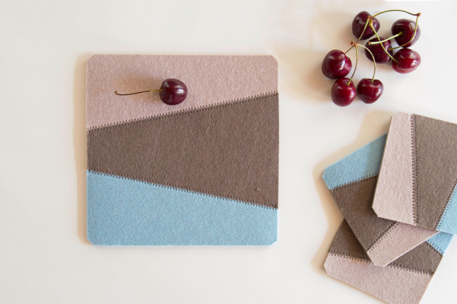 Protect your furniture in style with this set of felt coasters! They are made of 100% wool felt and have a minimalist and eye-catching design. You can add the trivet for your teapot or decanter. Completely handcut and handmade.