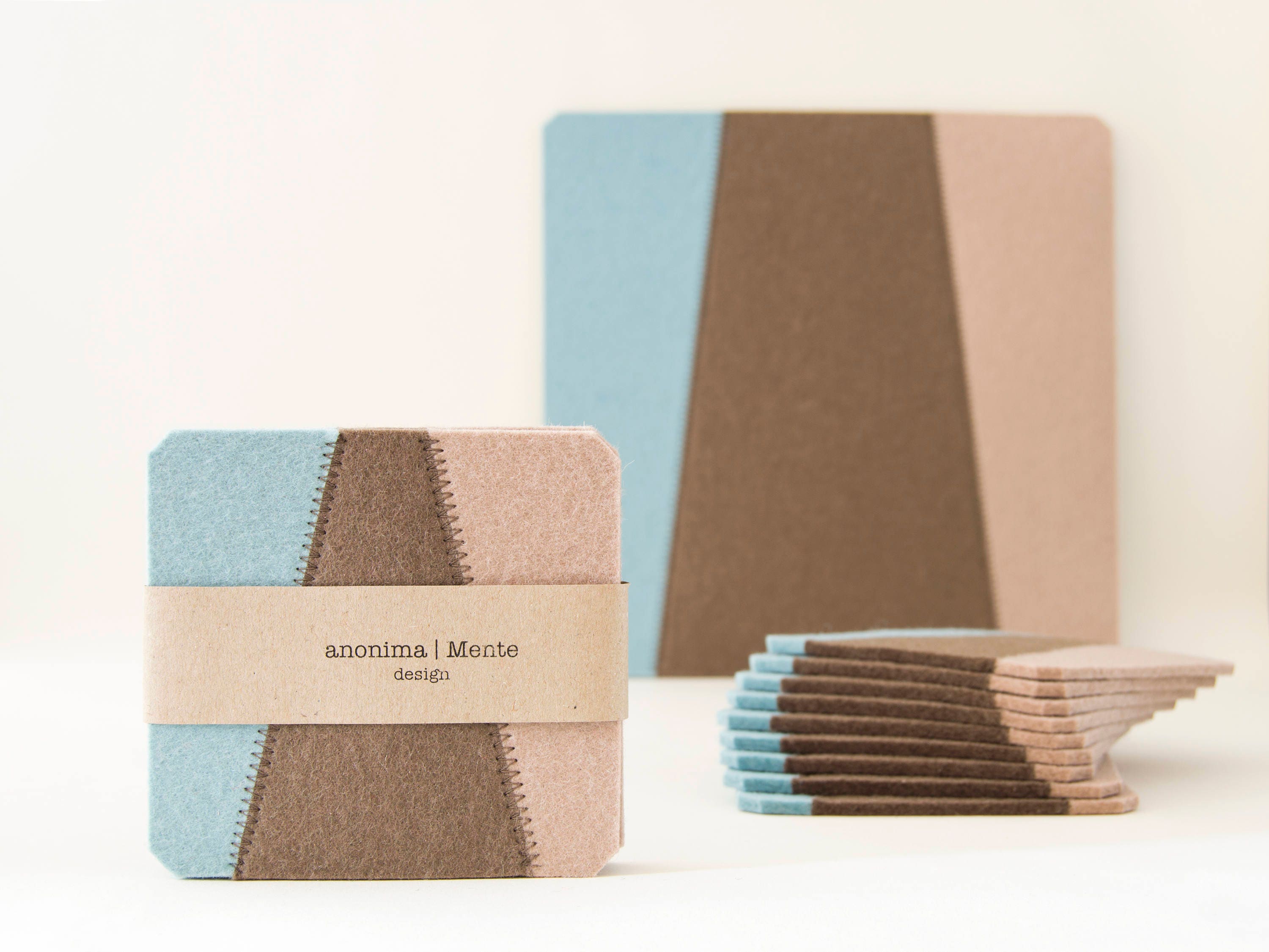 Set of felt coasters - pastel colors - square coasters - wool felt coasters - geometric coasters - housewarming gift - made in Italy