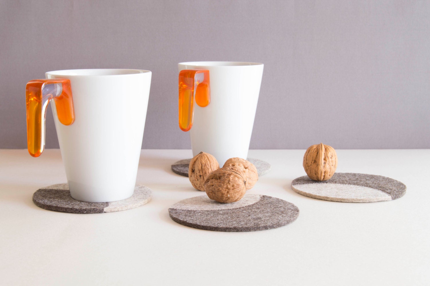Protect your furniture in style with this set of felt coasters! They are made of 100% wool felt and have a minimalist design. Completely handcut and handmade.