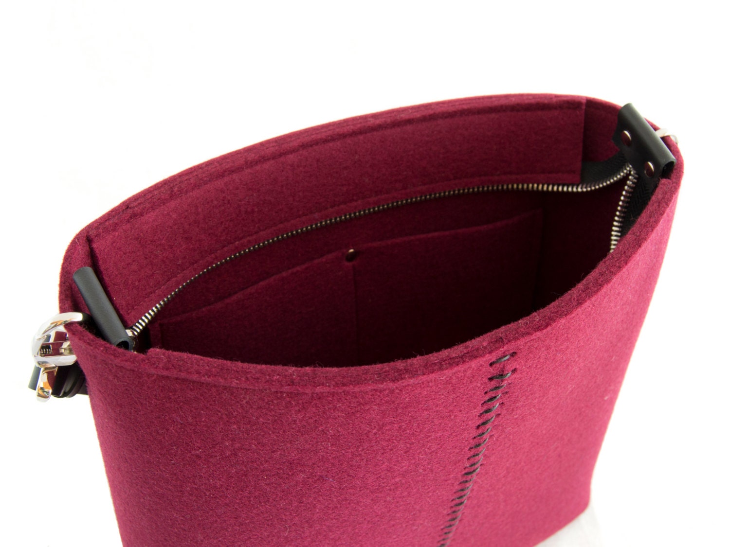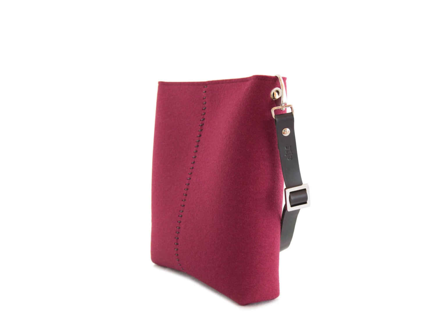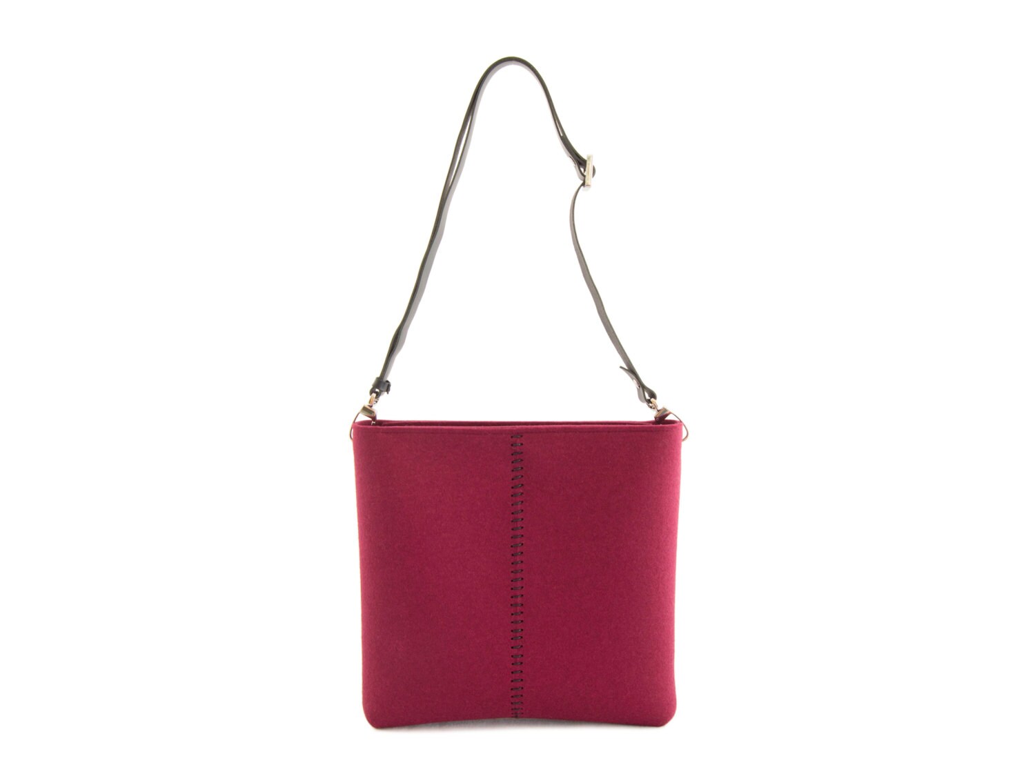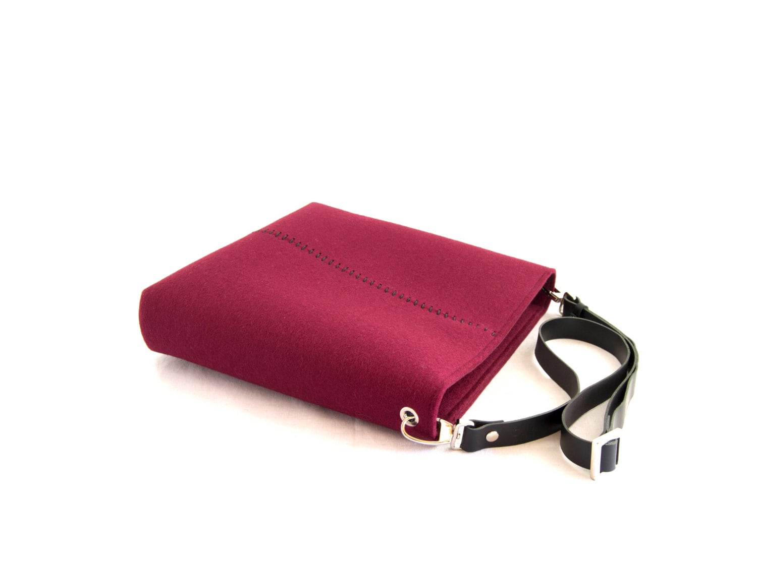 Compact and simple, the bag fits any occasion and outfit. The front stitching is completely handmade using a leather cord. The bag is soft and durable at the same time, because made of 100% merino wool felt and real Italian vegetable tanned leather.