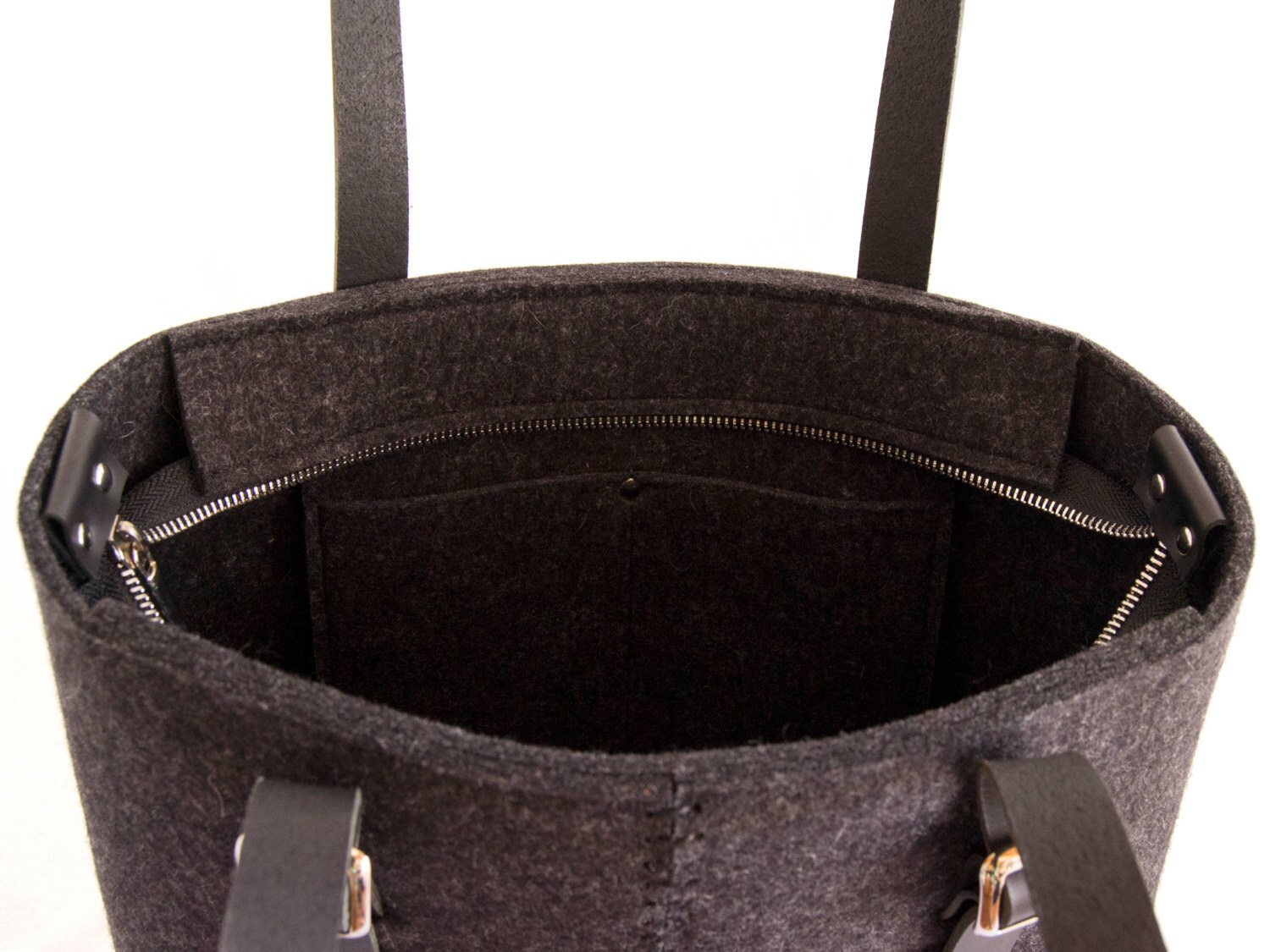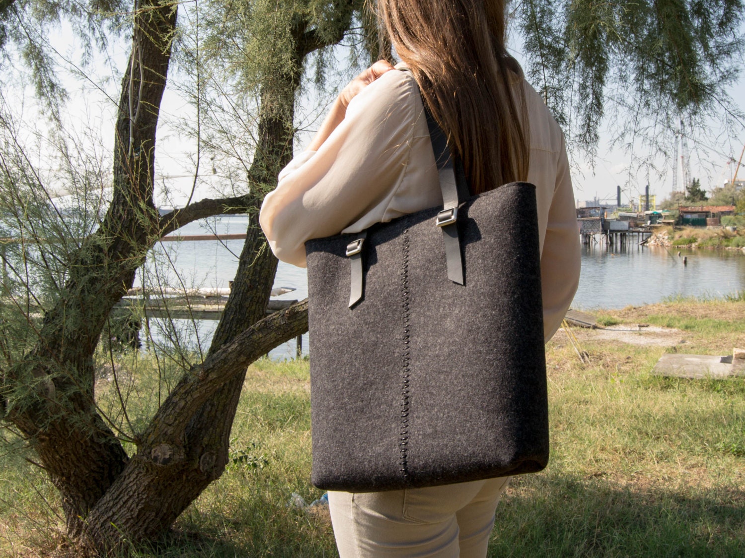 A spacious carryall perfect for your daily life. This tote bag will carry you easily from the office to off-duty. The front stitching is completely handmade using a leather cord. The bag is made of 100% merino wool felt, making it soft and durable at the same time.