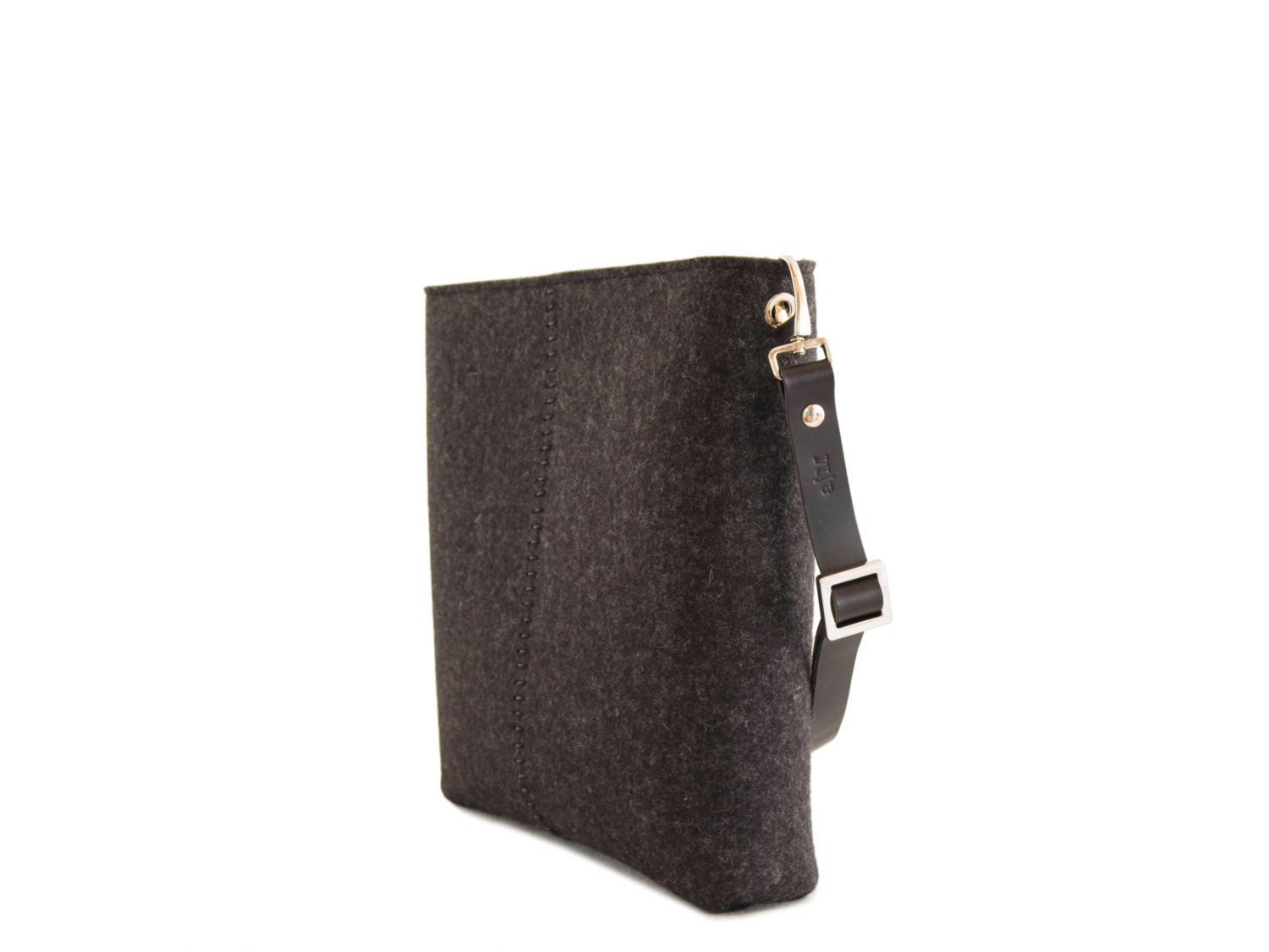Compact and simple, the bag fits any occasion and outfit. The front stitching is completely handmade using a leather cord. The bag is soft and durable at the same time, because made of 100% merino wool felt and real Italian vegetable tanned leather.
