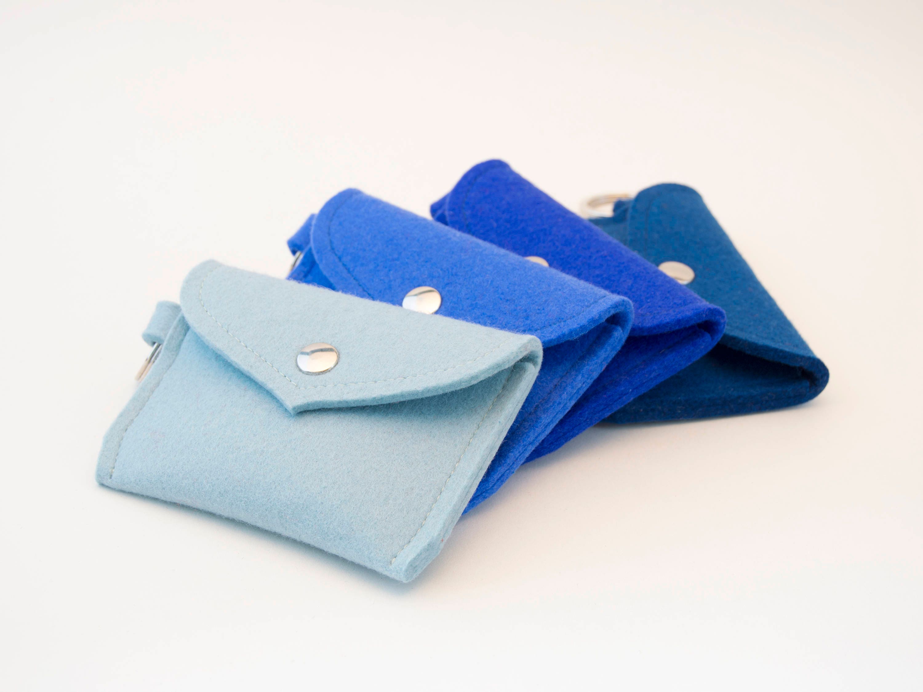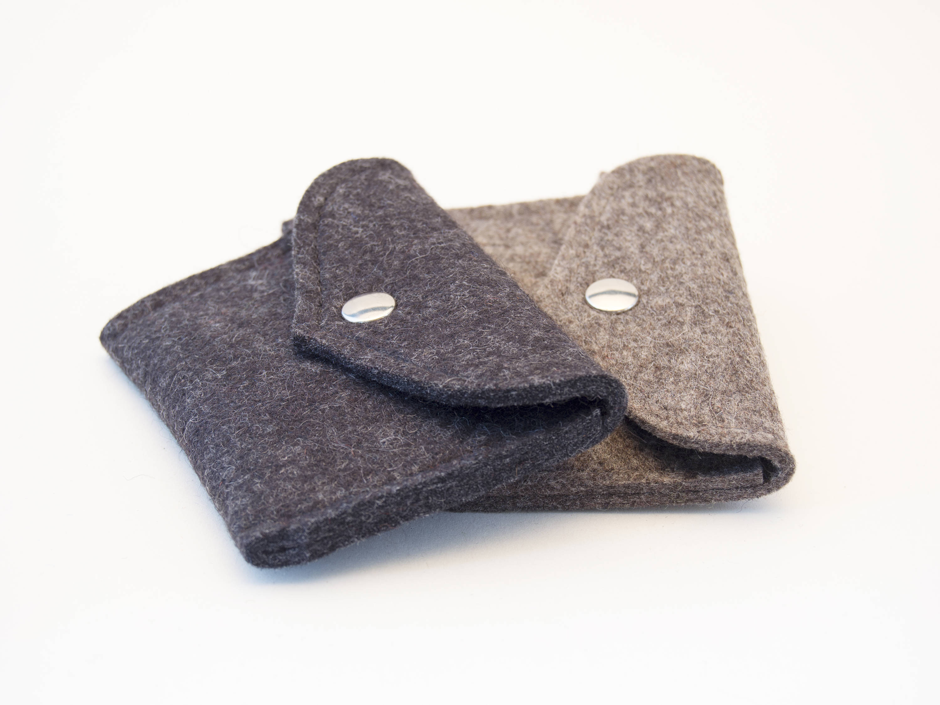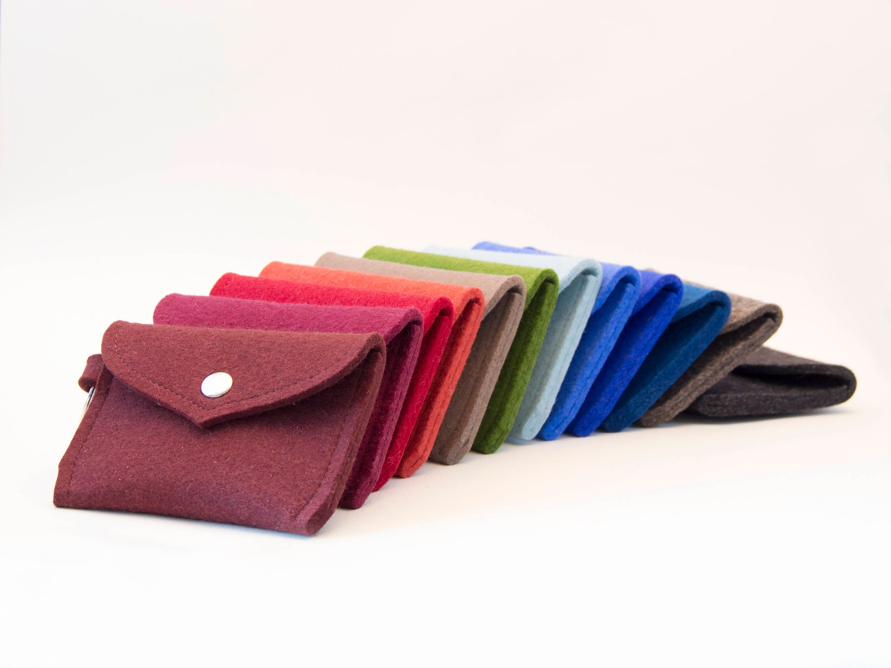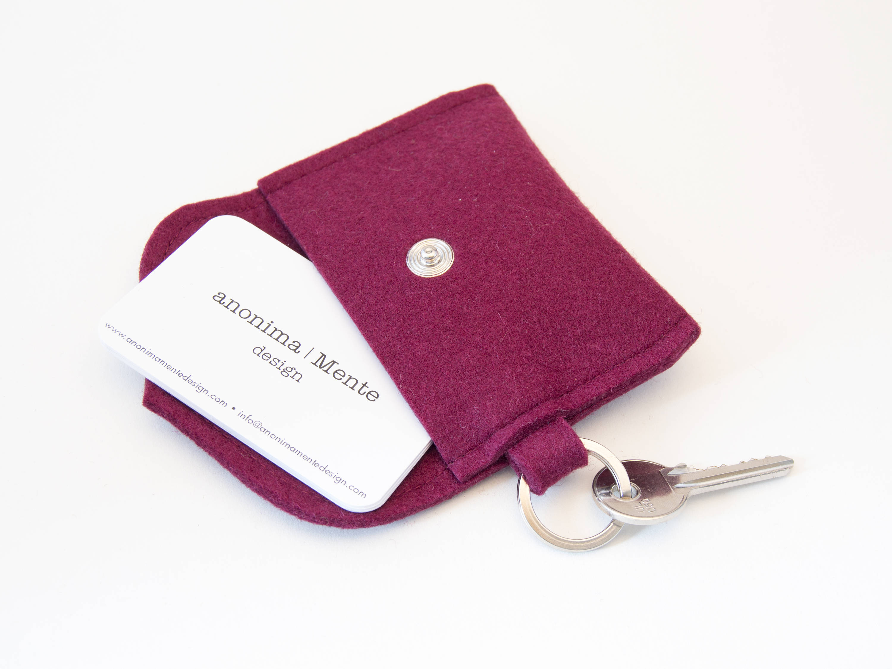 This Wool felt PURSE is perfect for holding your cards, money and coin. It cames with a key ring making it a perfect accessory for a coffee run or anytime you don't want to take your bag.