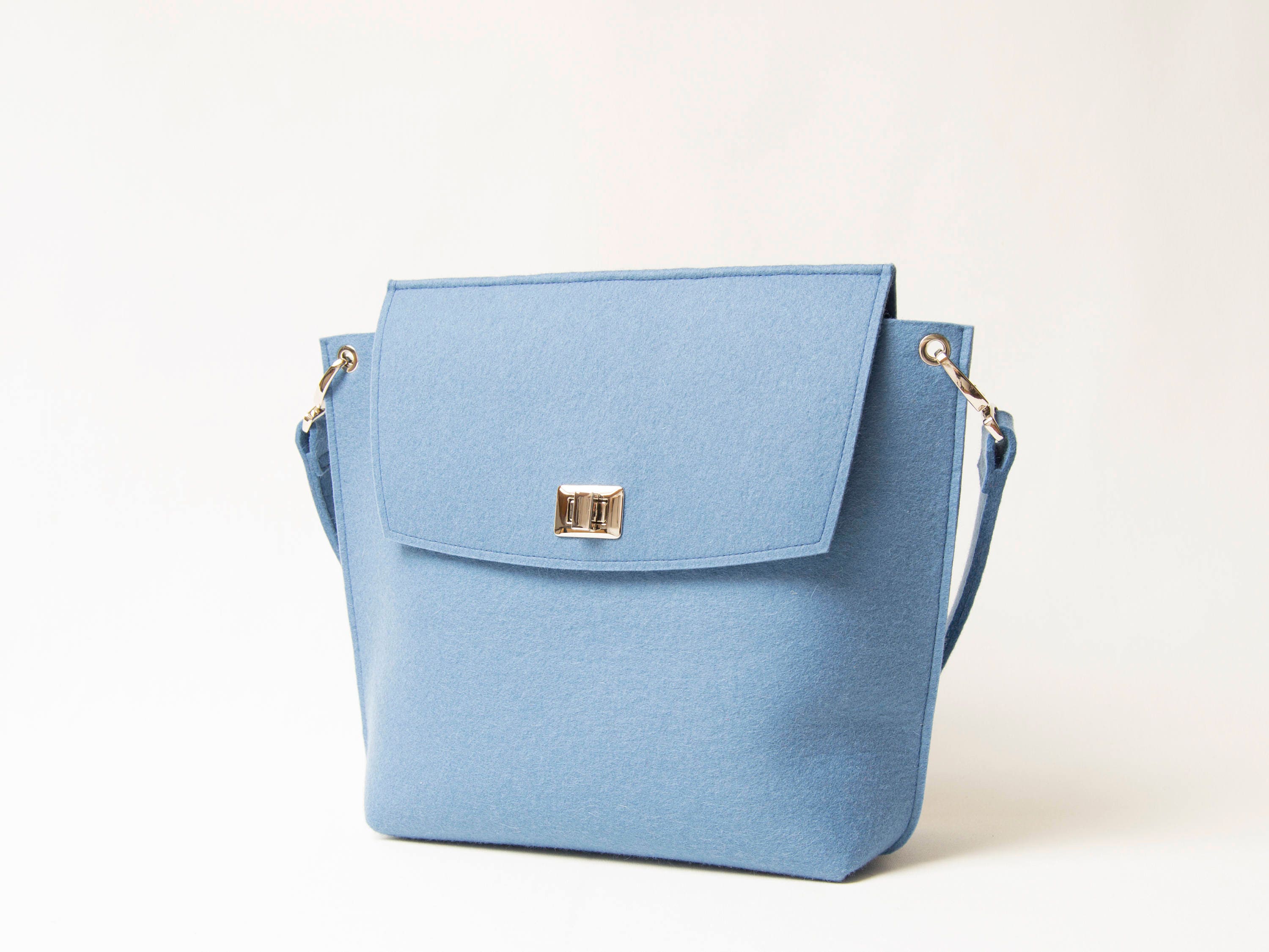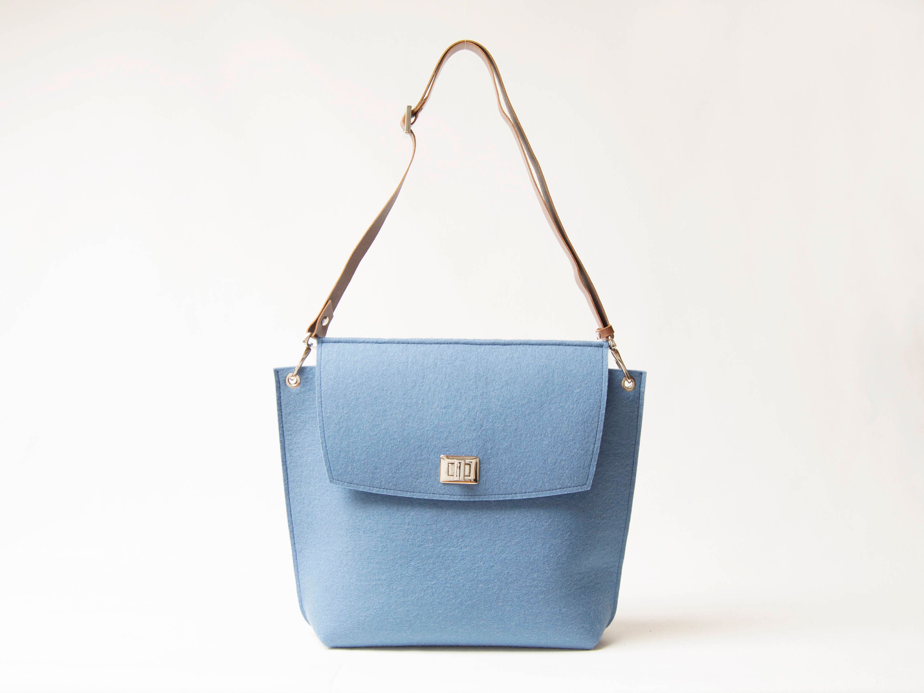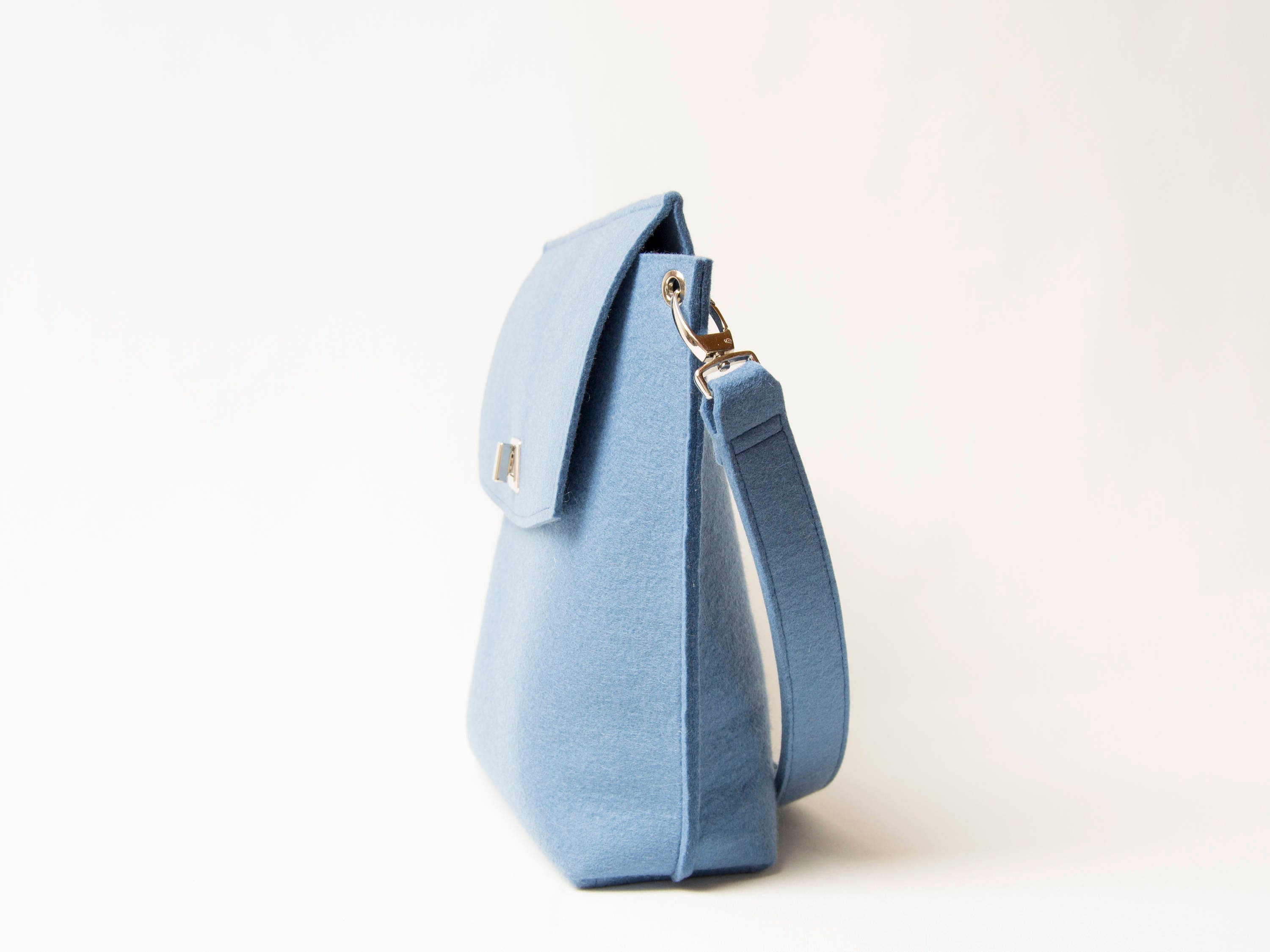40% OFF Wool Felt FLAP BAG - light blue tote bag - light blue bag - womens bag - felt shoulder bag - elegant bag - made in Italy