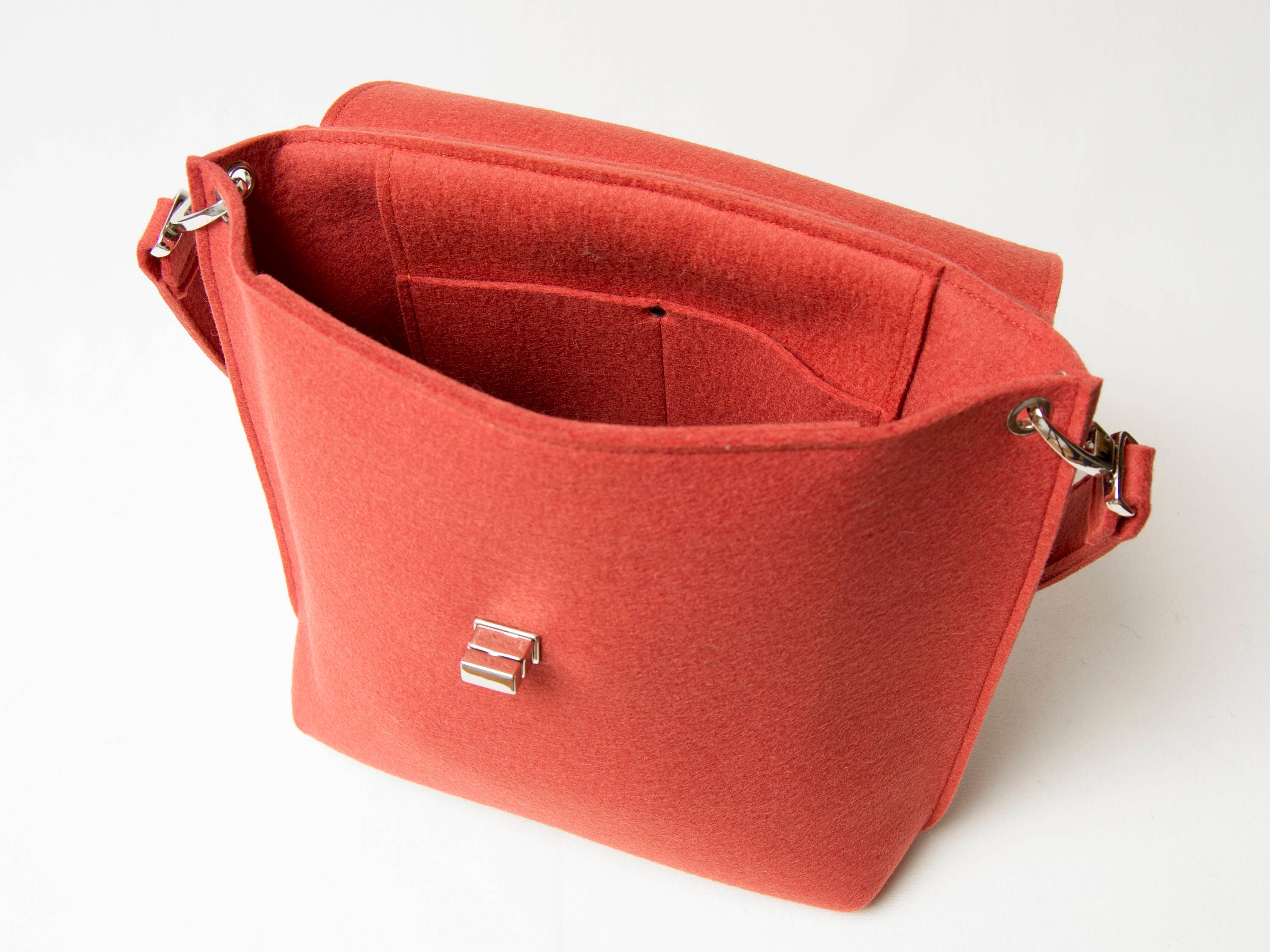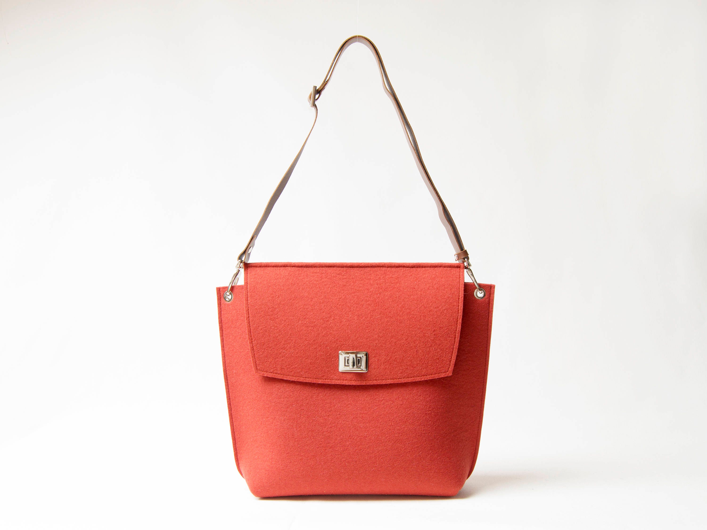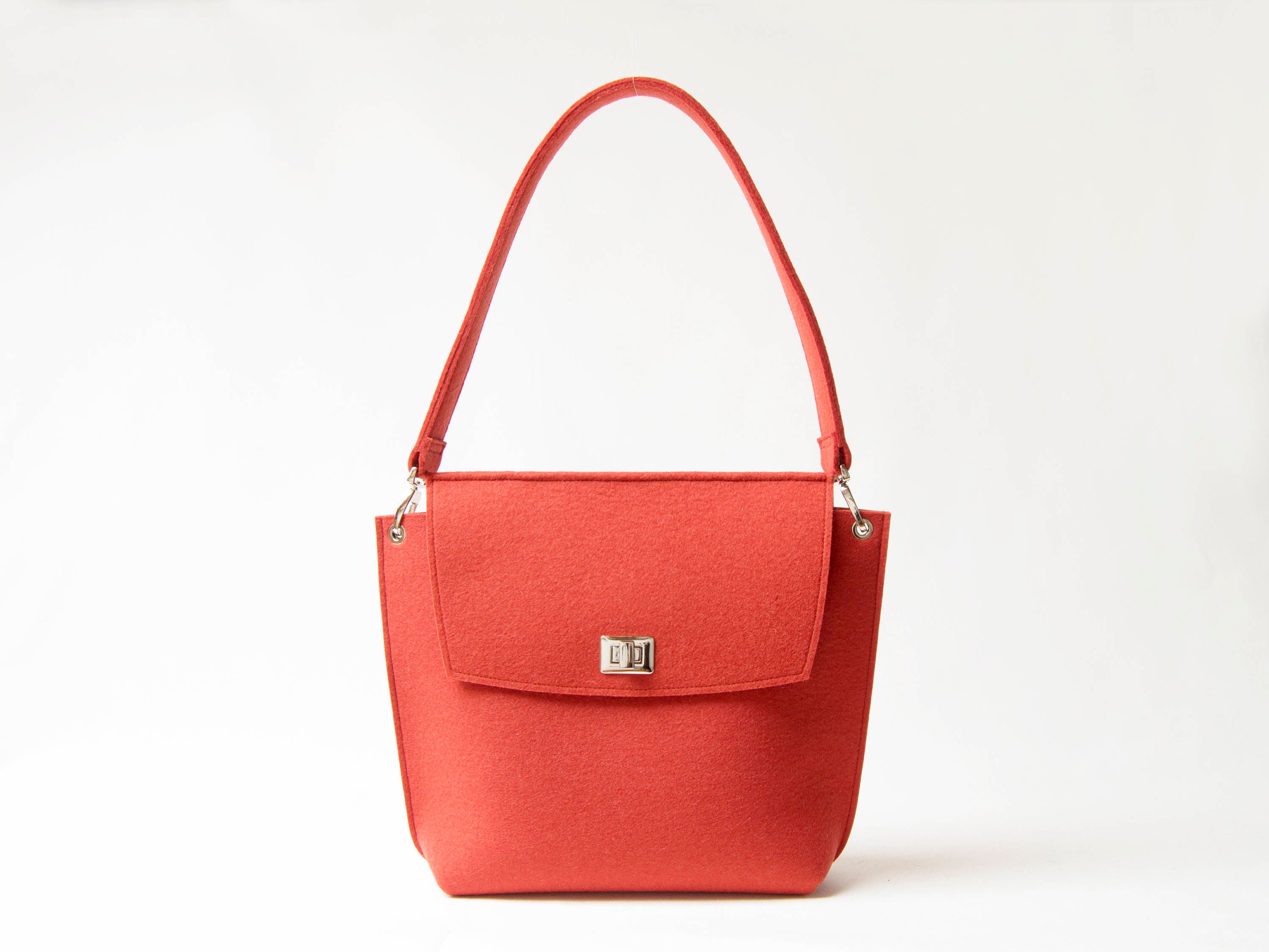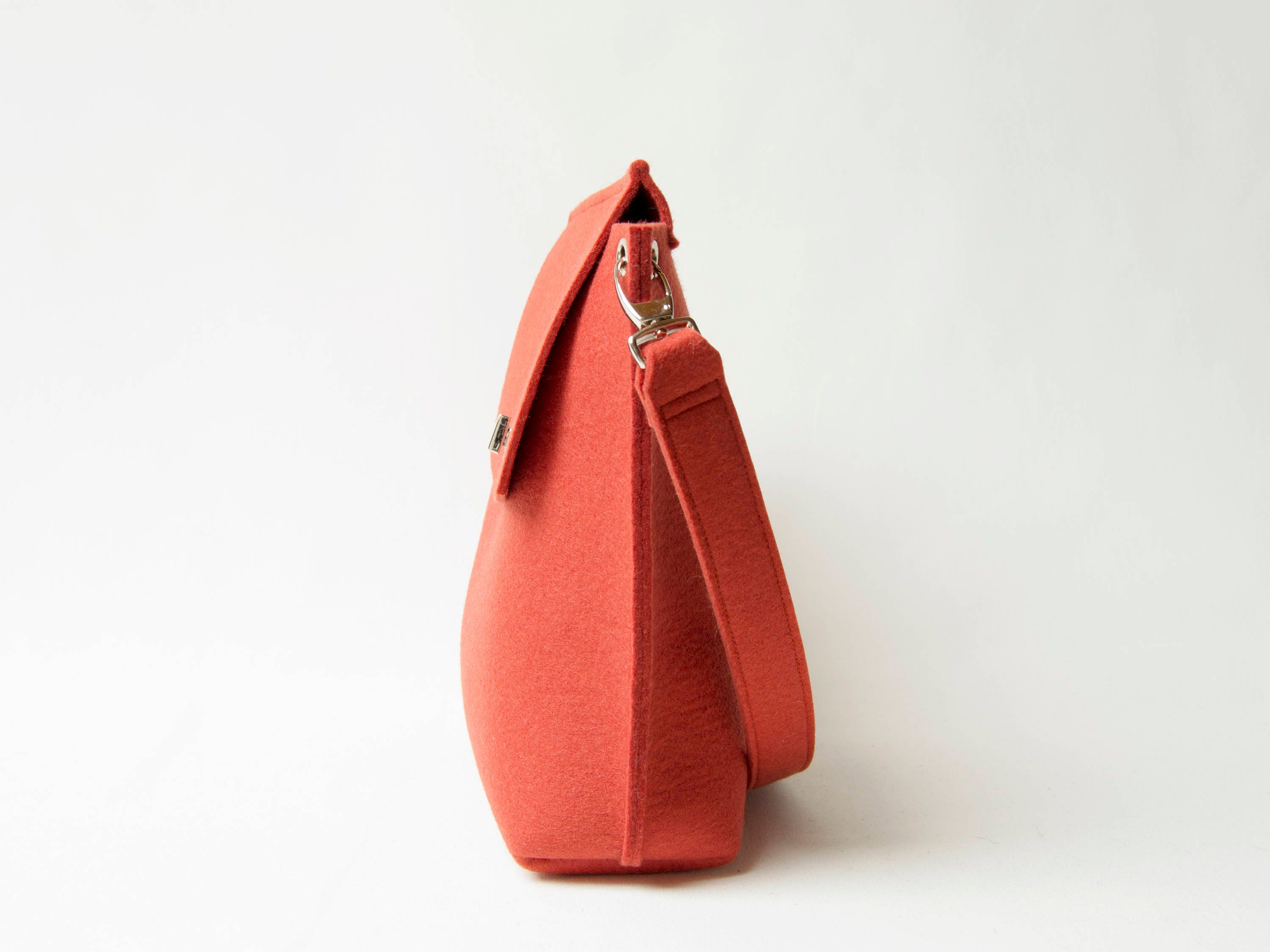 Wool Felt FLAP BAG - orange tote bag - orange bag - womens bag - felt shoulder bag - elegant bag - made in Italy