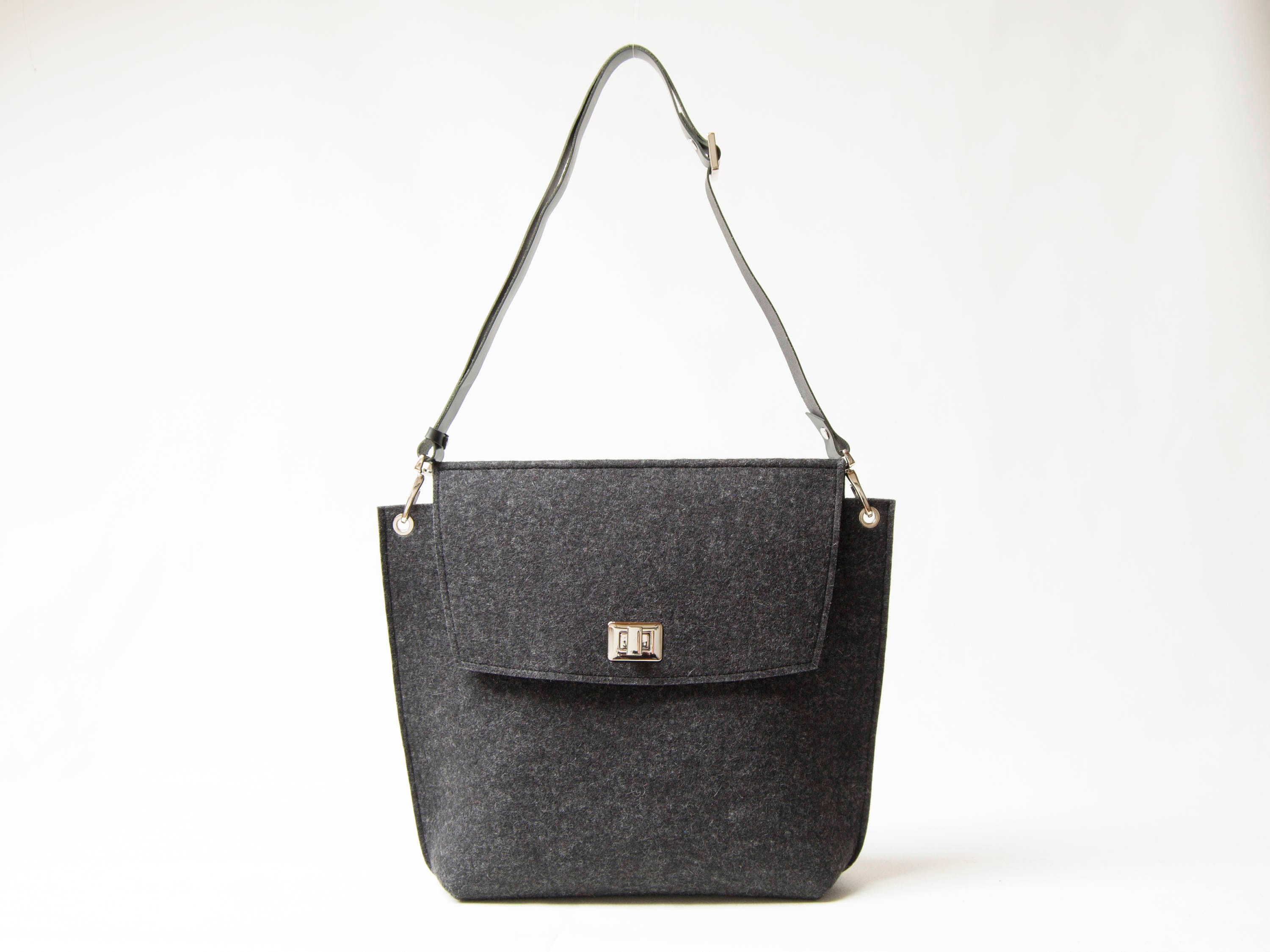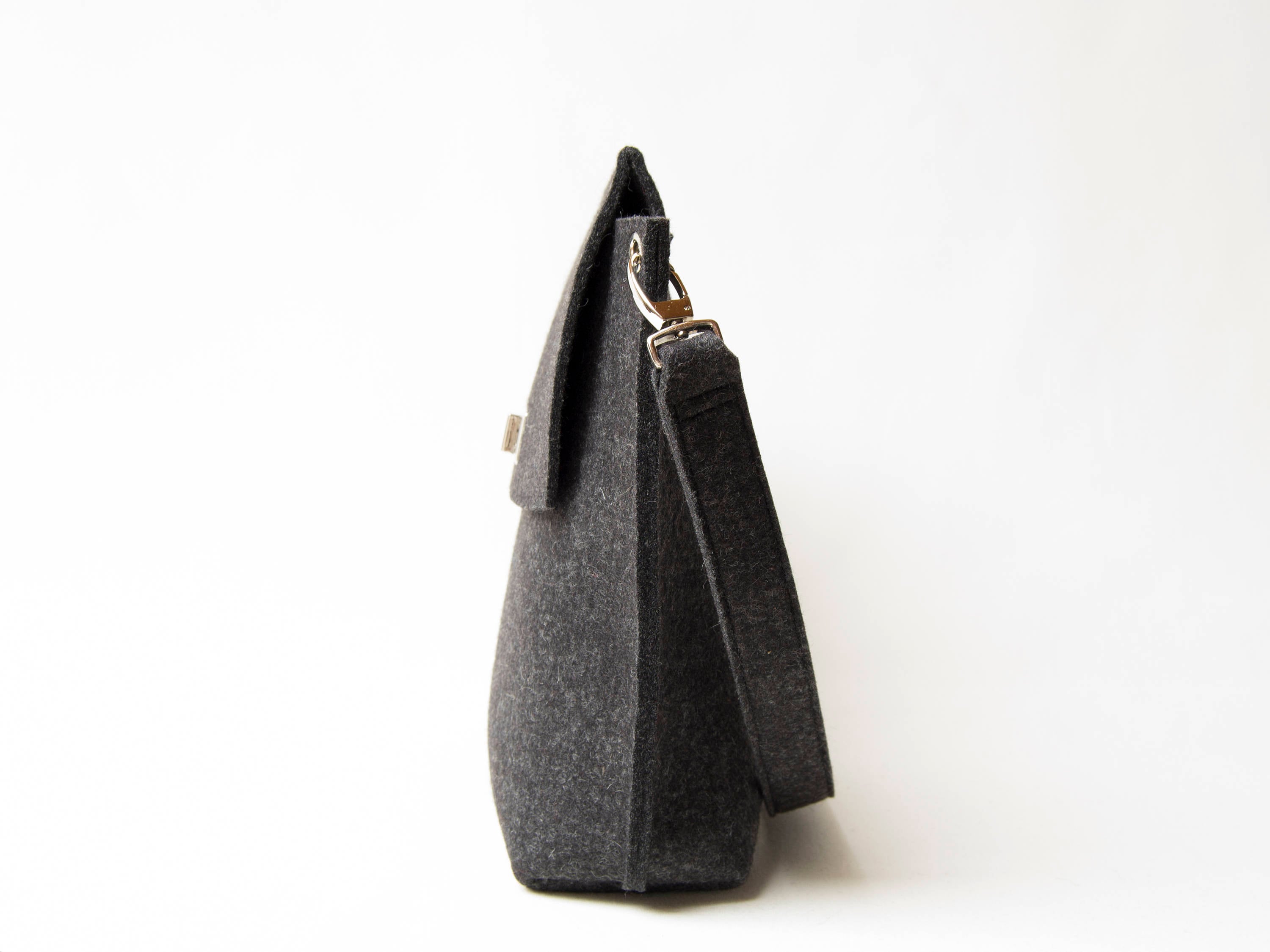 This elegant wool felt flap bag will carry you easily from the office to off-duty. You can choose the adjustable leather strap instead of the felt one to make the bag even more stylish. The bag is soft and durable at the same time, because it's made of 100% merino wool felt.