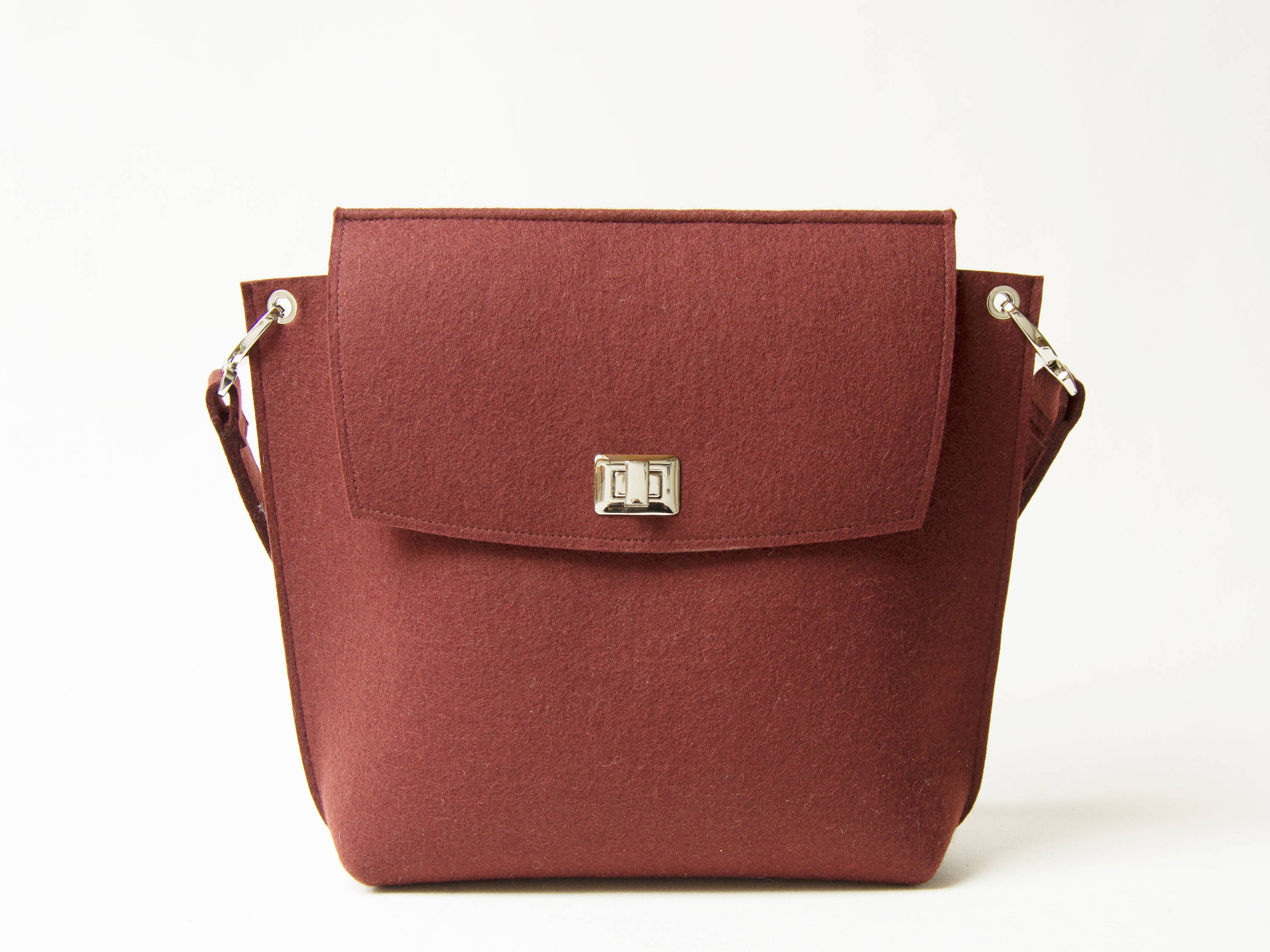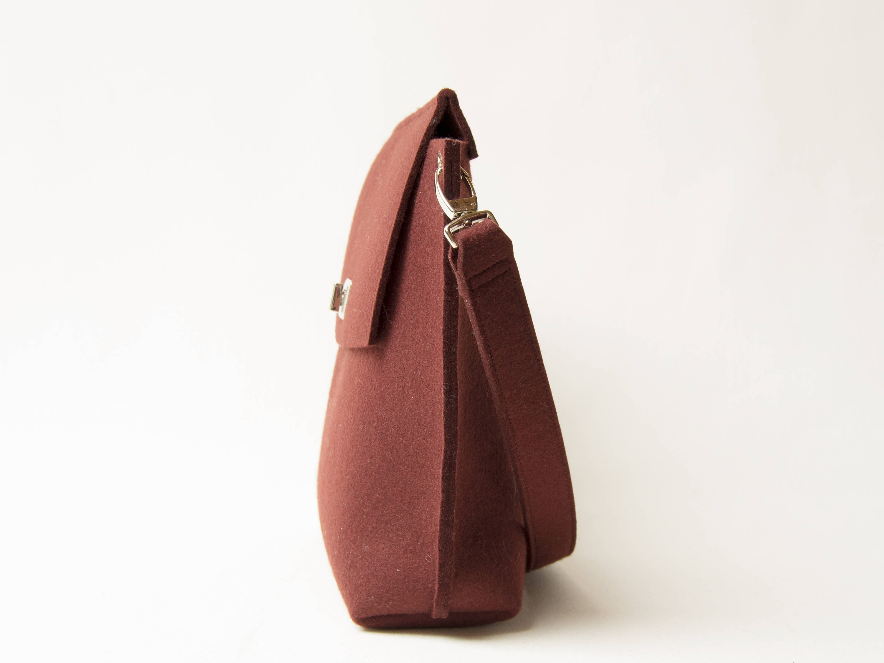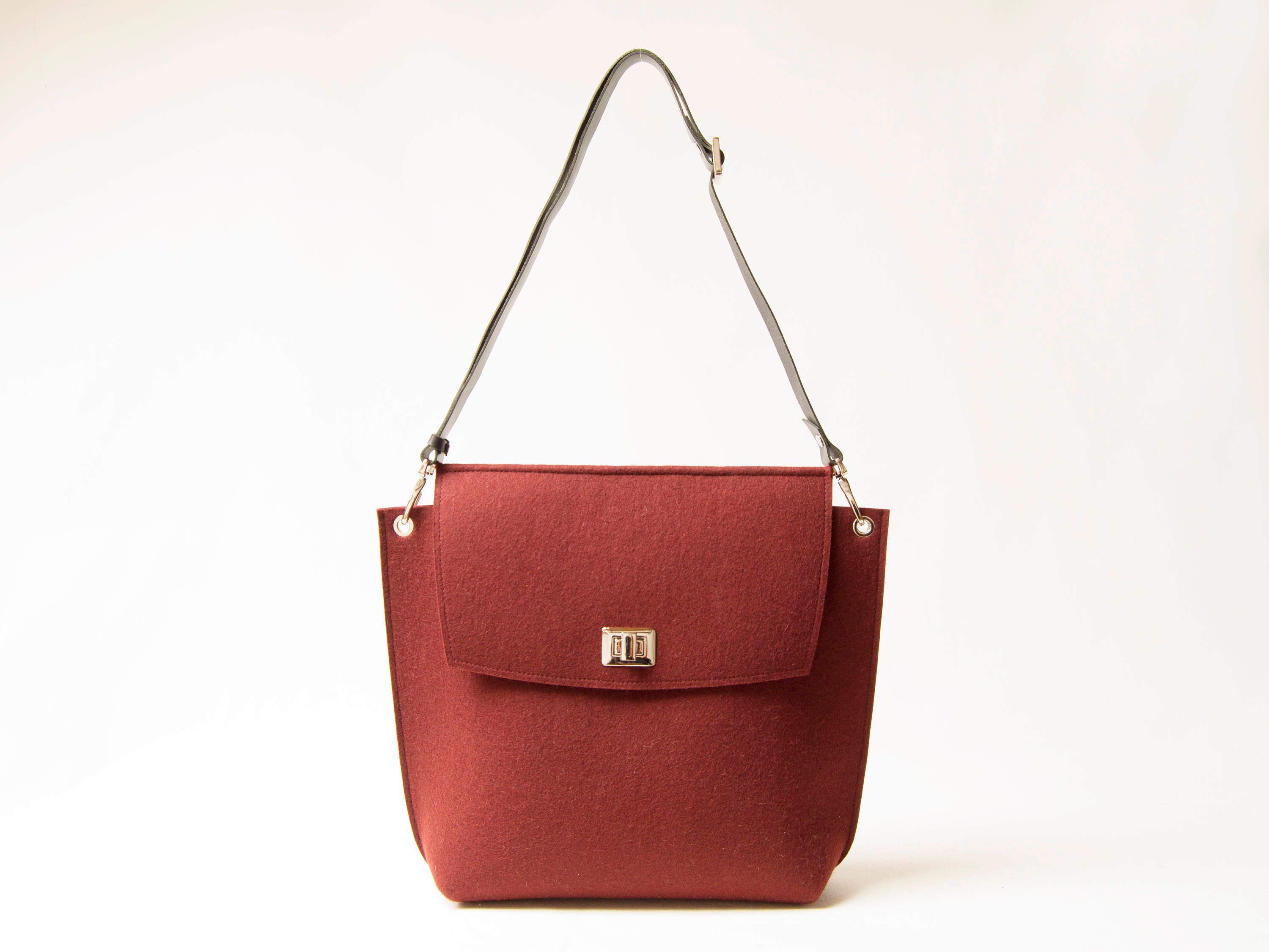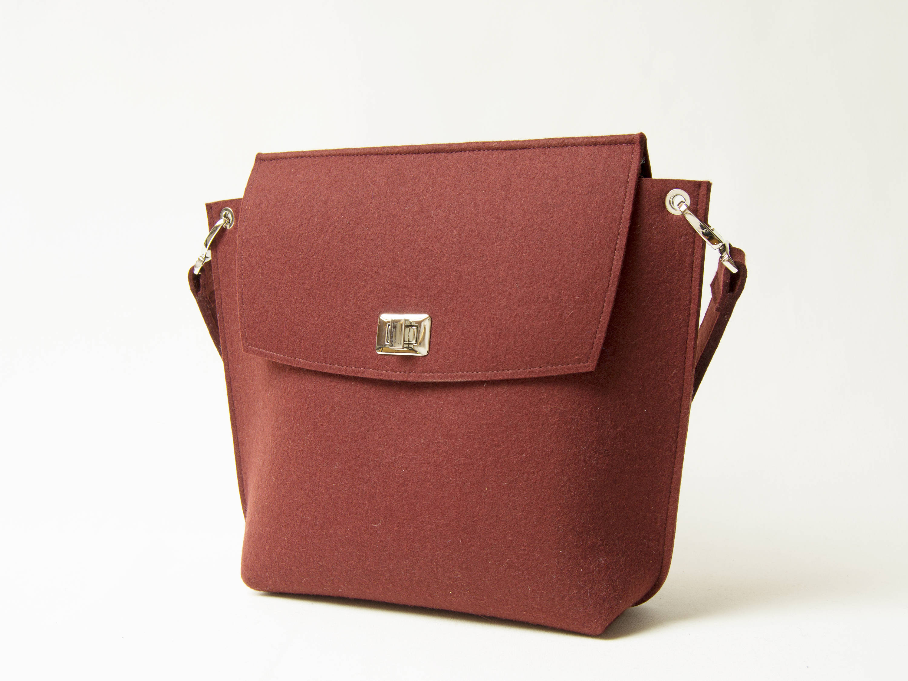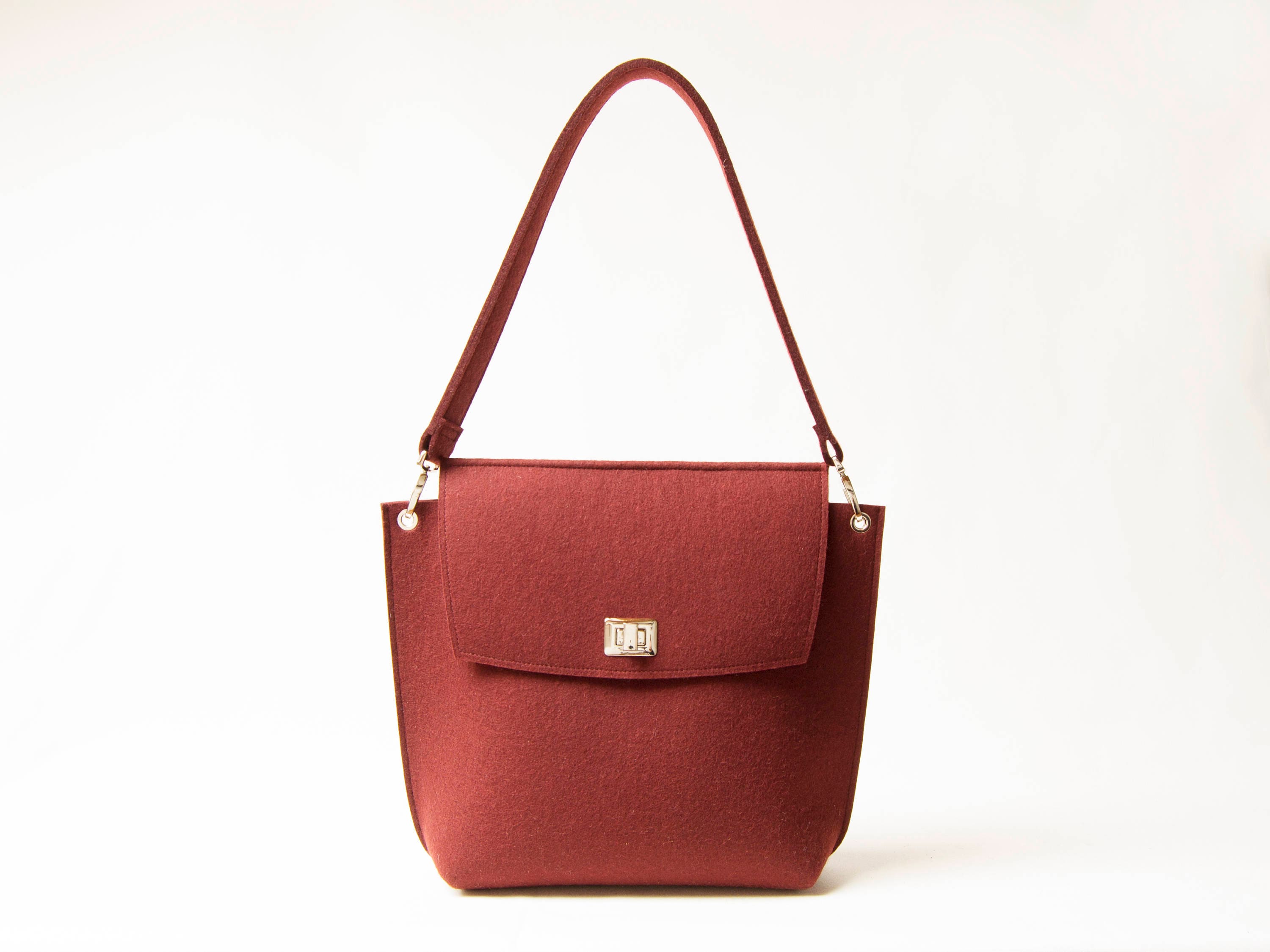 Wool Felt FLAP BAG - maroon tote bag - dark red bag - womens bag - felt shoulder bag - elegant bag - made in Italy