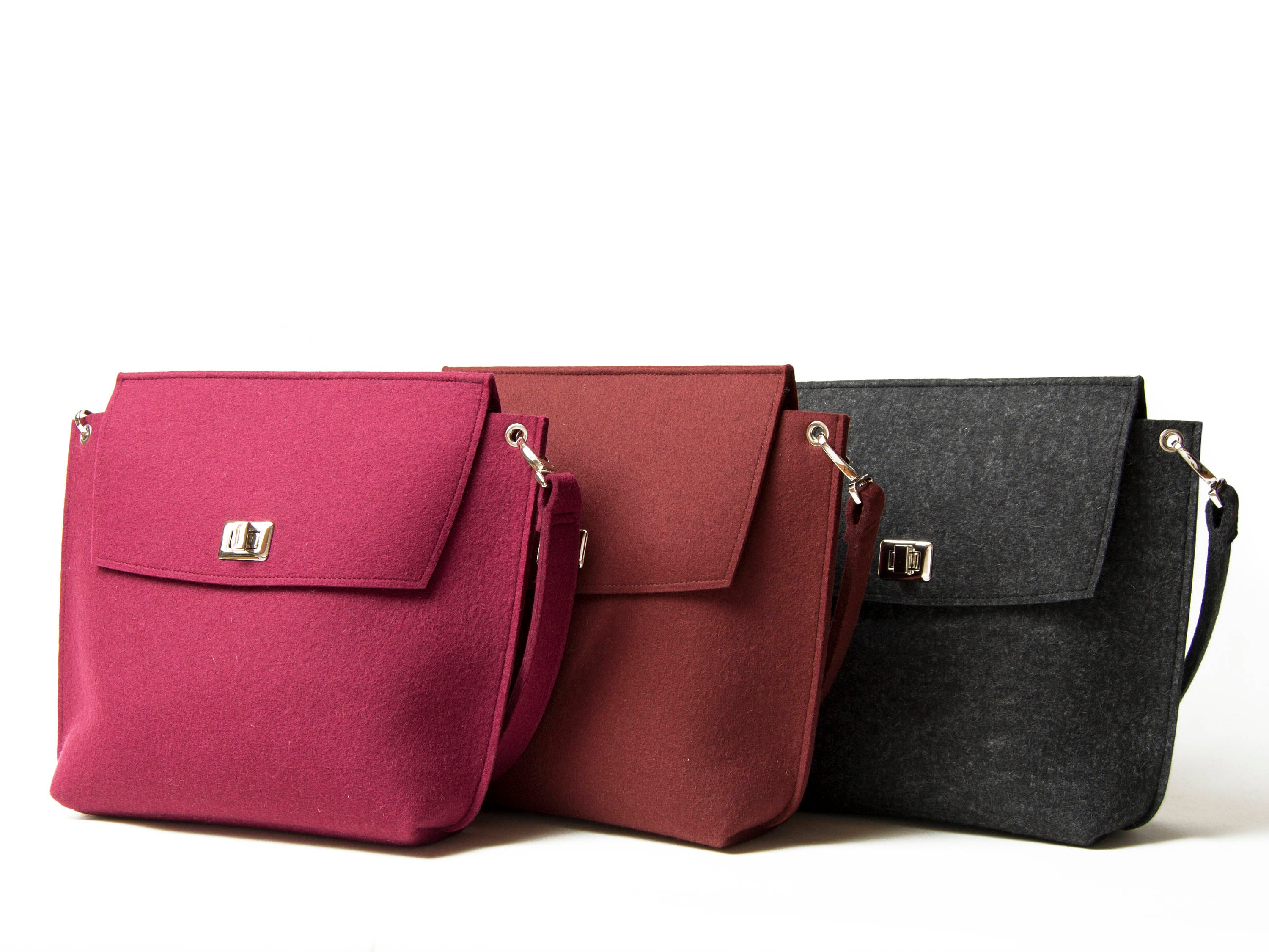 This elegant wool felt flap bag will carry you easily from the office to off-duty. You can choose the adjustable leather strap instead of the felt one to make the bag even more stylish. The bag is soft and durable at the same time, because it's made of 100% merino wool felt.