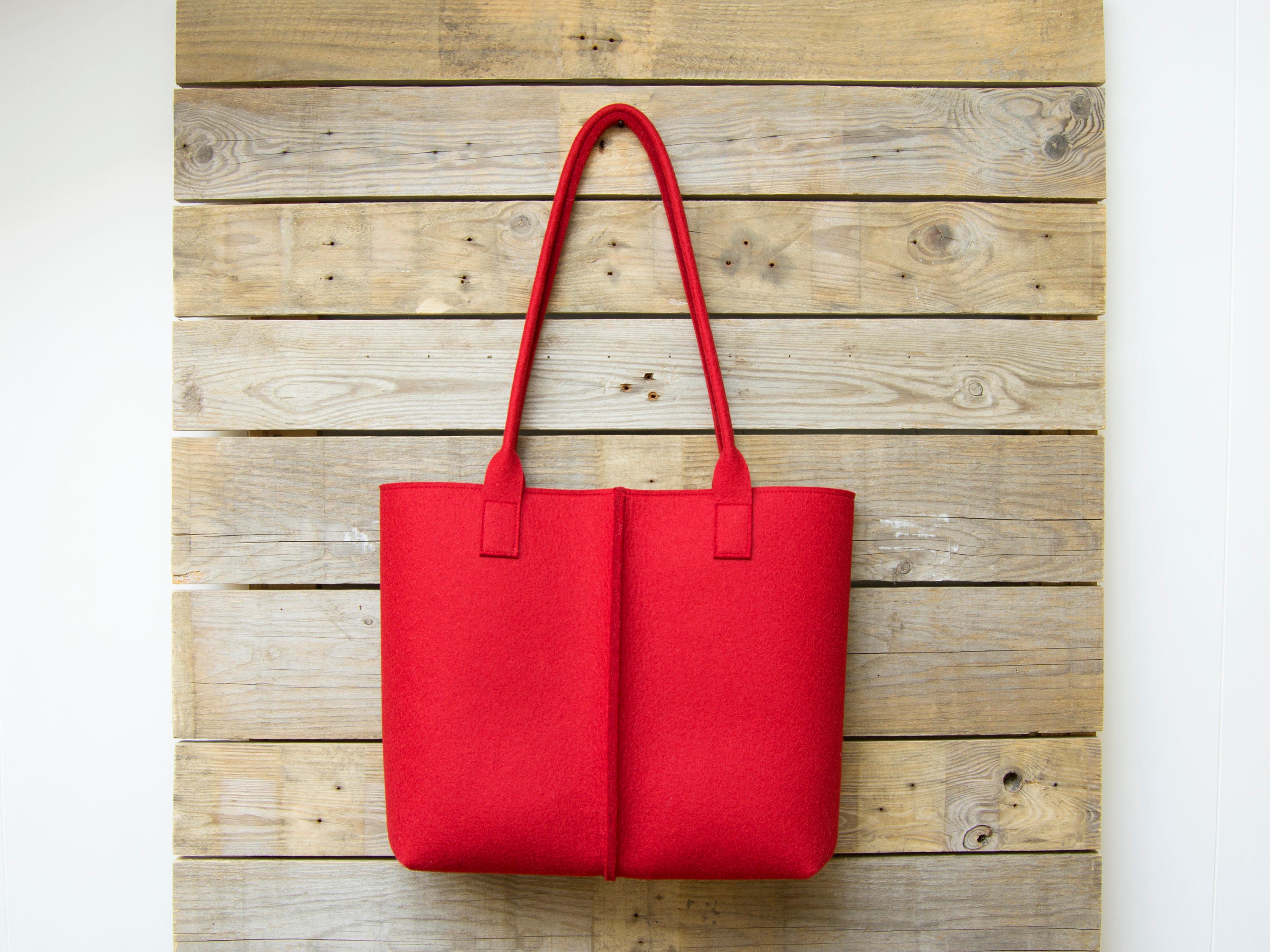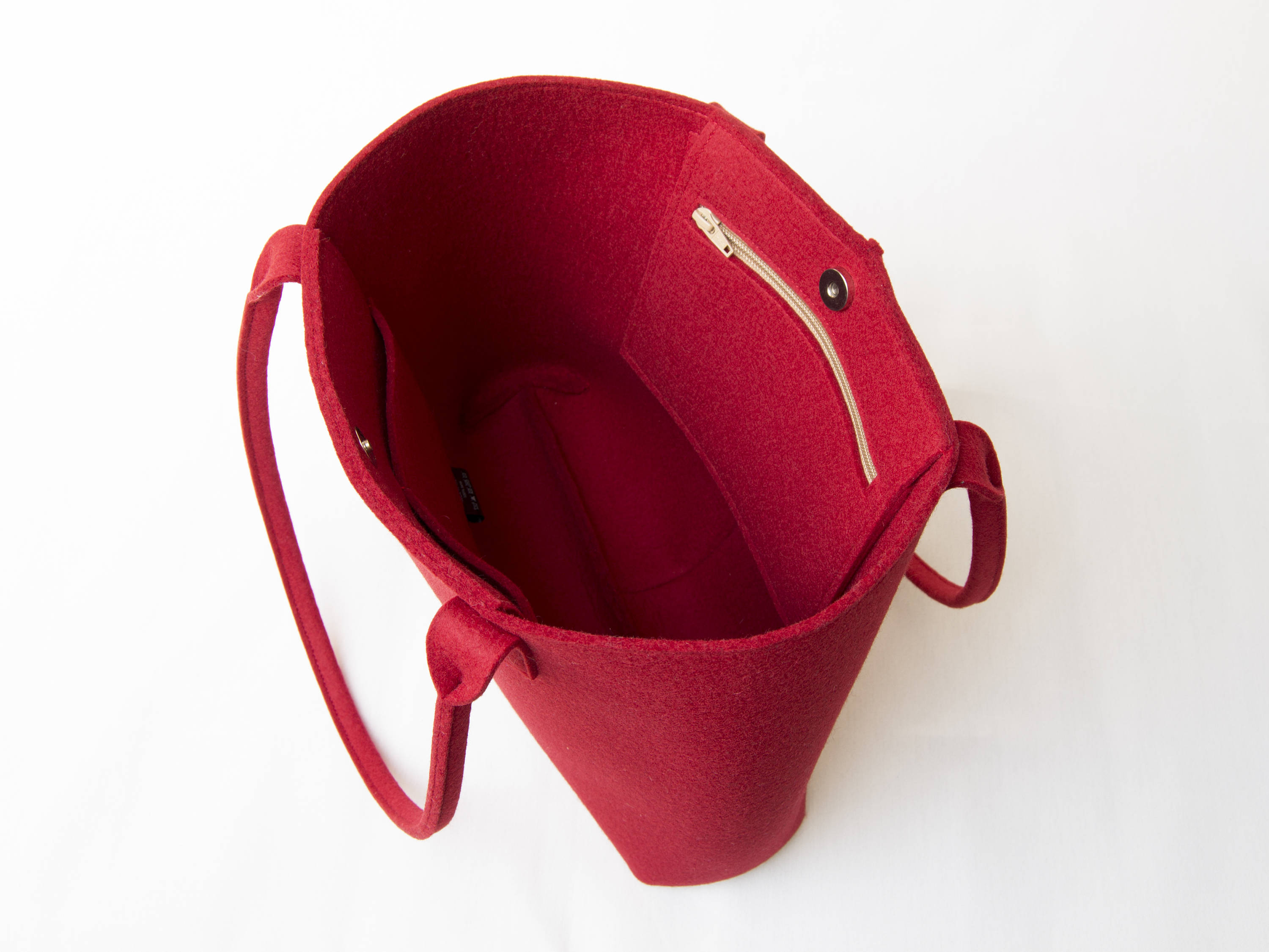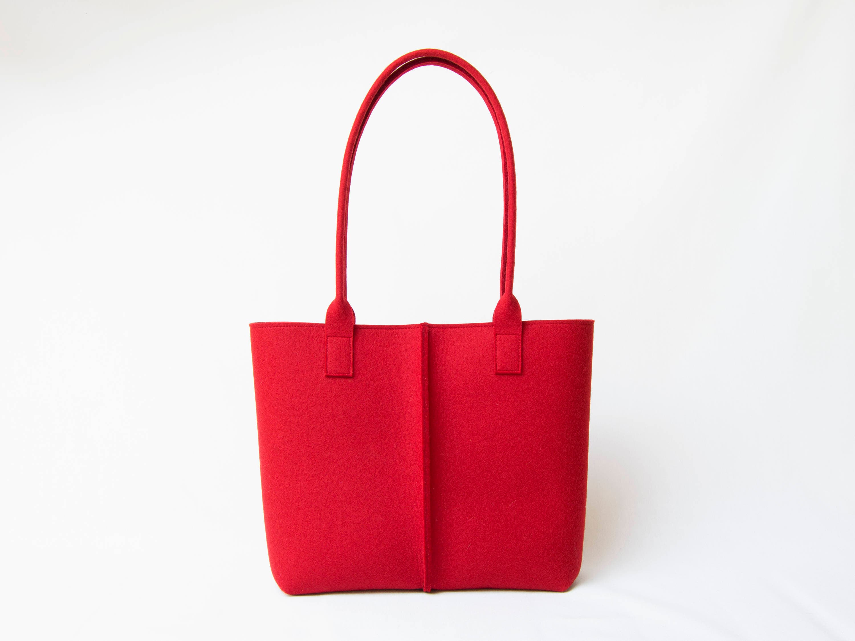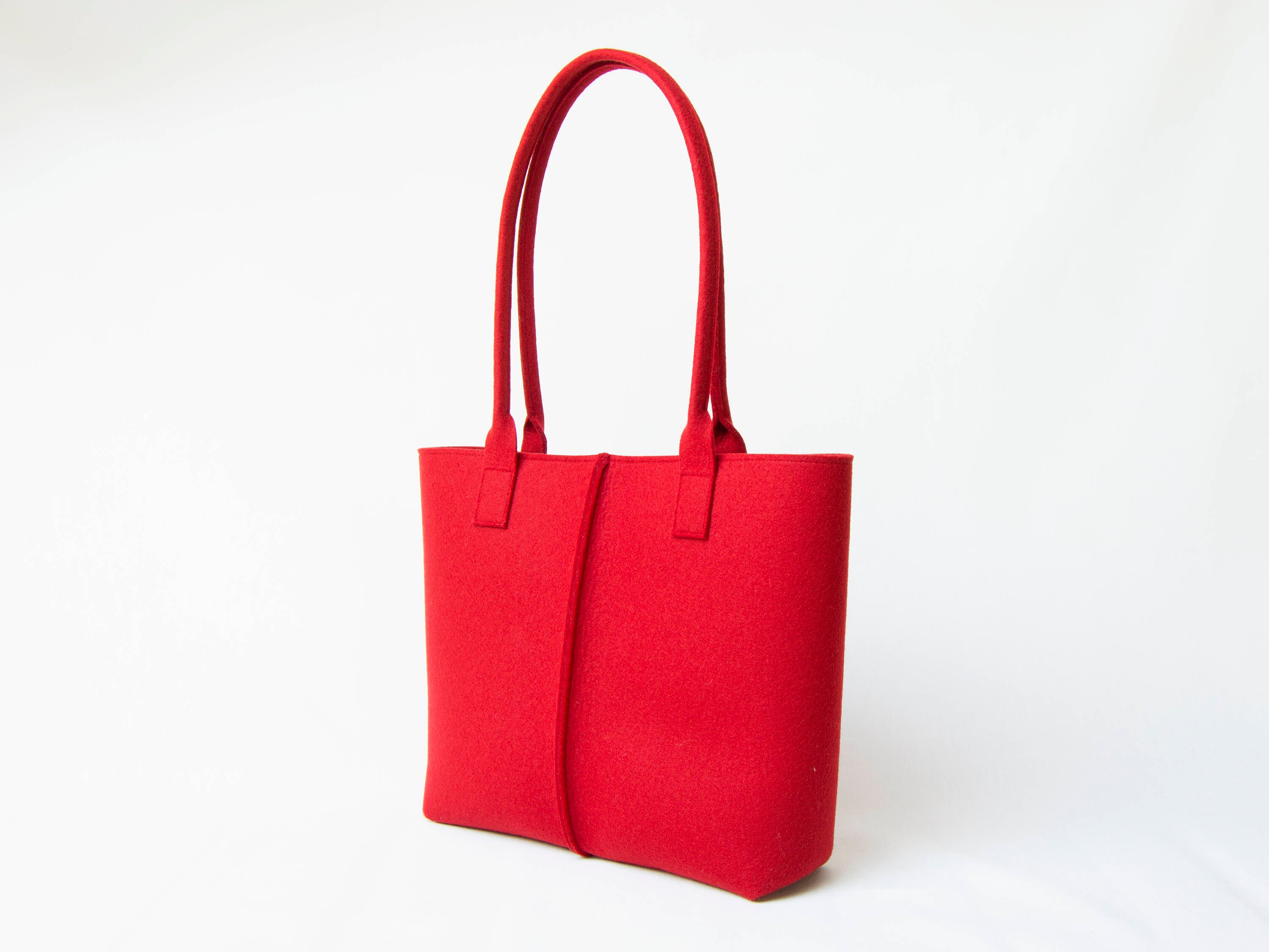 Introducing our stunning Wool Felt TOTE BAG in a bold, vibrant red color. This stylish tote is handmade in Italy with 100% wool felt, ensuring the highest quality and durability. The spacious interior of the bag allows you to carry all your essentials with ease, while the lightweight construction makes it comfortable to wear all day. Whether you're running errands or heading to the office, this red wool tote will add a pop of color to any outfit.