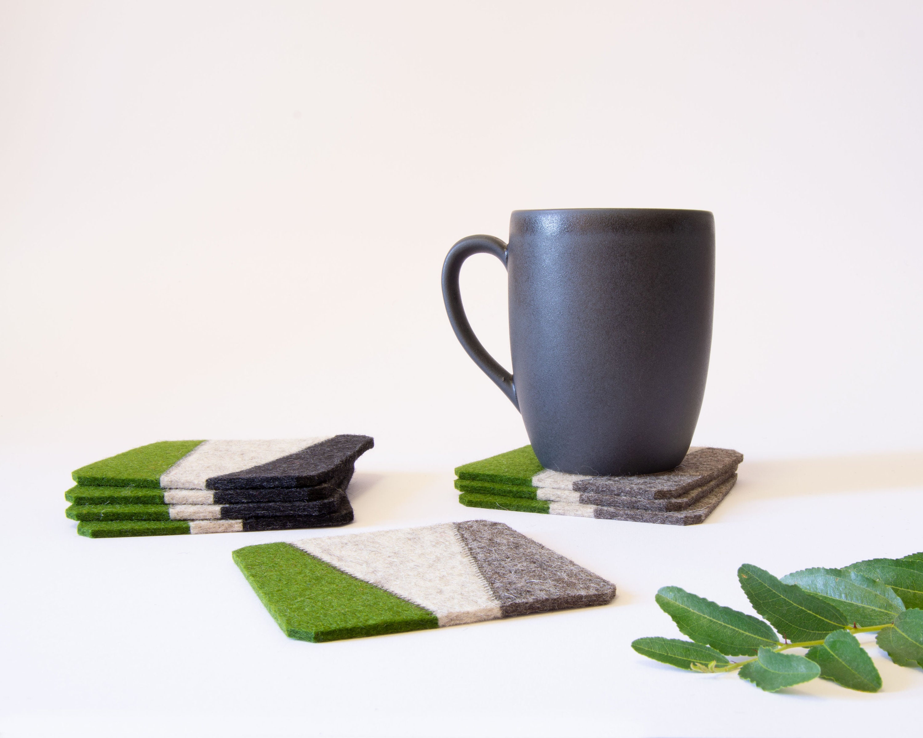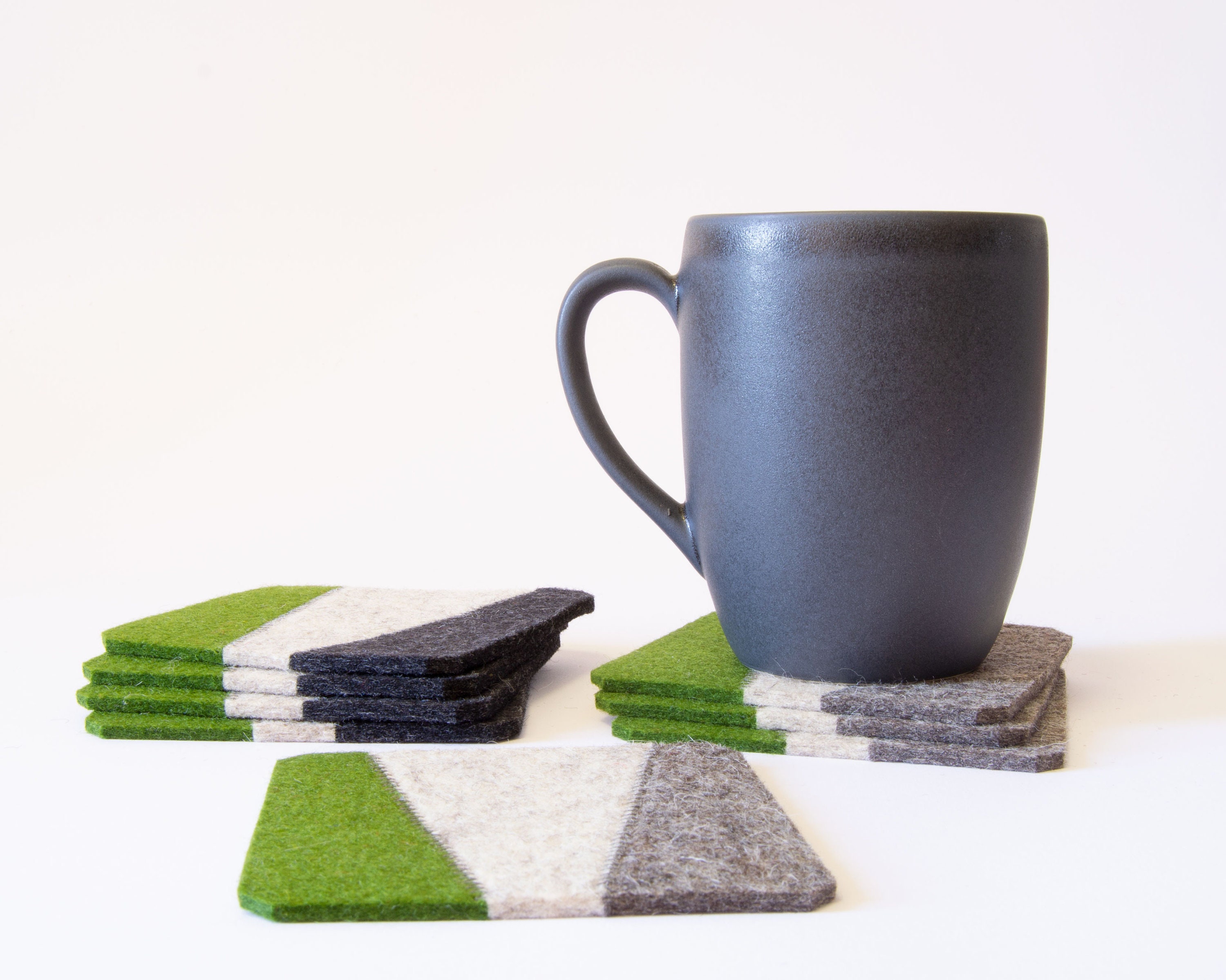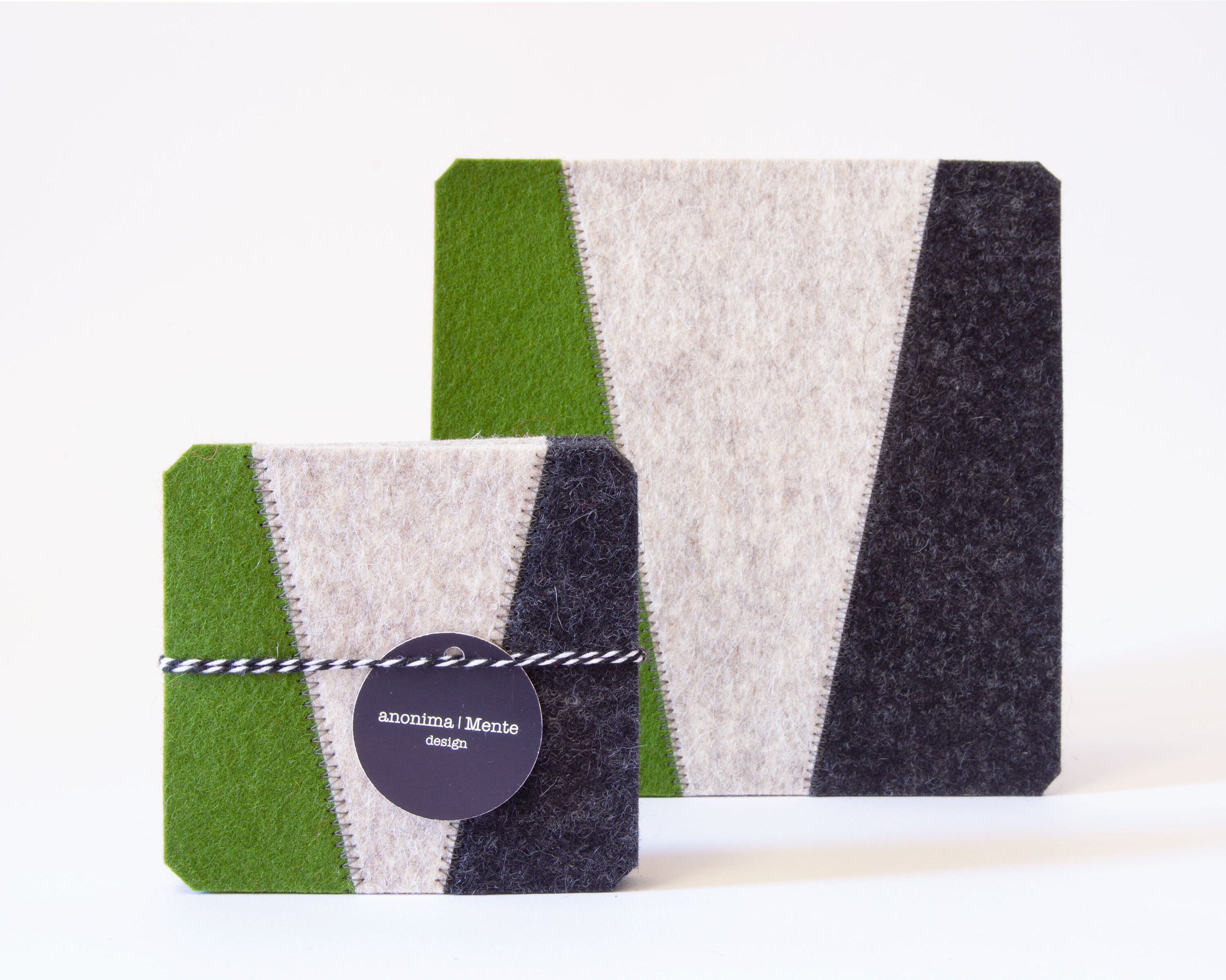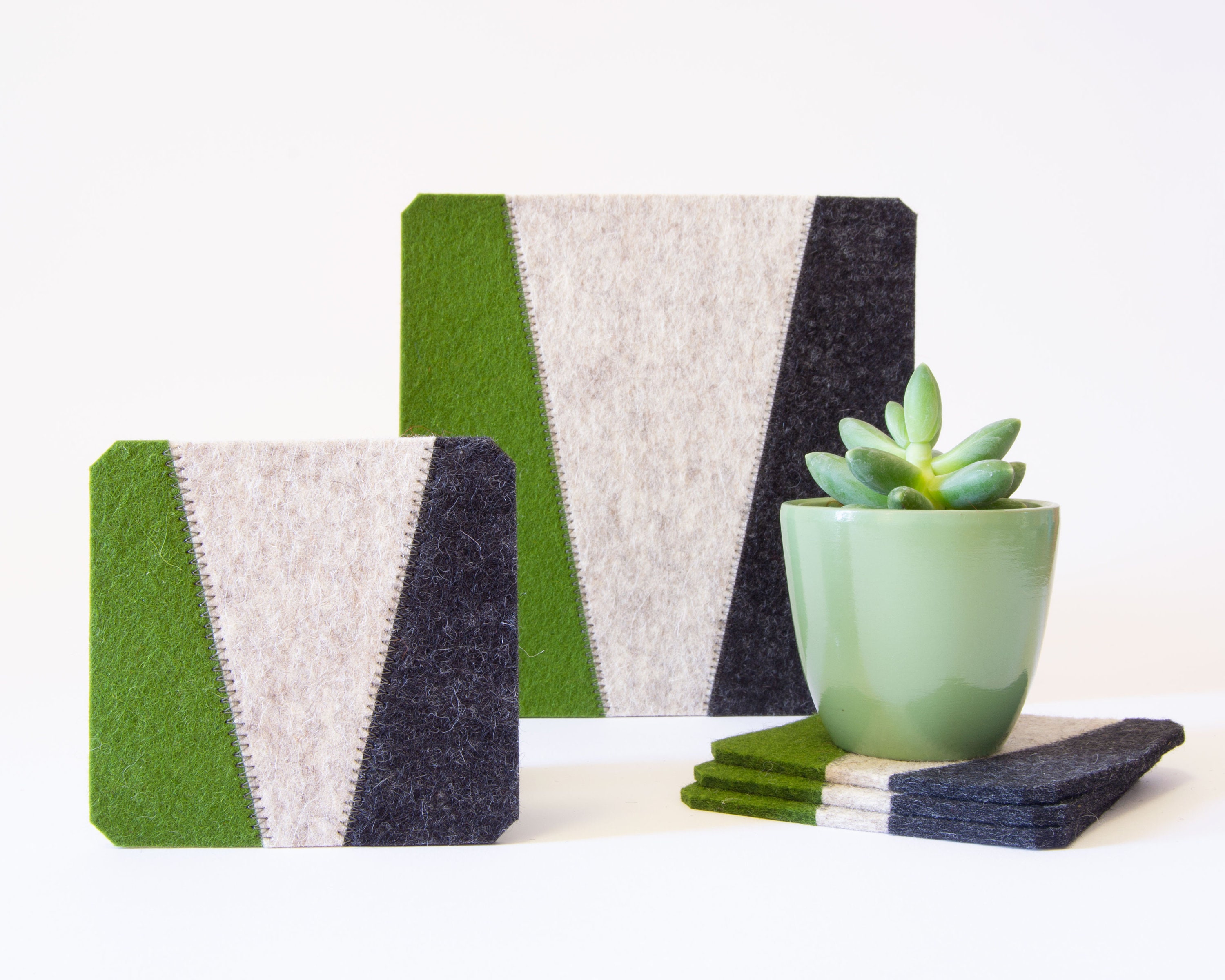 Protect your furniture in style with this set of felt coasters! They are made of 100% wool felt and have a minimalist and eye-catching design. You can add the trivet for your teapot or decanter.