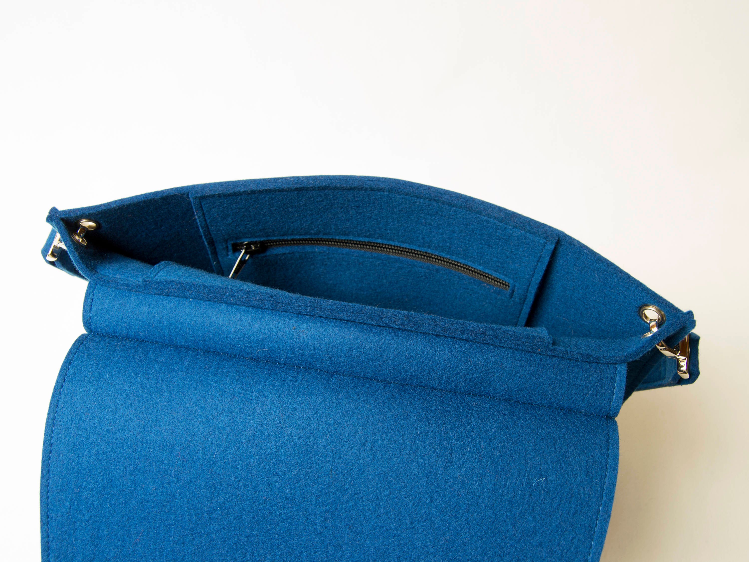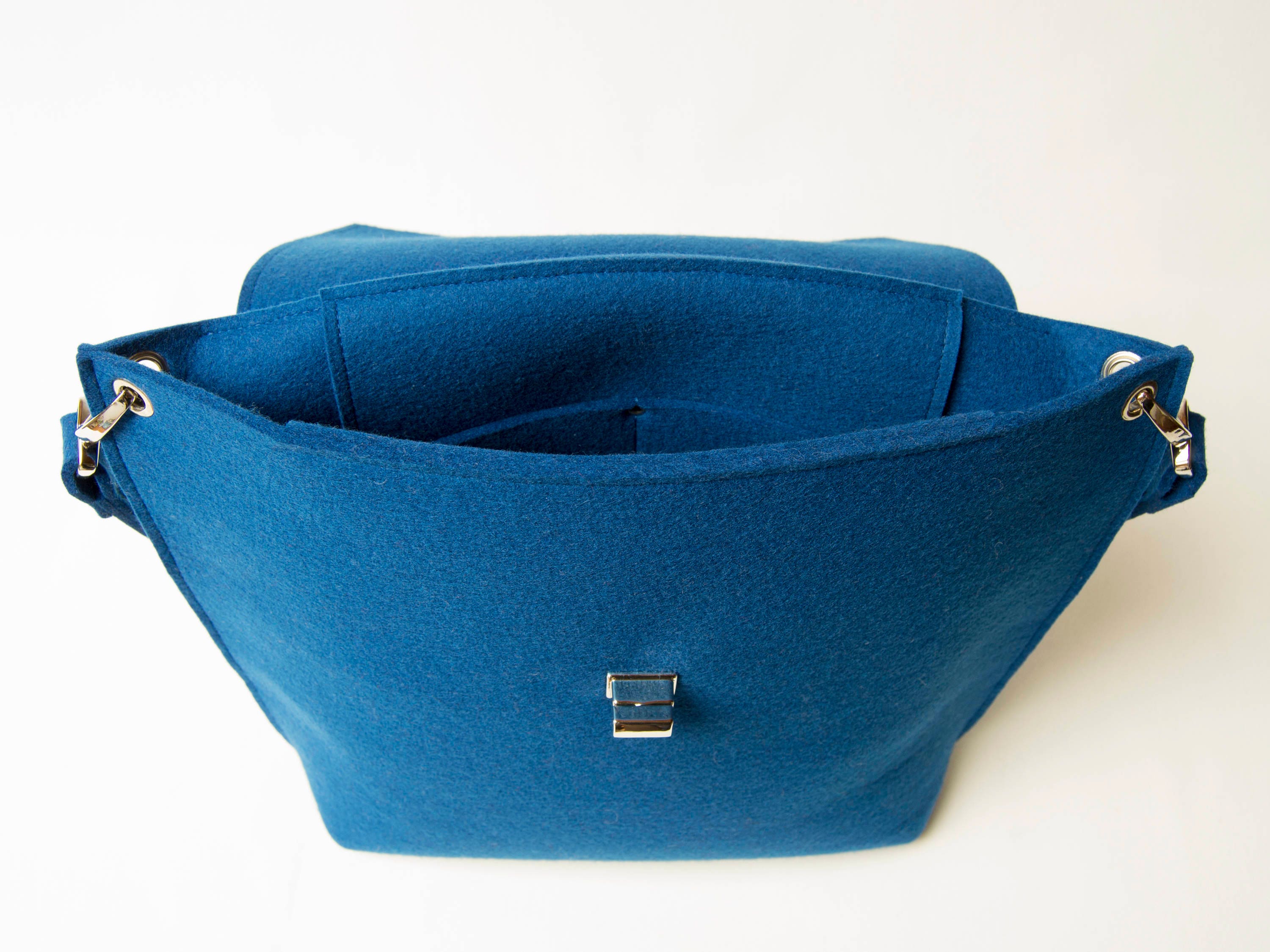 This elegant wool felt flap bag will carry you easily from the office to off-duty. You can choose the adjustable leather strap instead of the felt one to make the bag even more stylish. The bag is soft and durable at the same time, because it's made of 100% merino wool felt.
