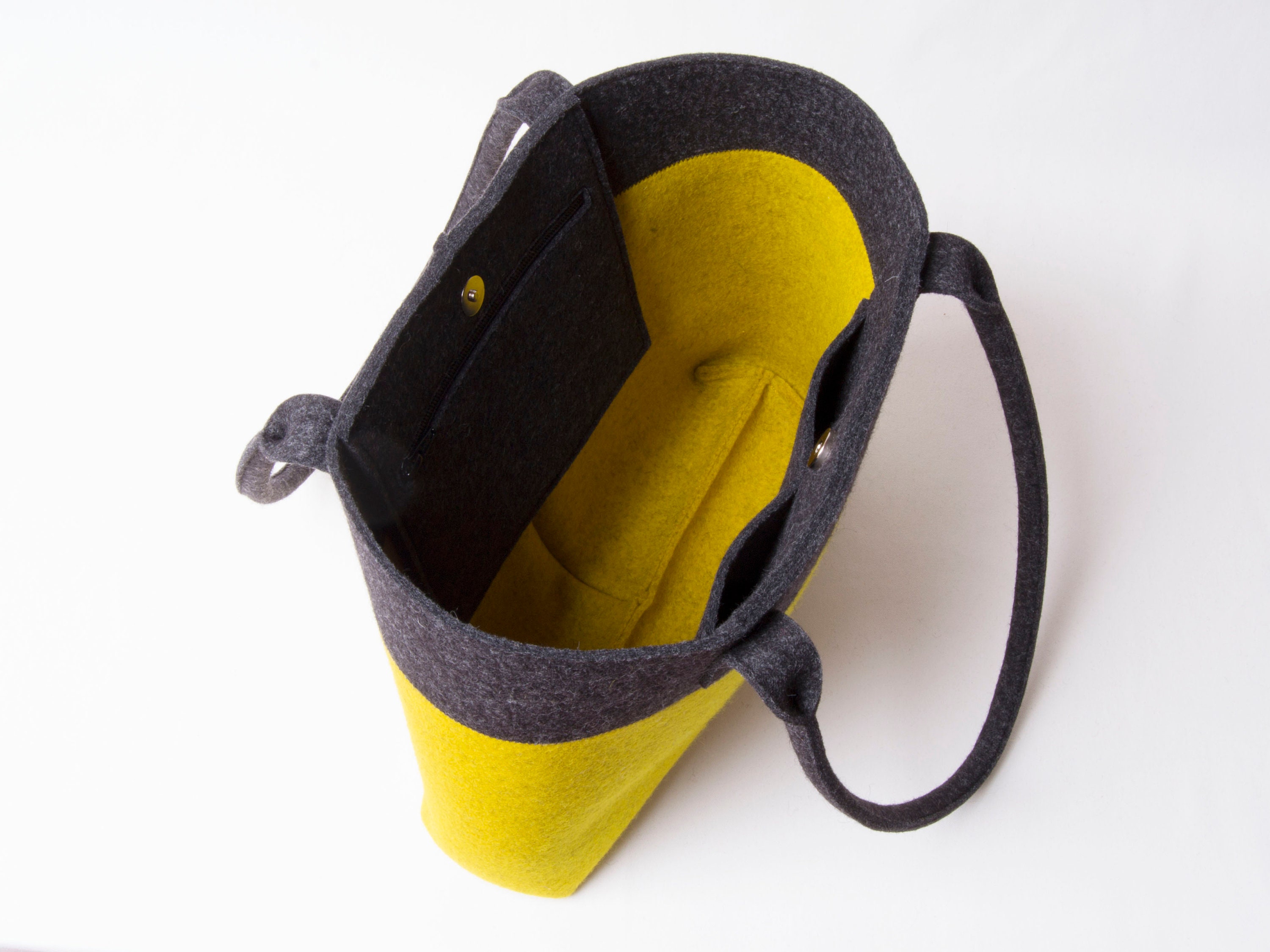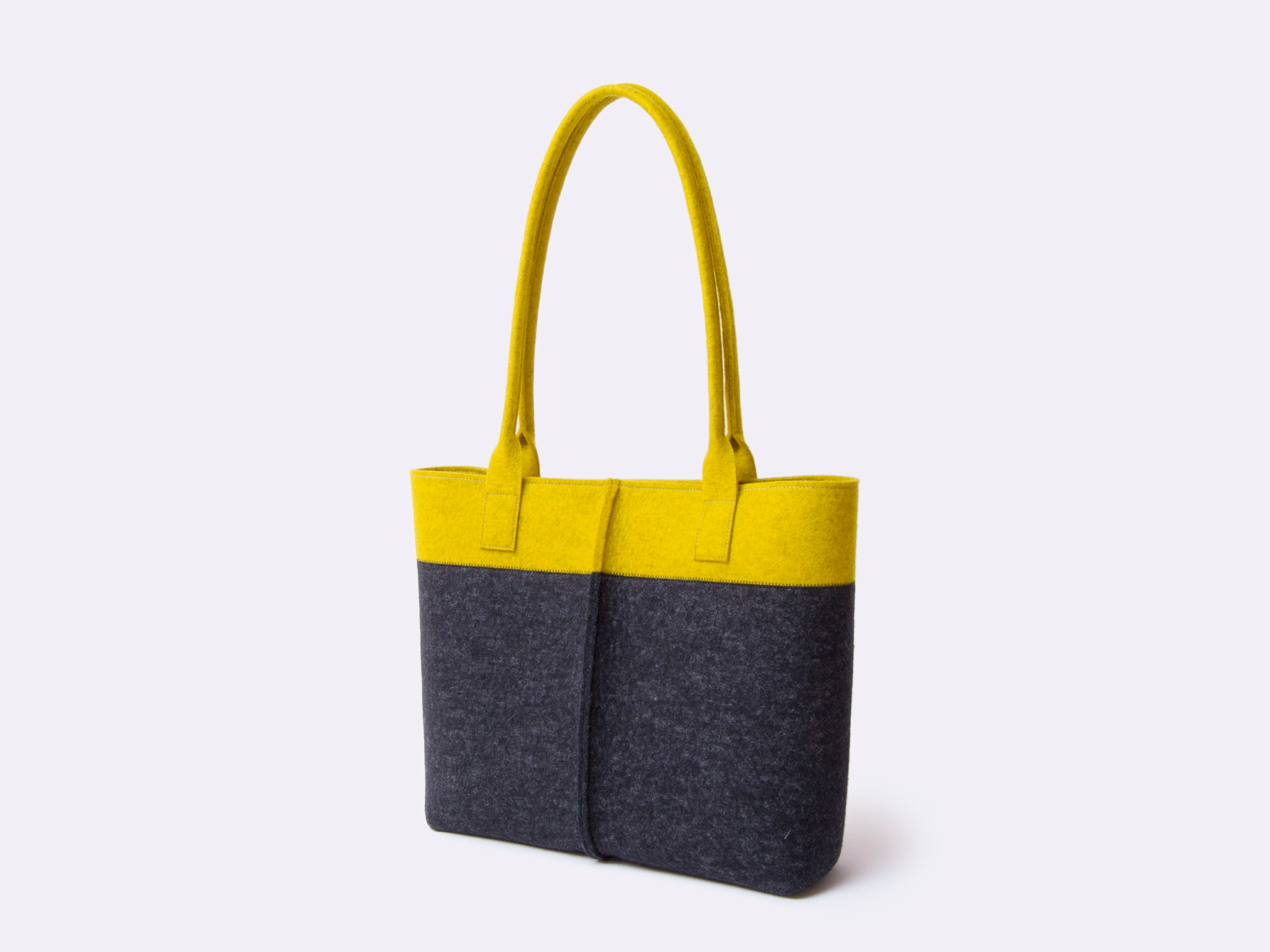A cute and original tote bag for your urban daily life, that will carry you easily from the office to off-duty. The bag is soft and durable at the same time, because it's made of 100% merino wool felt.