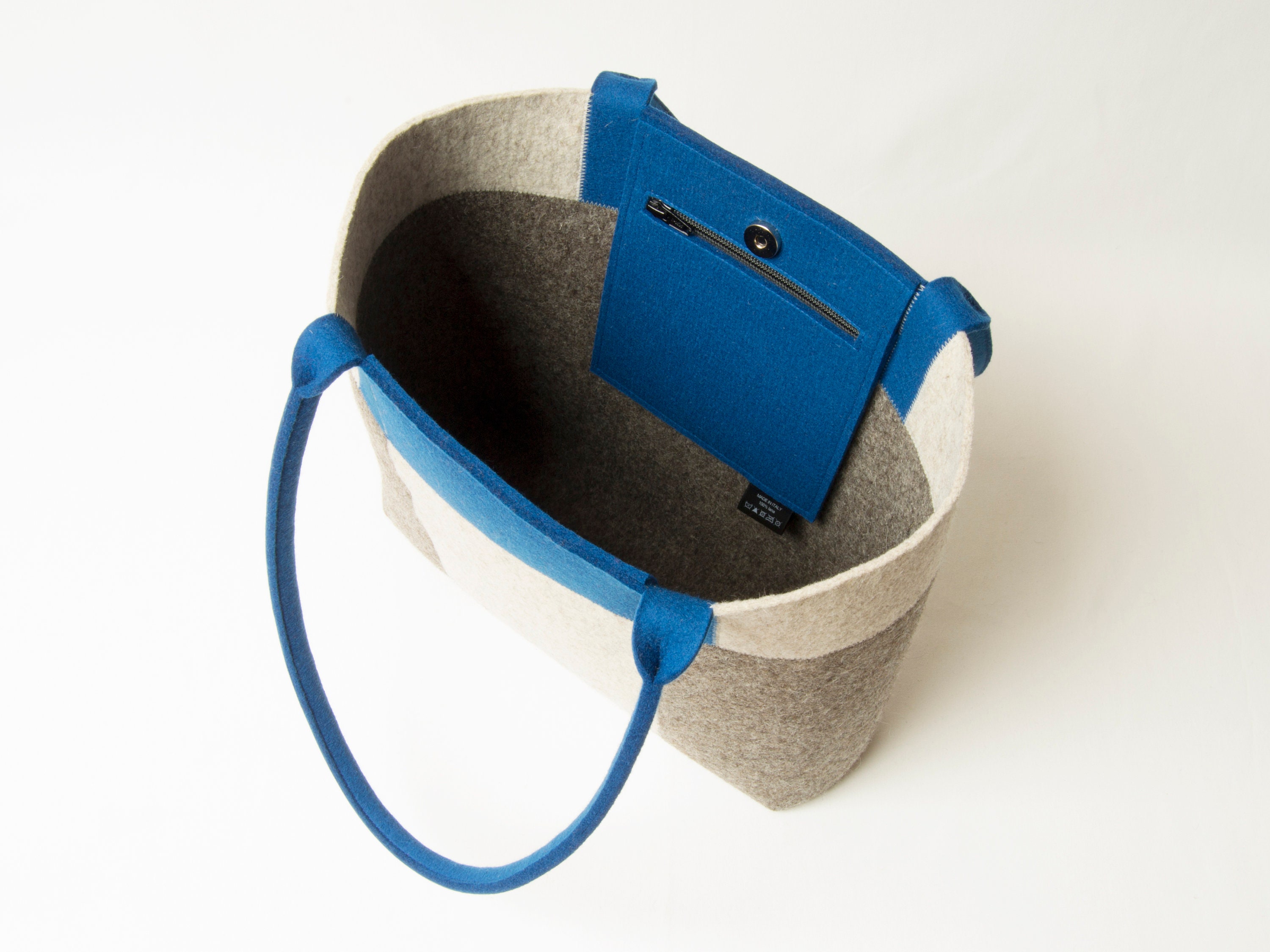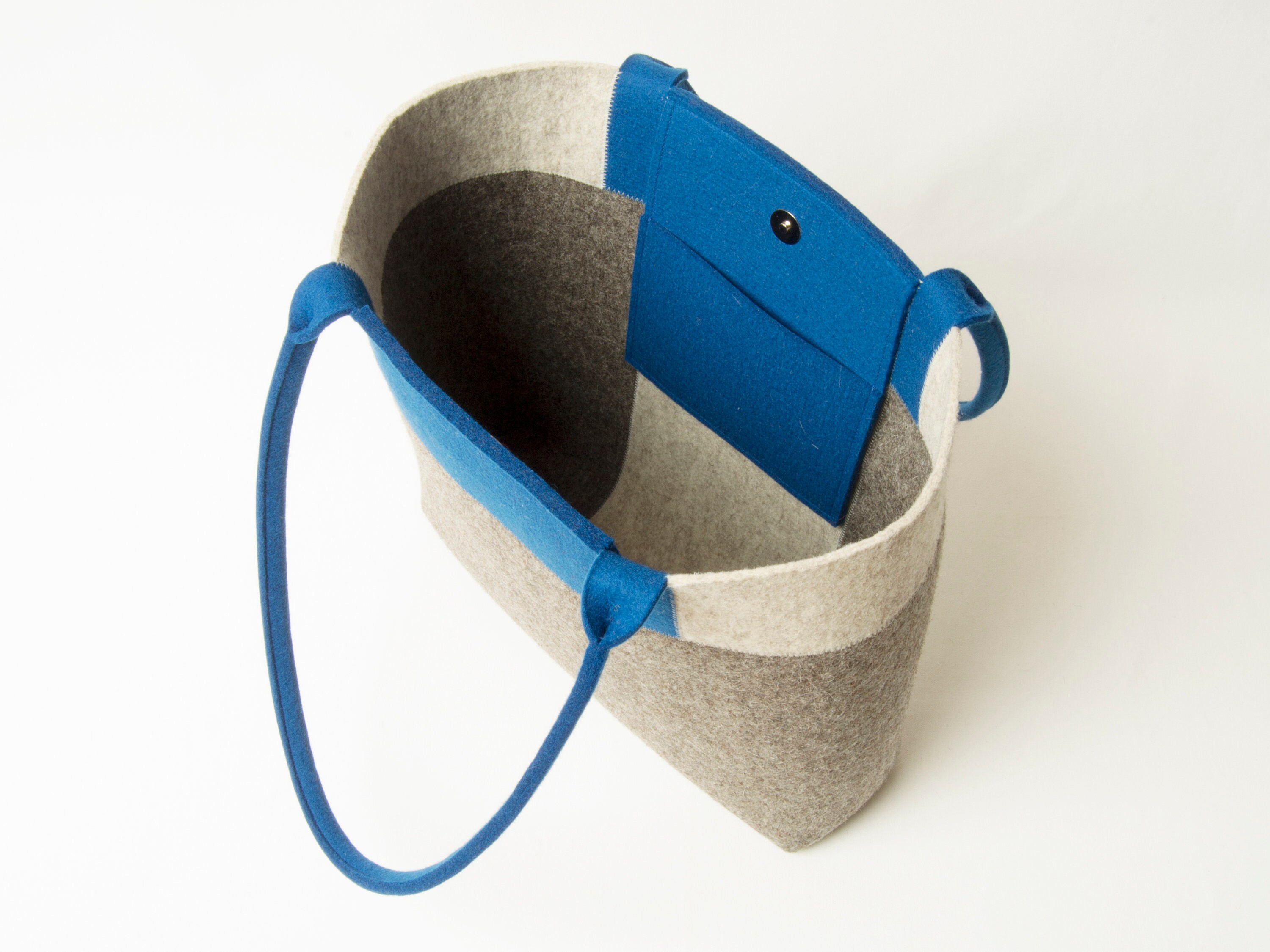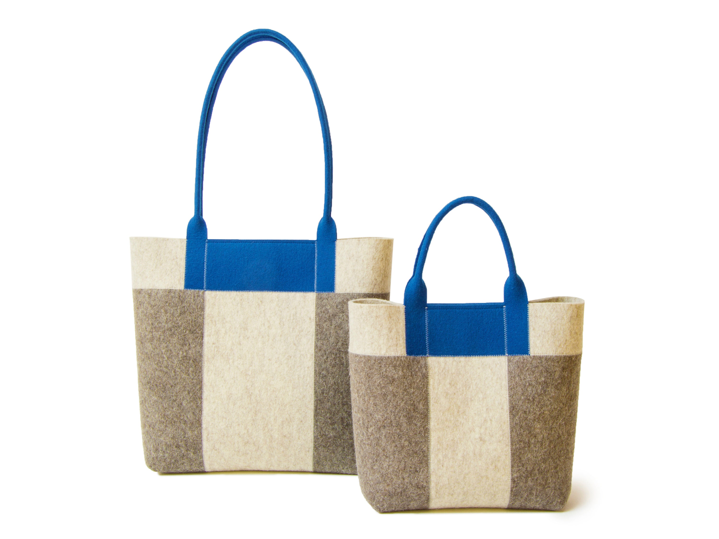 Three-tone TOTE BAG available in two sizes. Made of 100% wool felt.