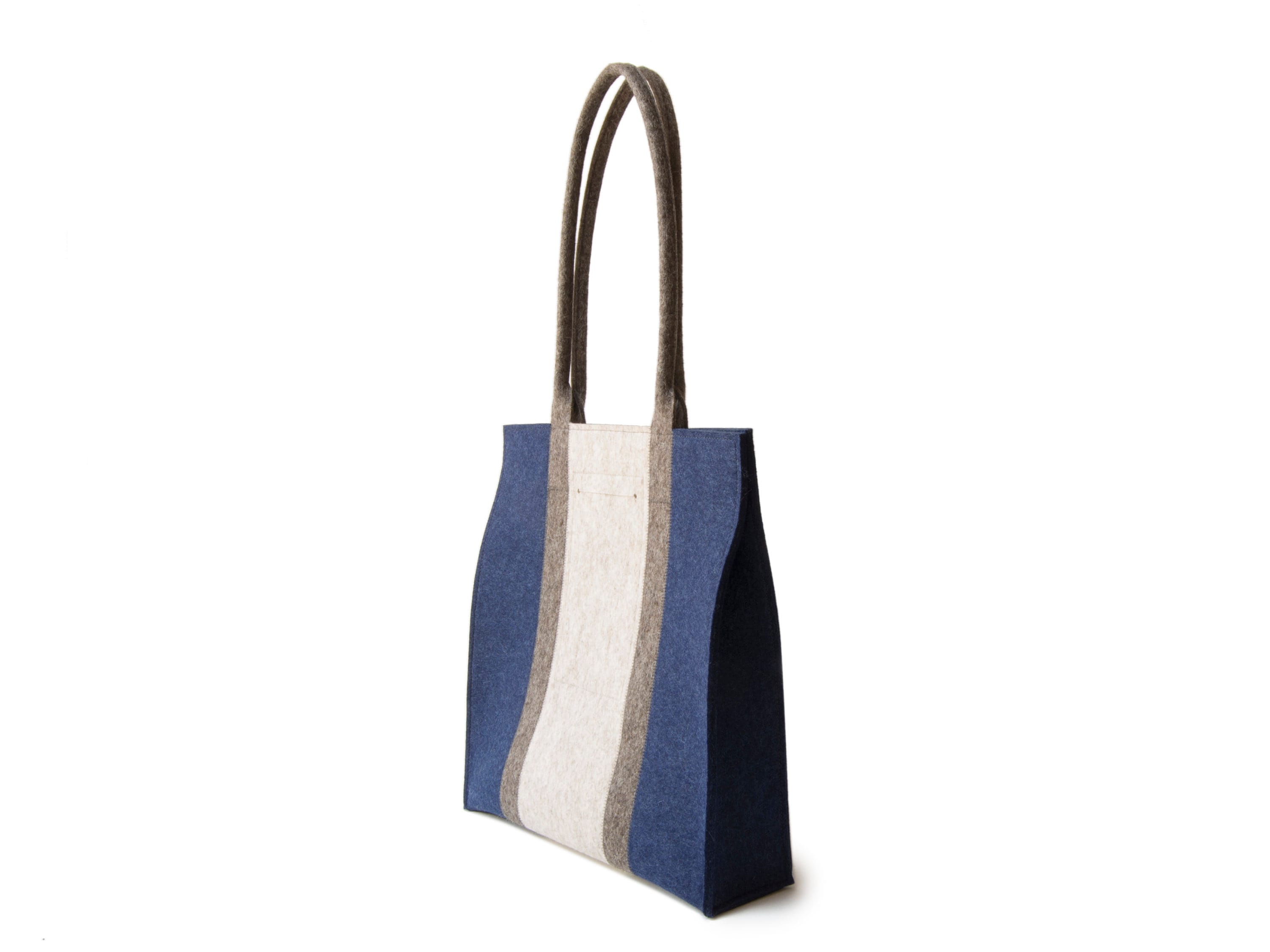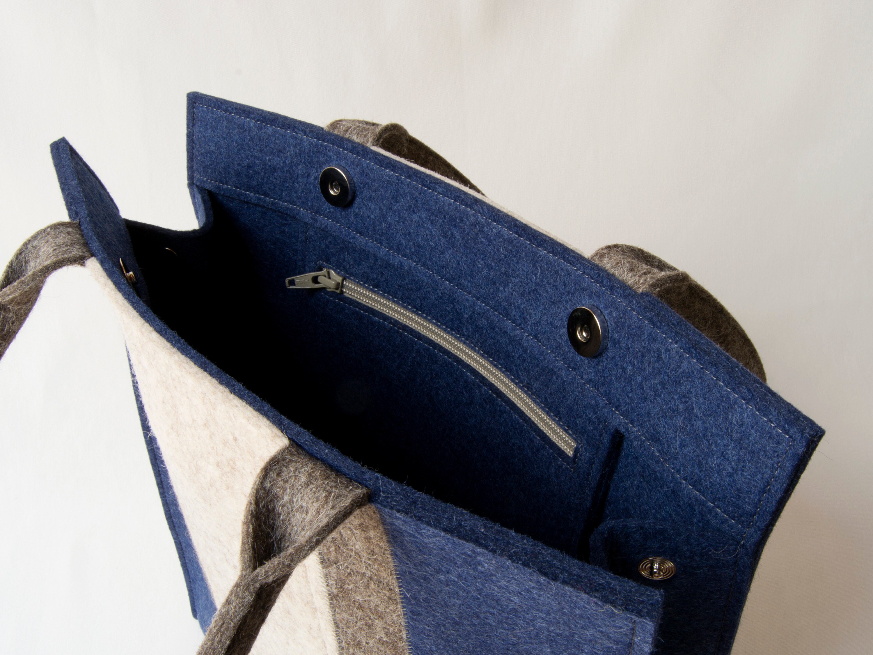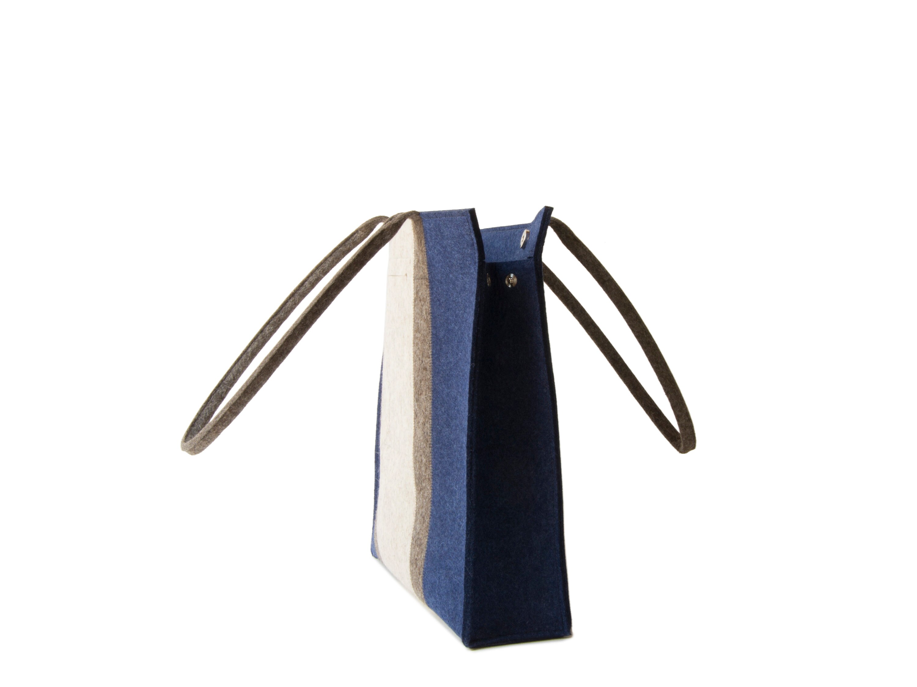 This Wool Felt Rectangular Tote Bag in blue and gray is the perfect addition to any woman's bag collection. Not only it's incredibly spacious, making it ideal for work and everyday use, but it can also comfortably fit a laptop and documents with ease. Made from 100% wool felt, this bag is both durable and lightweight, ensuring it can handle the demands of daily life without weighing you down. Handmade in Italy, this tote bag boasts quality craftsmanship and attention to detail, making it a stylish and practical choice.